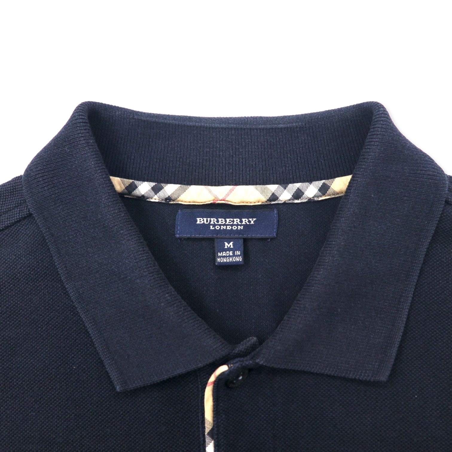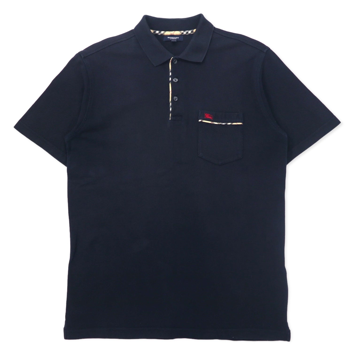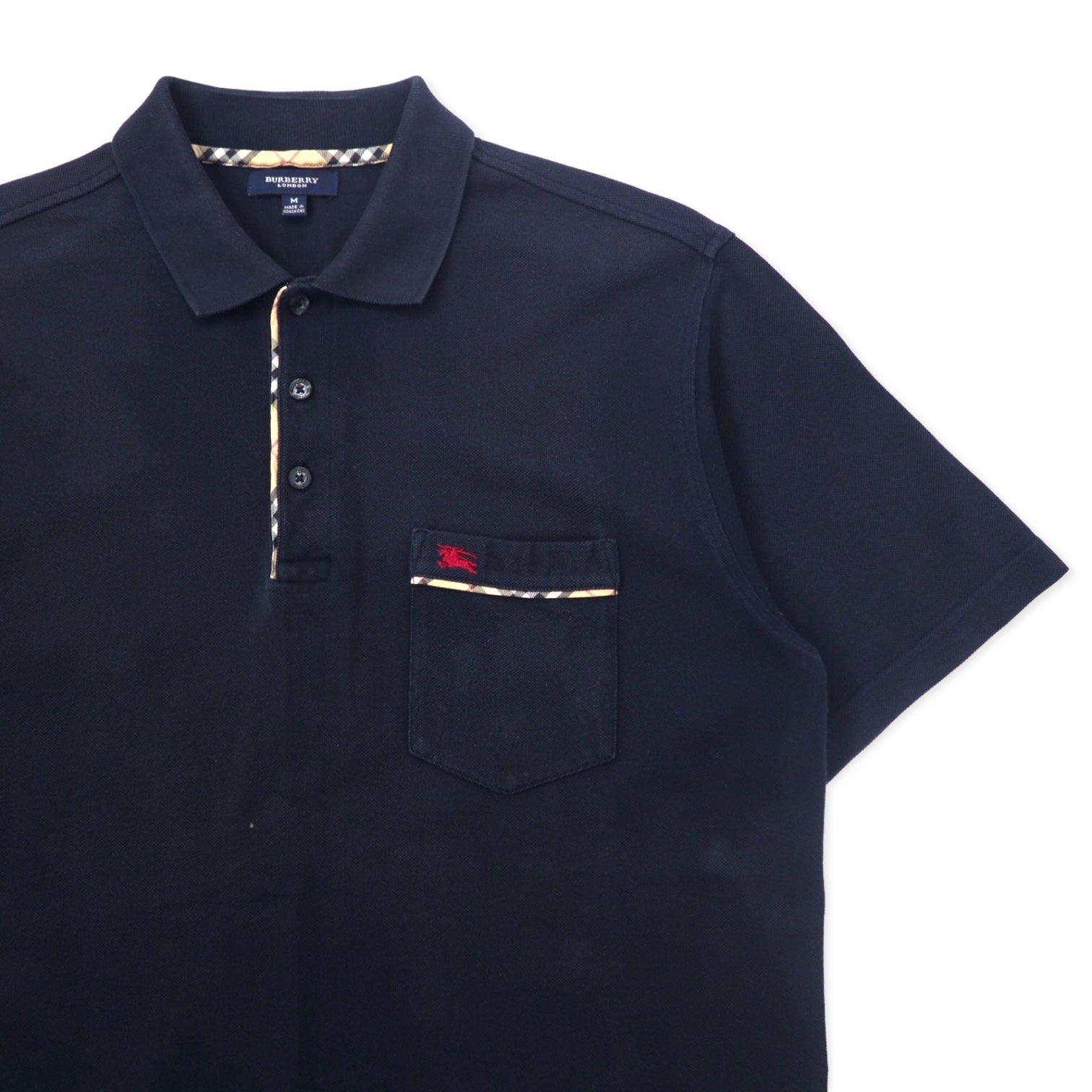 BURBERRY ポロシャツ M ブラック コットン 鹿の子 ノバチェック切り替え ワンポイントロゴ刺繍