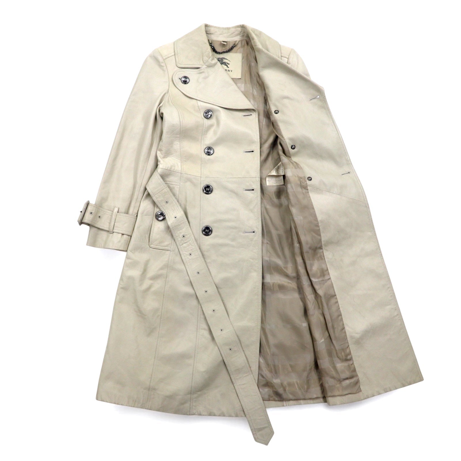 BURBERRY ラムレザー トレンチコート M アイボリー 羊革 ベルト付き