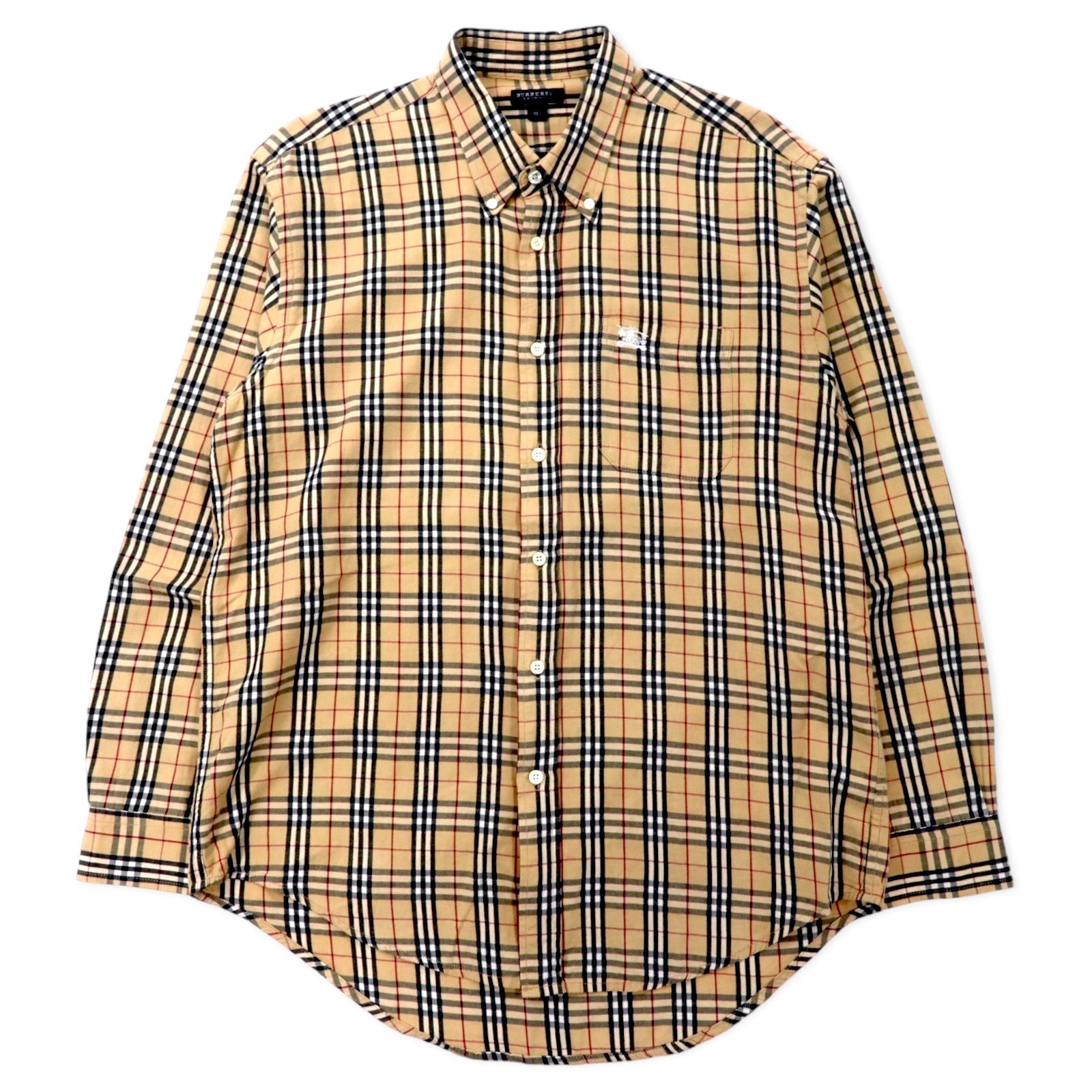 BURBERRY グレンチェック ボタンダウンシャツ XL ベージュ コットン ワンポイントロゴ刺繍