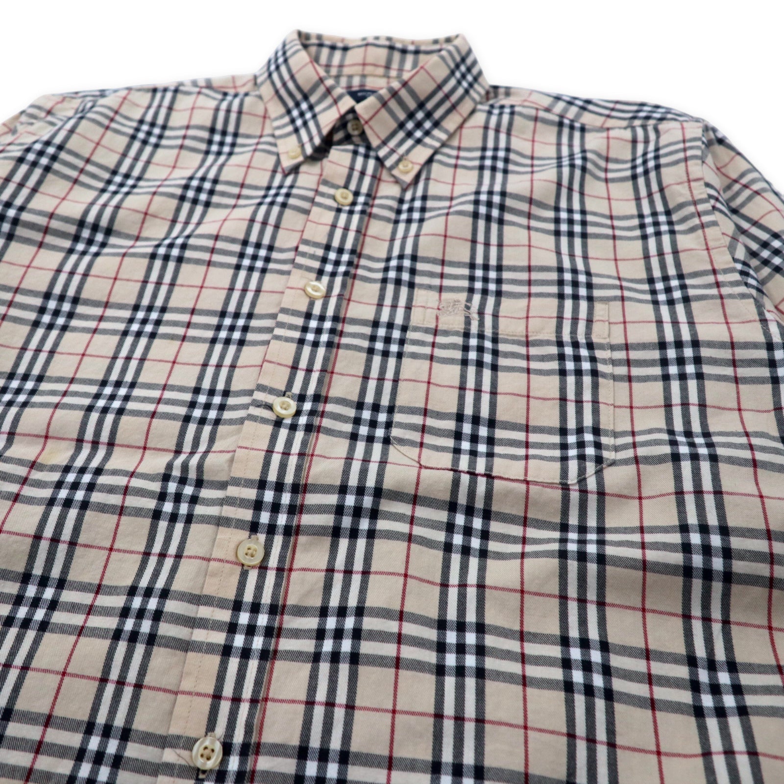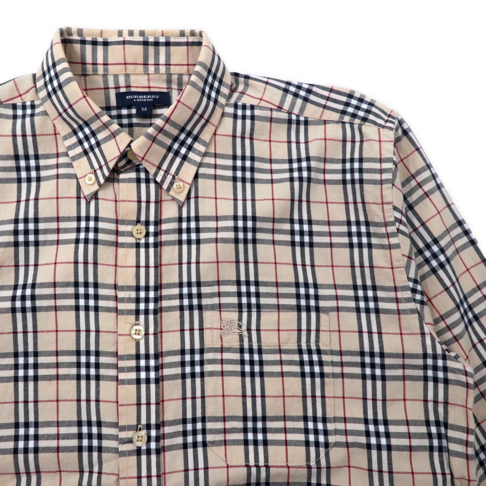 BURBERRY ノバチェック ボタンダウンシャツ M ベージュ コットン ワンポイントロゴ刺繍