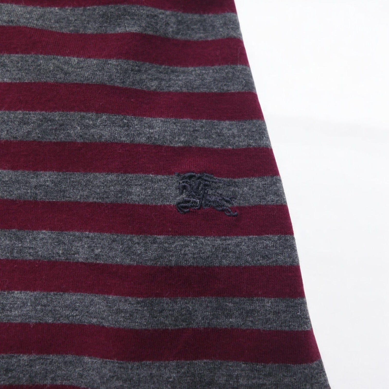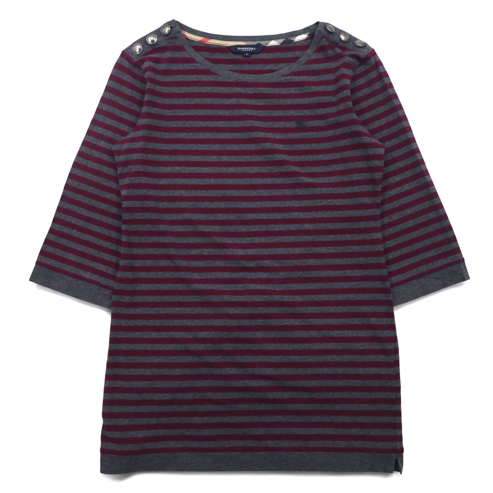 BURBERRY ボーダー チュニック Tシャツ M グレー ショルダーボタン ワンポイントロゴ刺繍 日本製