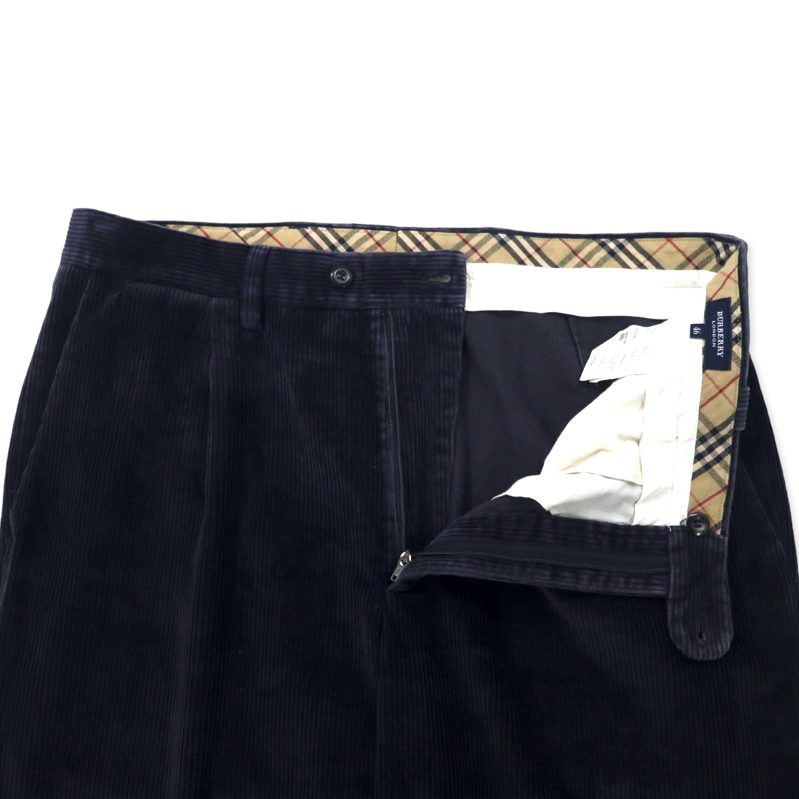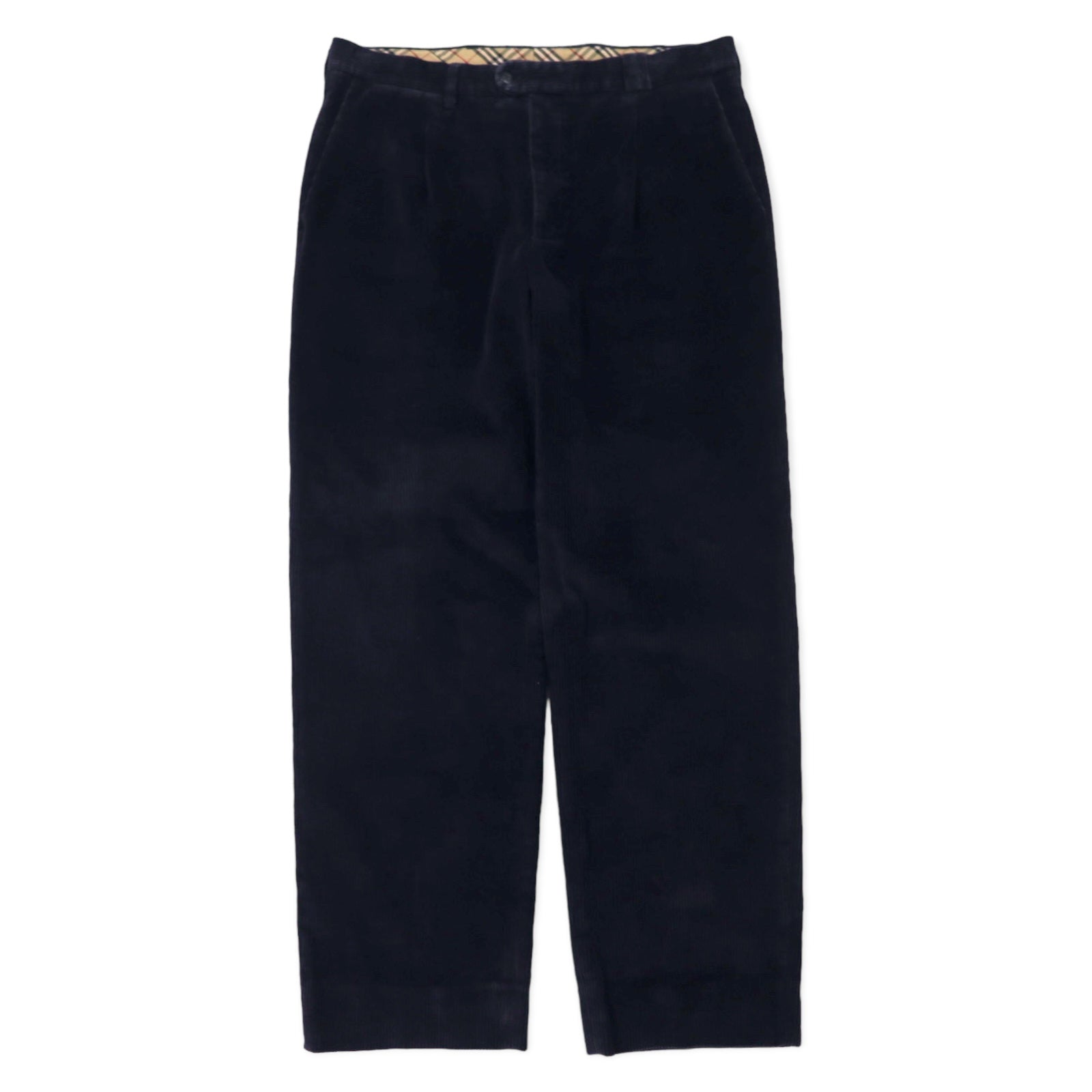 BURBERRY ワイドシルエット タック コーデュロイパンツ 46 ネイビー コットン スペイン製