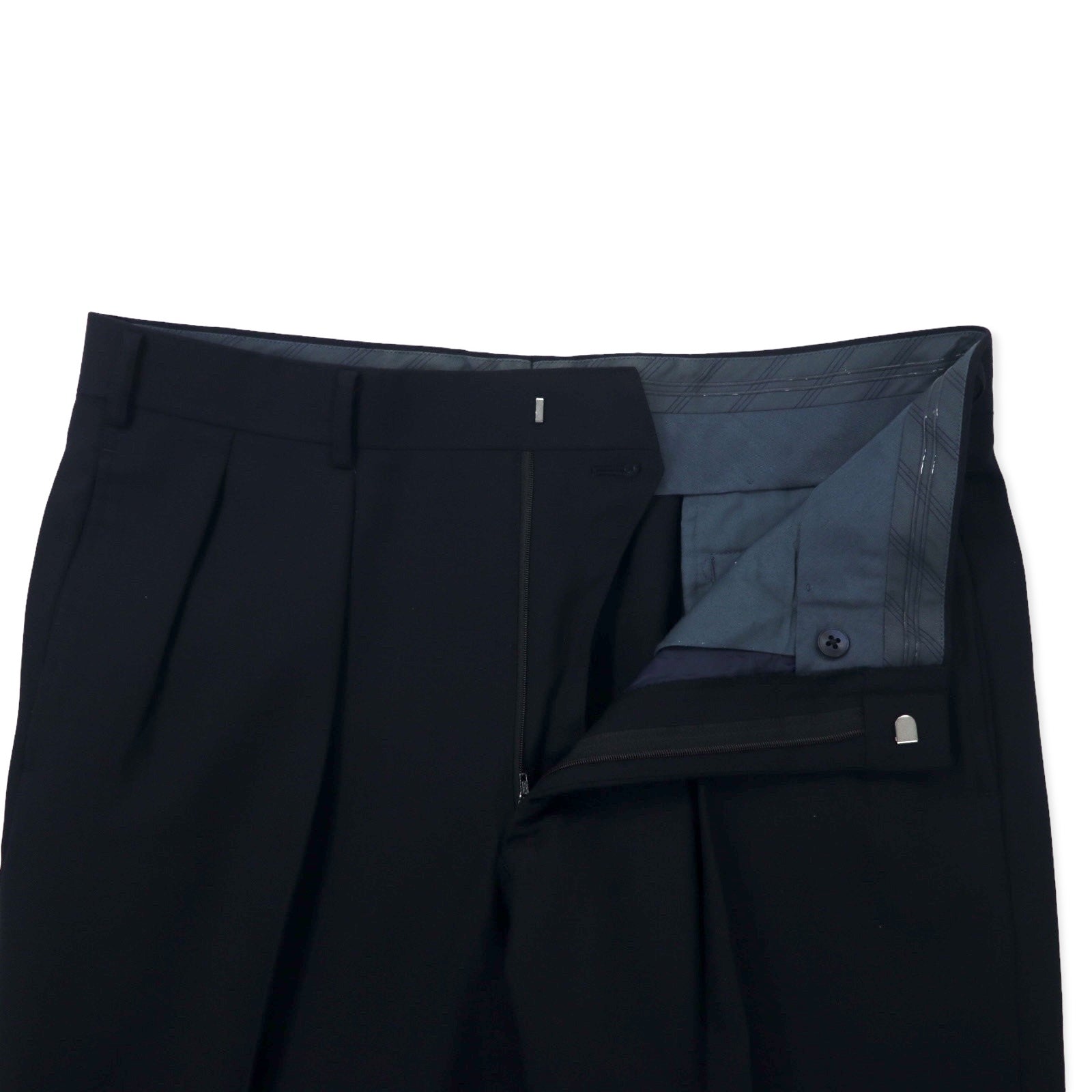 BURBERRY 2タック スラックスパンツ 88 ネイビー ウール 羊毛 ギャバジン 日本製