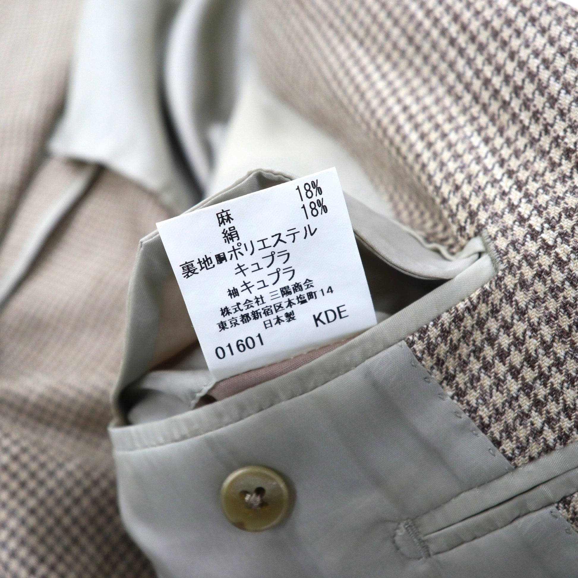 BURBERRY 2Bテーラードジャケット 180 AB7 ベージュ 千鳥格子 ウール シルク混 日本製