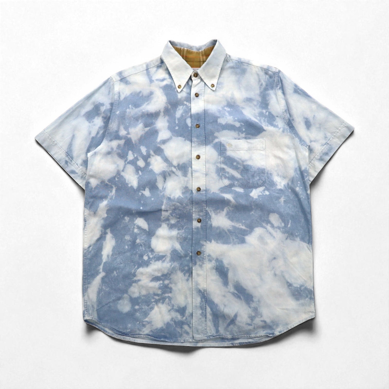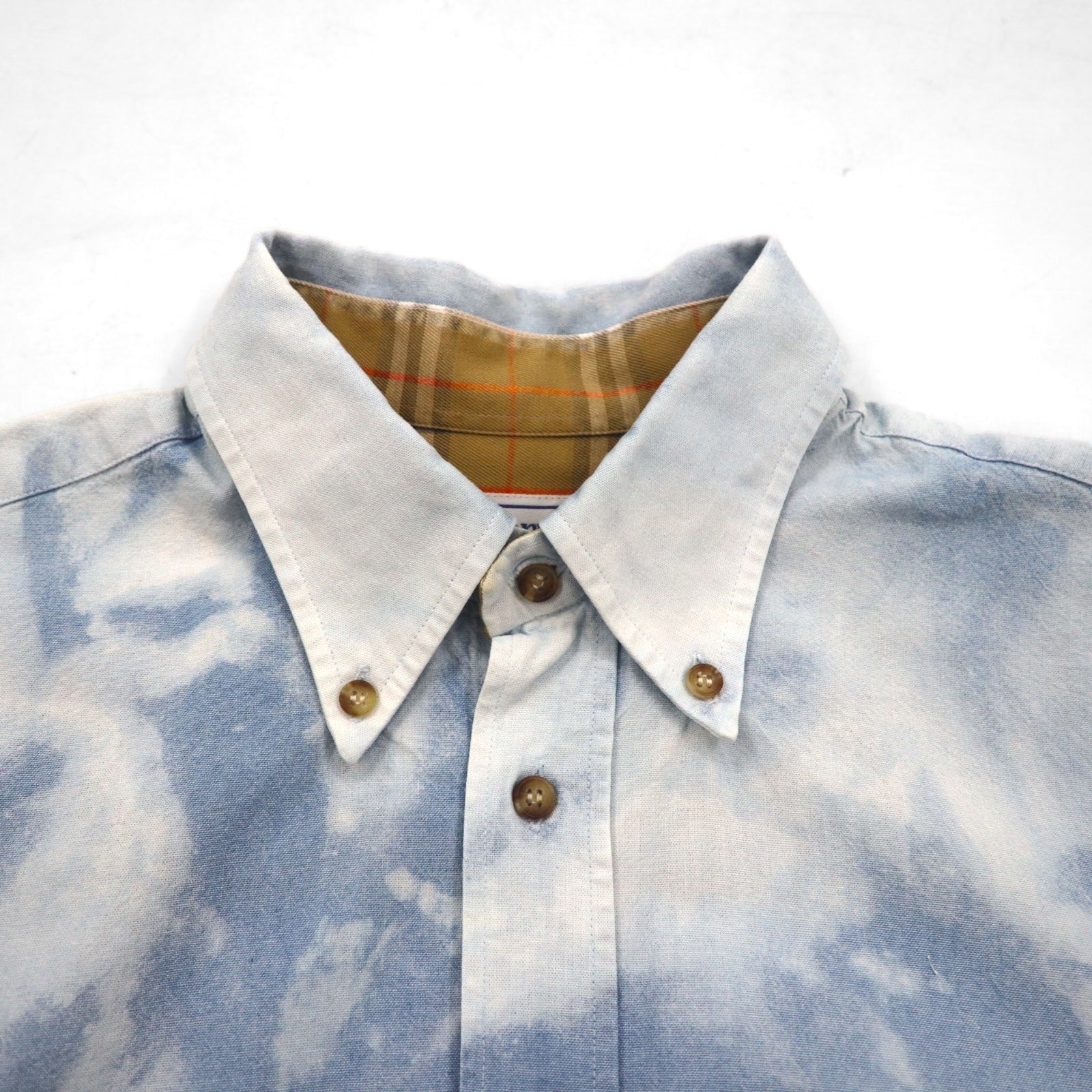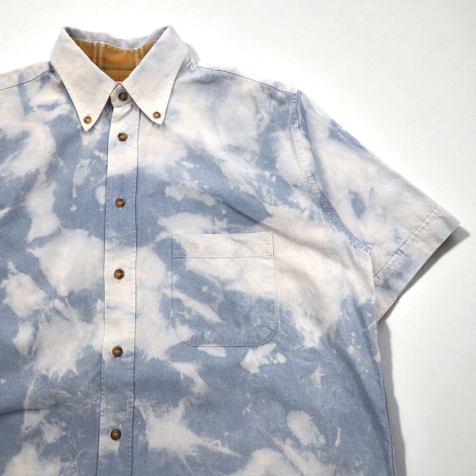 Burberry 90年代 フランス製 ケミカルウォッシュ デニム 半袖 ボタンダウンシャツ L ブルー 胸ポケット