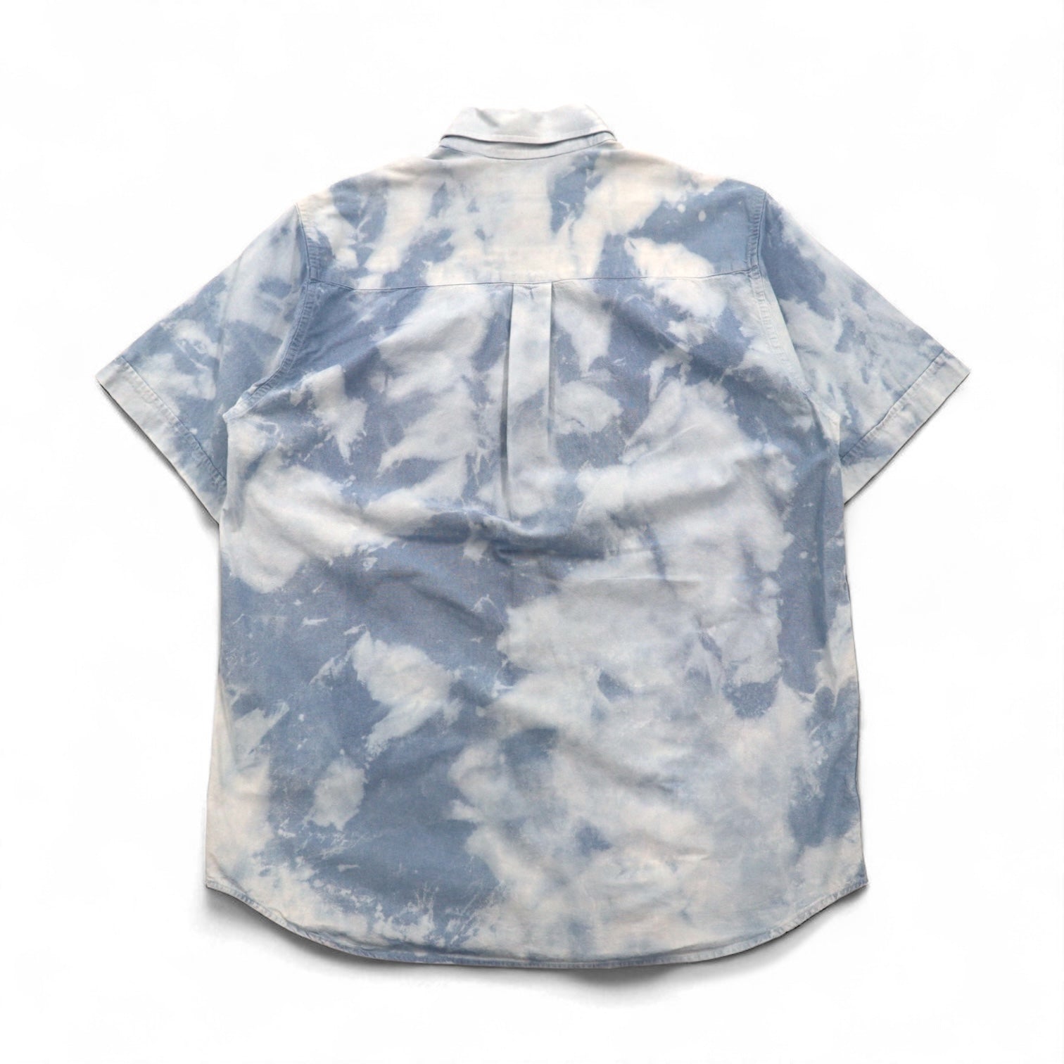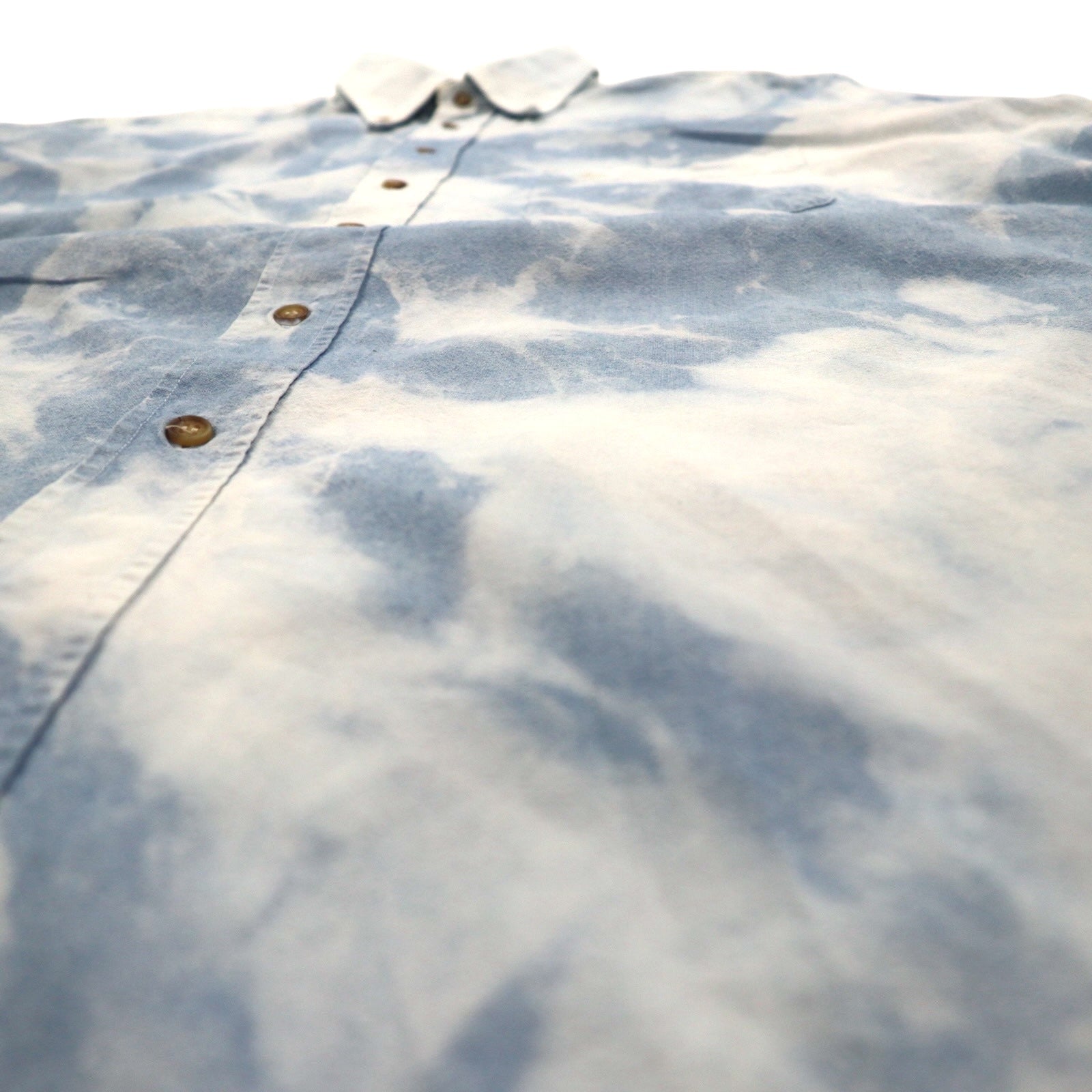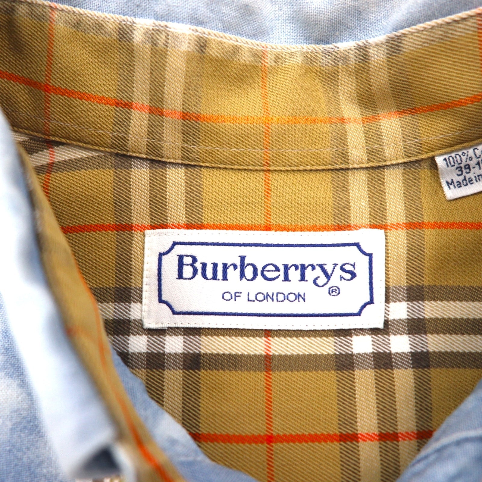 Burberry 90年代 フランス製 ケミカルウォッシュ デニム 半袖 ボタンダウンシャツ L ブルー 胸ポケット
