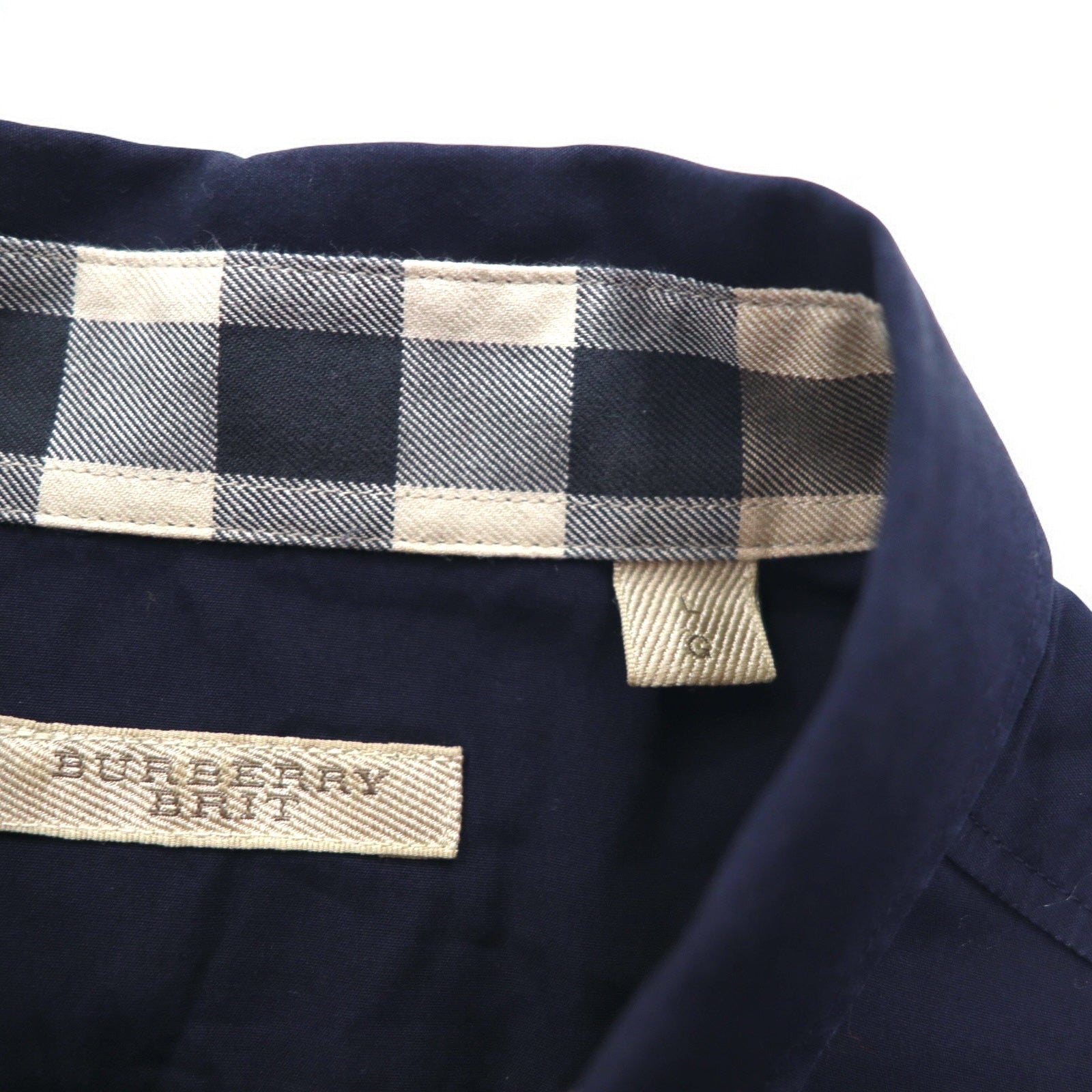 BURBERRY BRIT ドレスシャツ L ダーク ネイビー ワンポイントロゴ刺繍 THTHAGAR129SAM