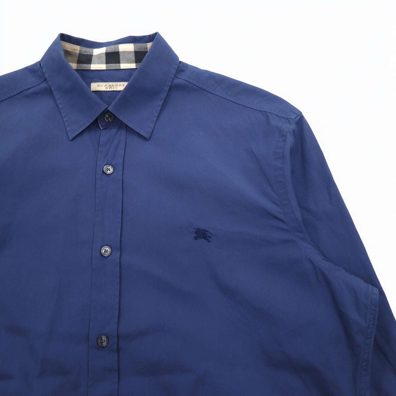 BURBERRY BRIT ドレスシャツ L ブルー ワンポイントロゴ刺繍 HKCHESHU35KOW