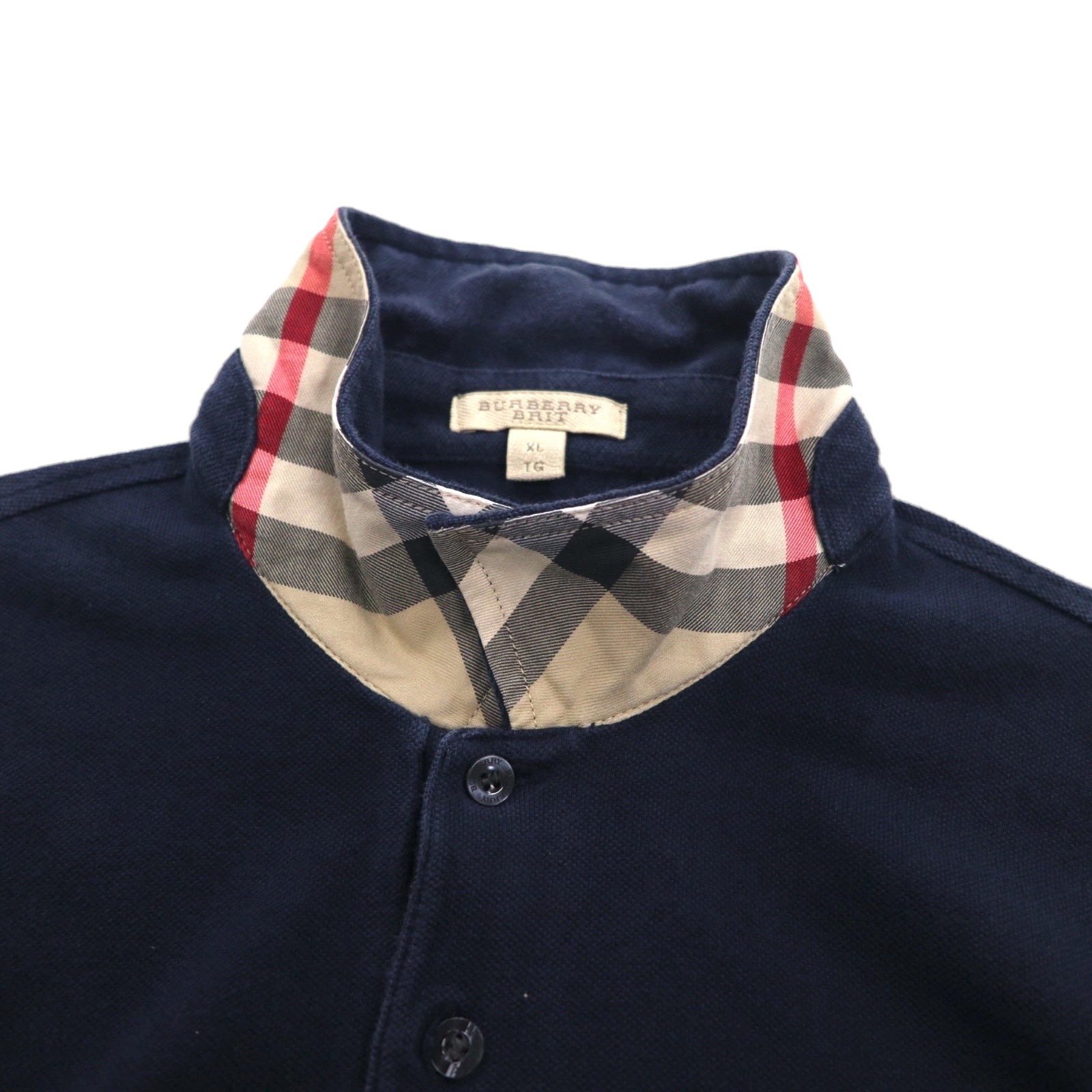 BURBERRY BRIT ノバチェック切り替え ポロシャツ XL ネイビー コットン 鹿の子 ワンポイントロゴ刺繍 トルコ製