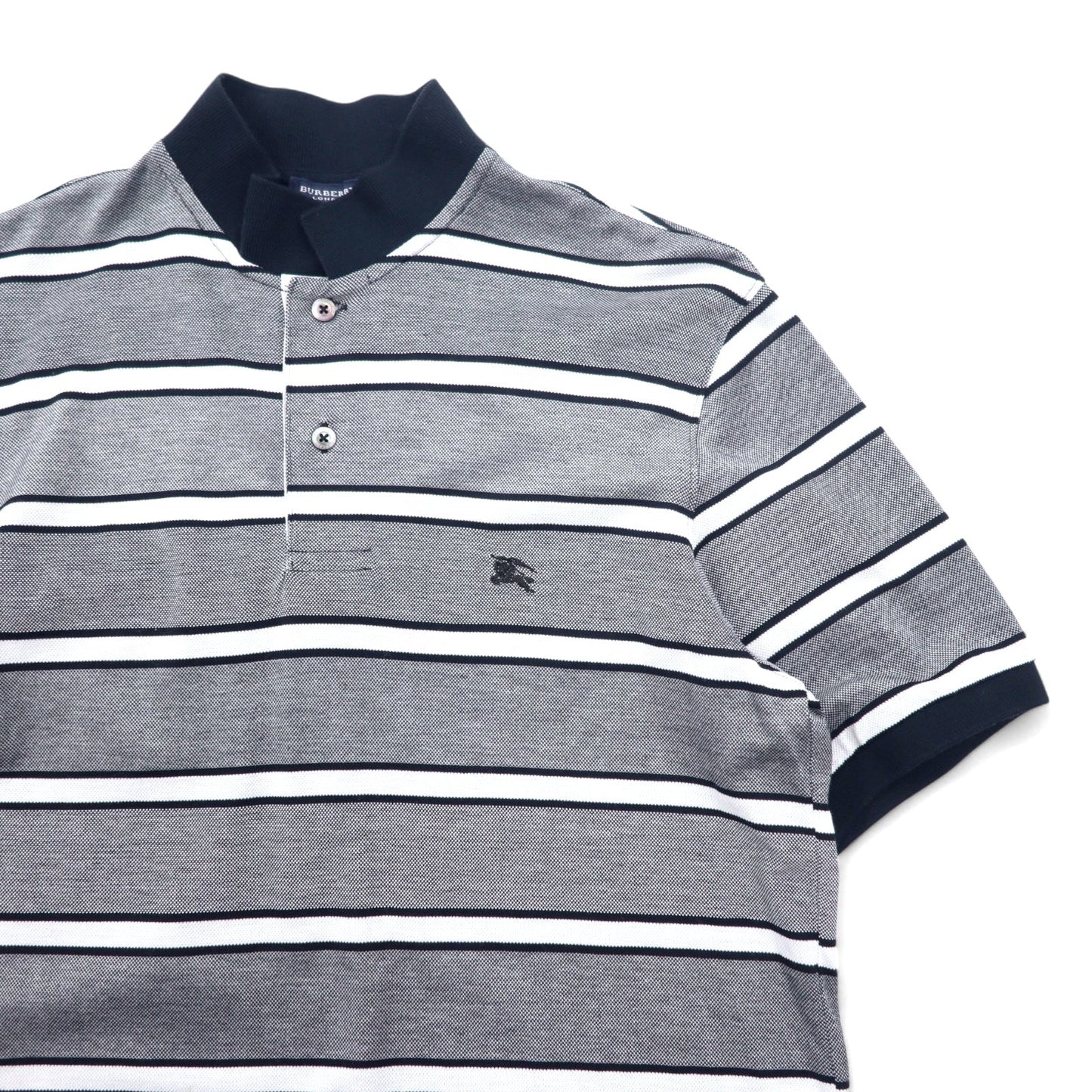 BURBERRY LONDON ボーダー ポロシャツ L グレー コットン ロゴ刺繍 BBV98-508-09 日本製
