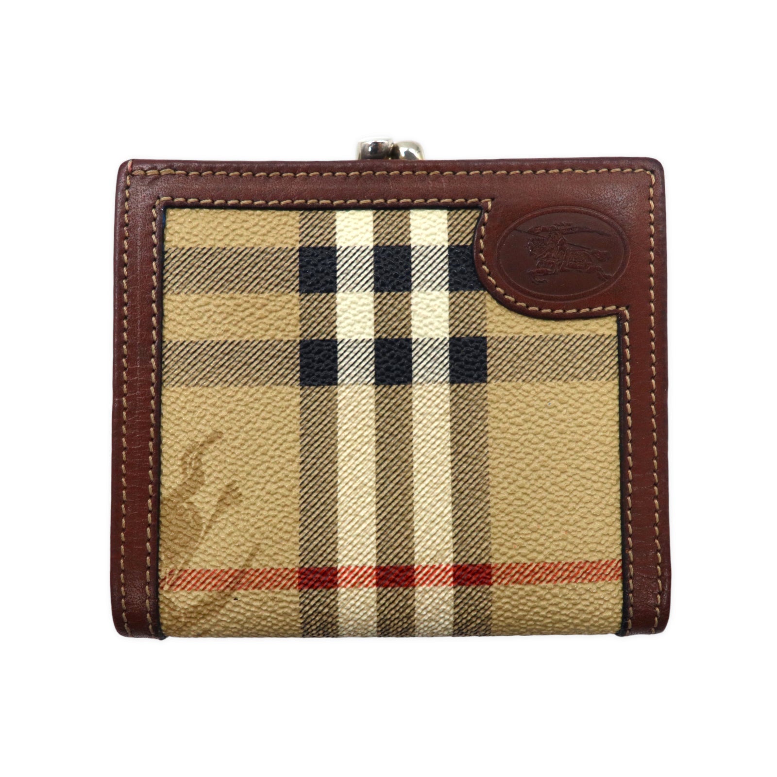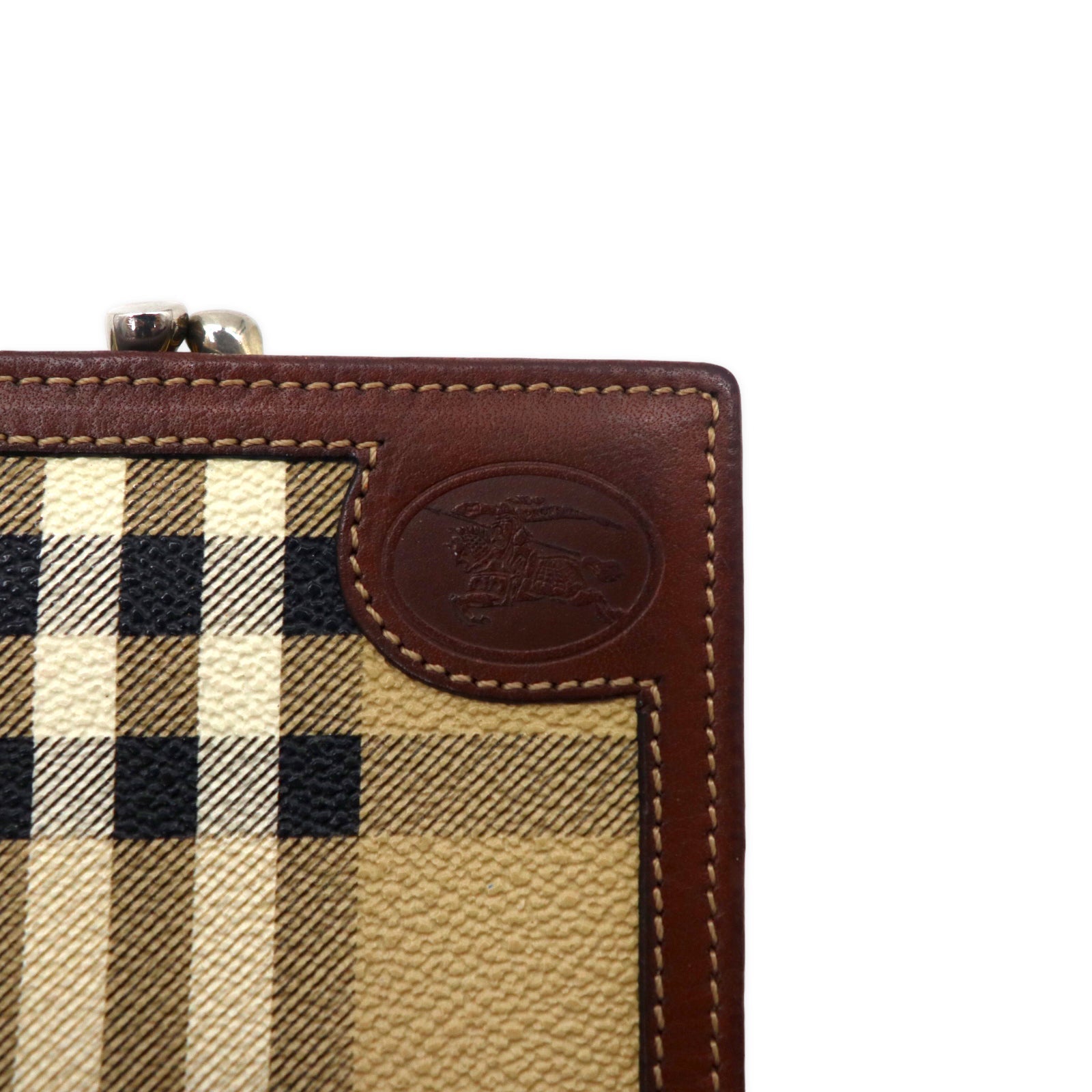 Burberrys イタリア製 がま口 2つ折り財布 コンパクトウォレット ノバチェック ベージュ ブラウン PVC レザー