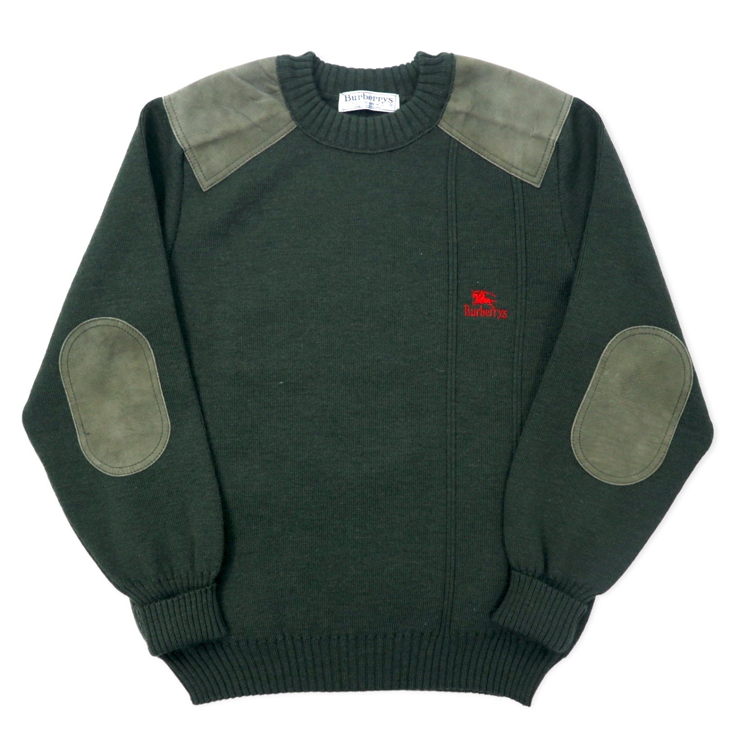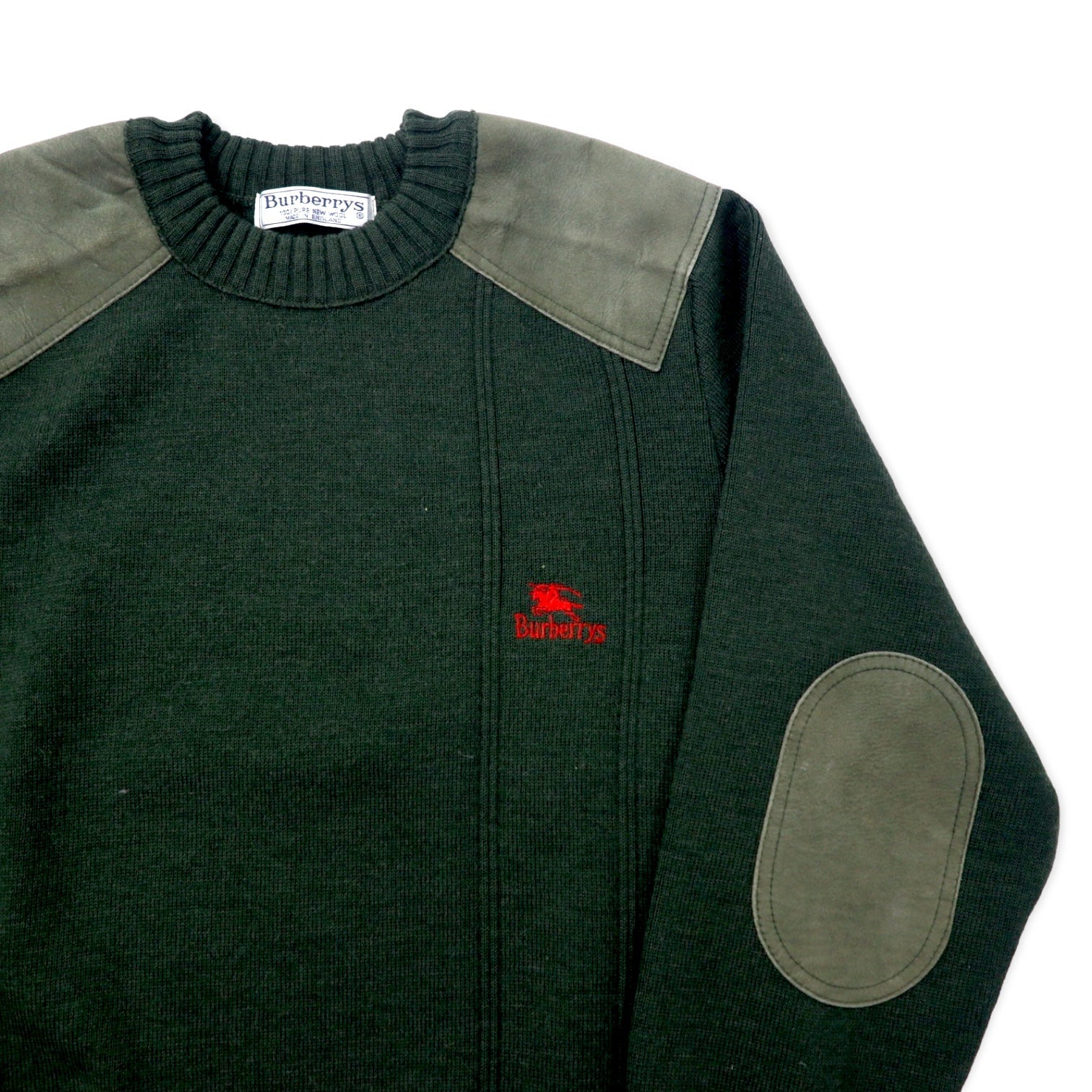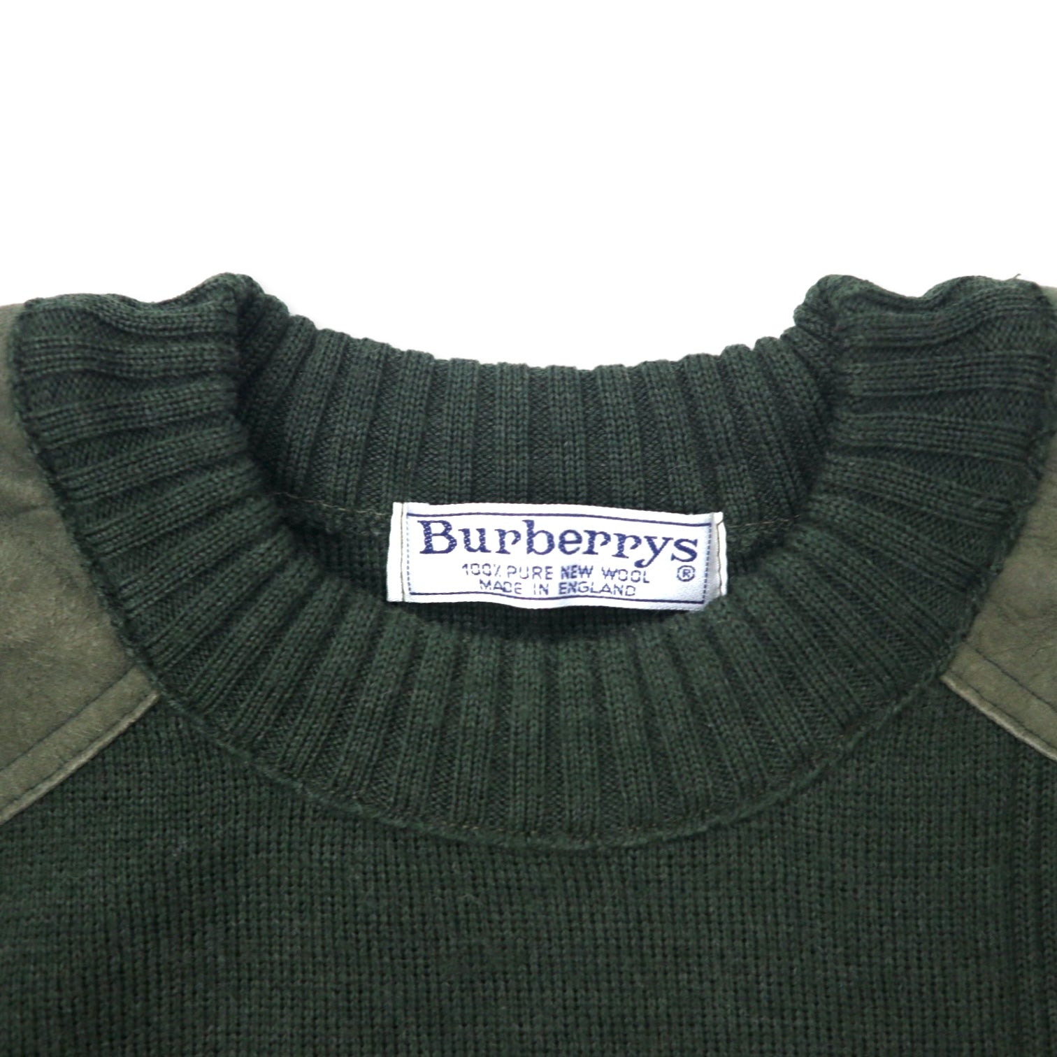 Burberrys イングランド製 オールド コマンド ニット セーター L カーキ ウール レザー切り替え エルボーパッチ