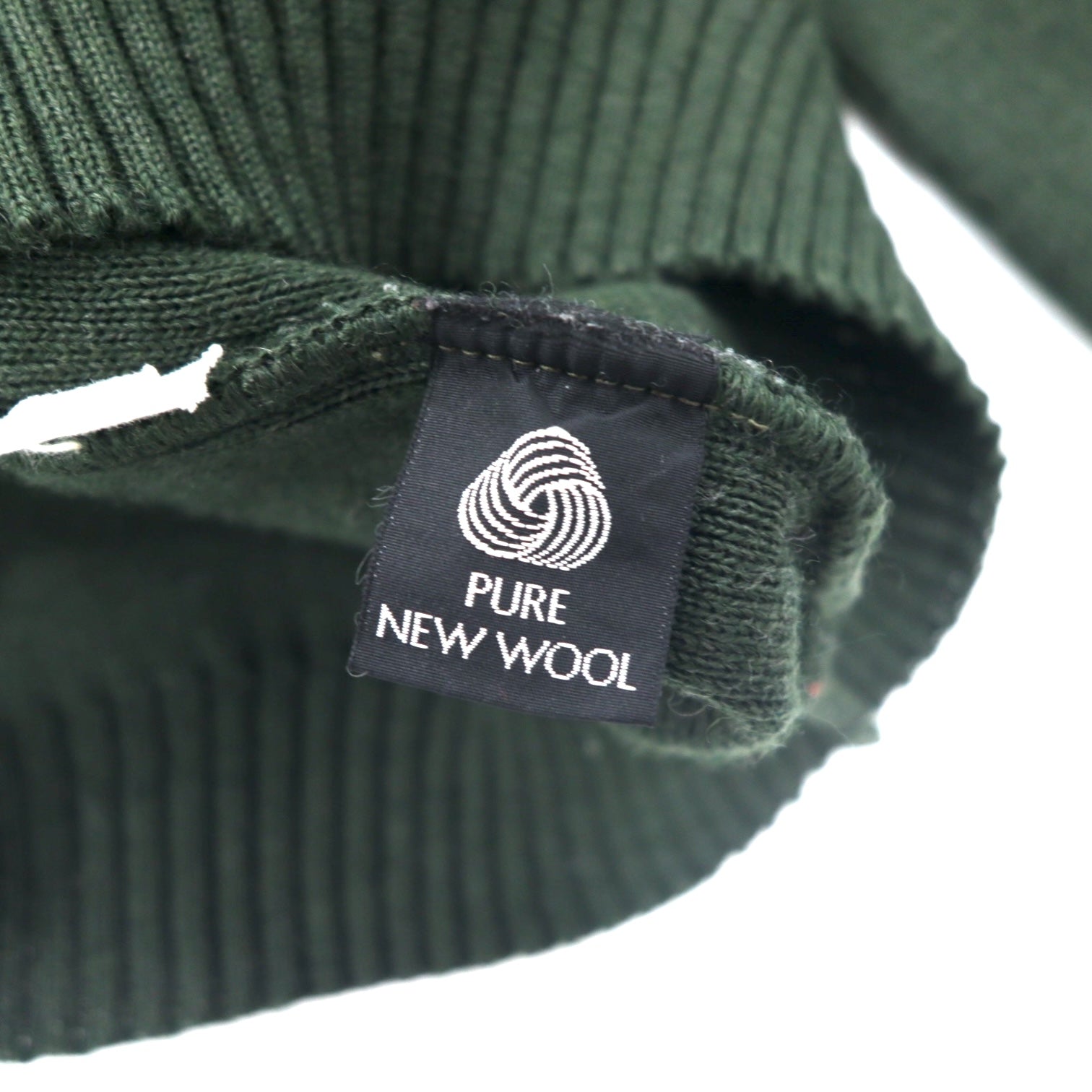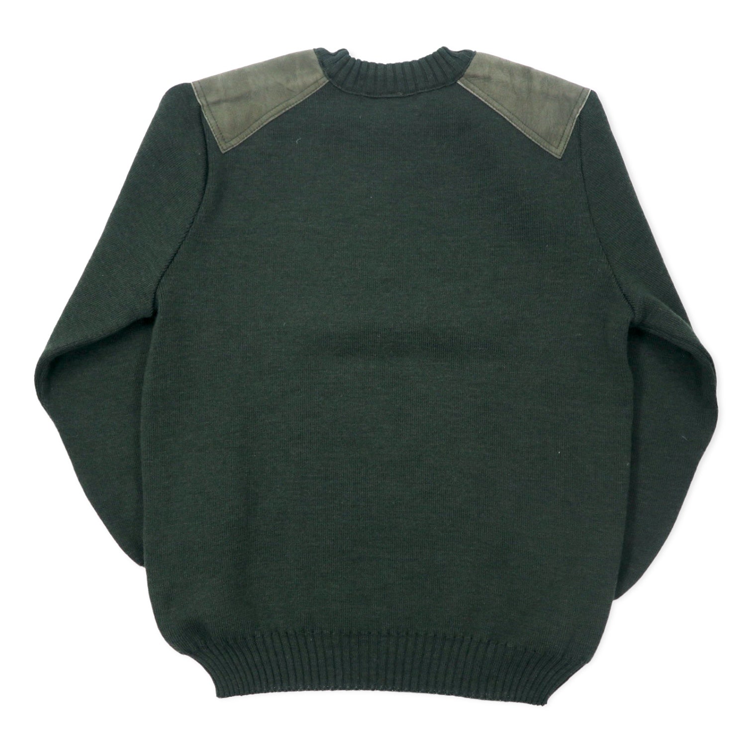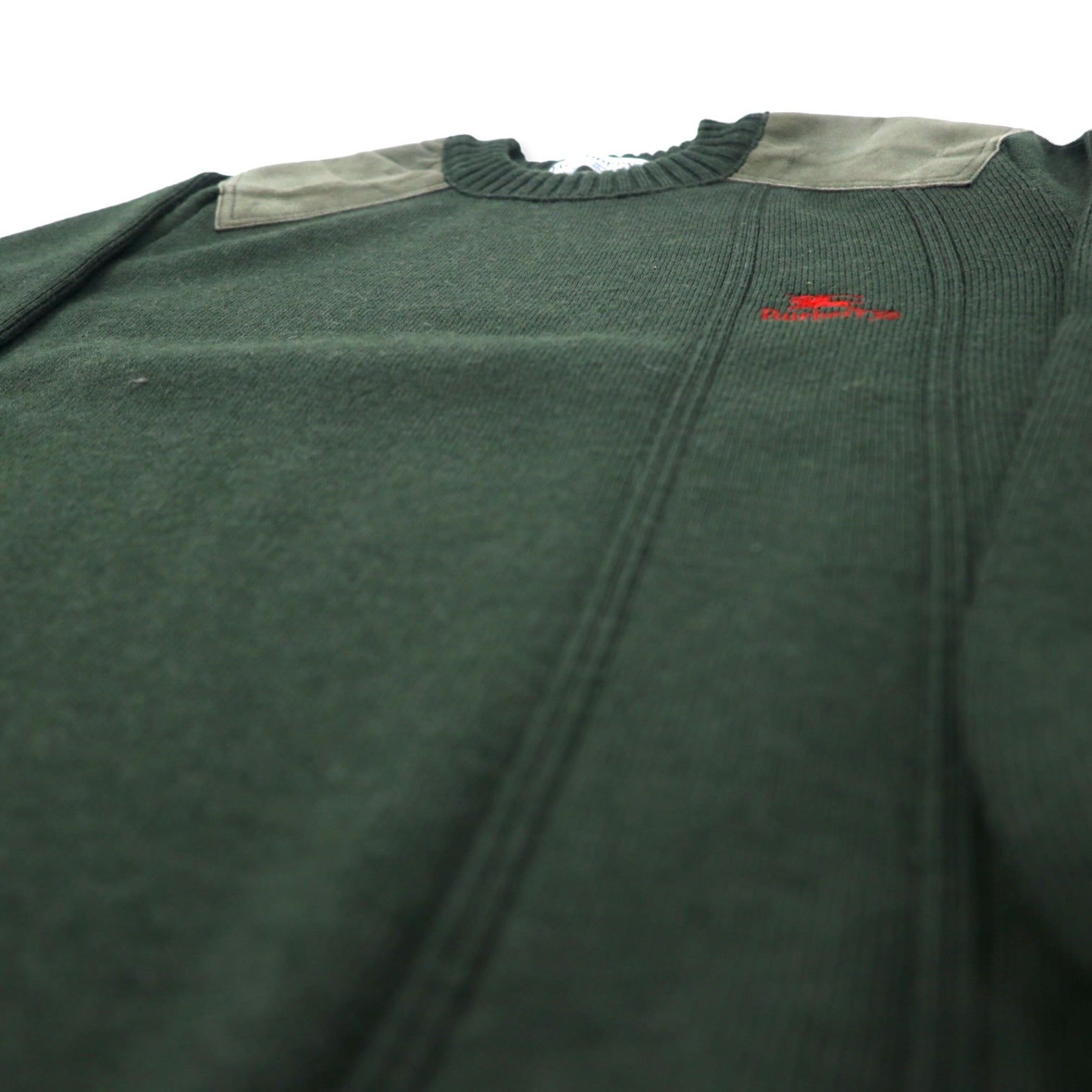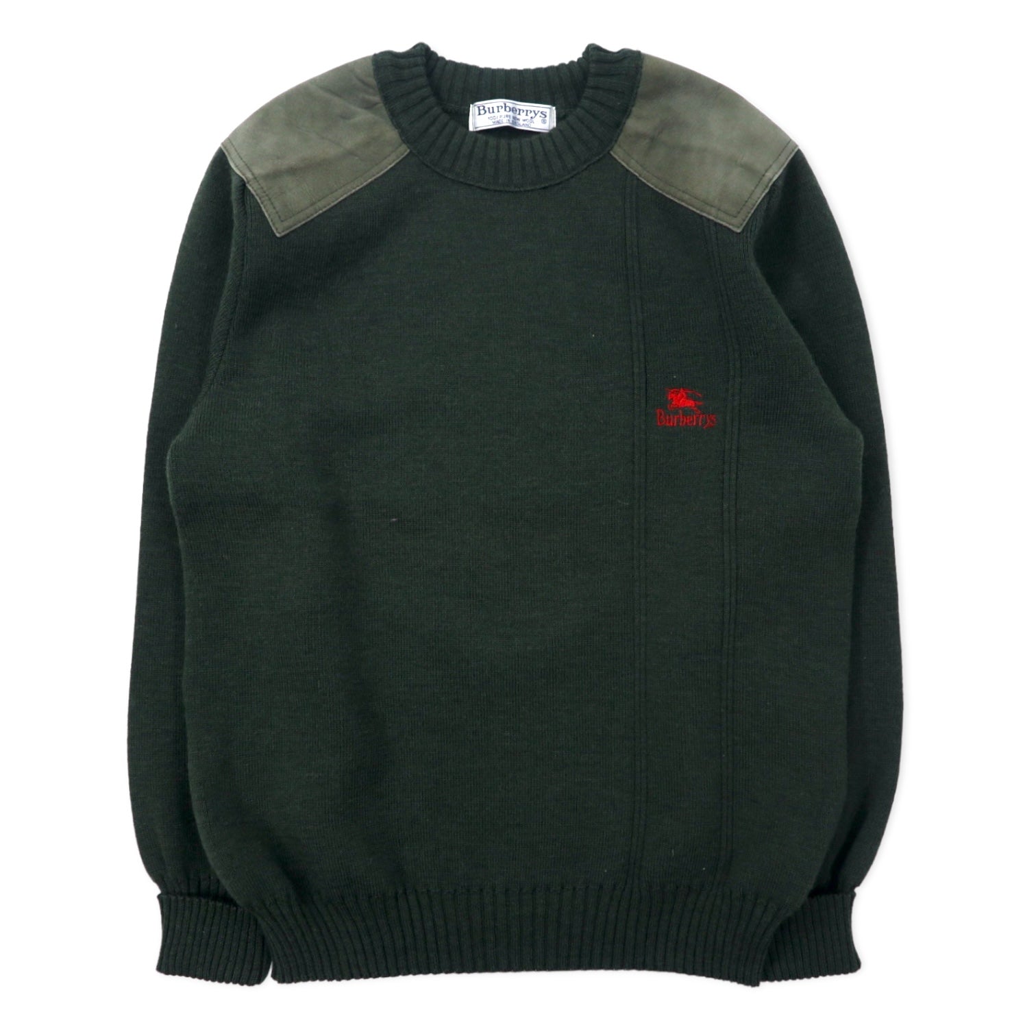 Burberrys イングランド製 オールド コマンド ニット セーター L カーキ ウール レザー切り替え エルボーパッチ