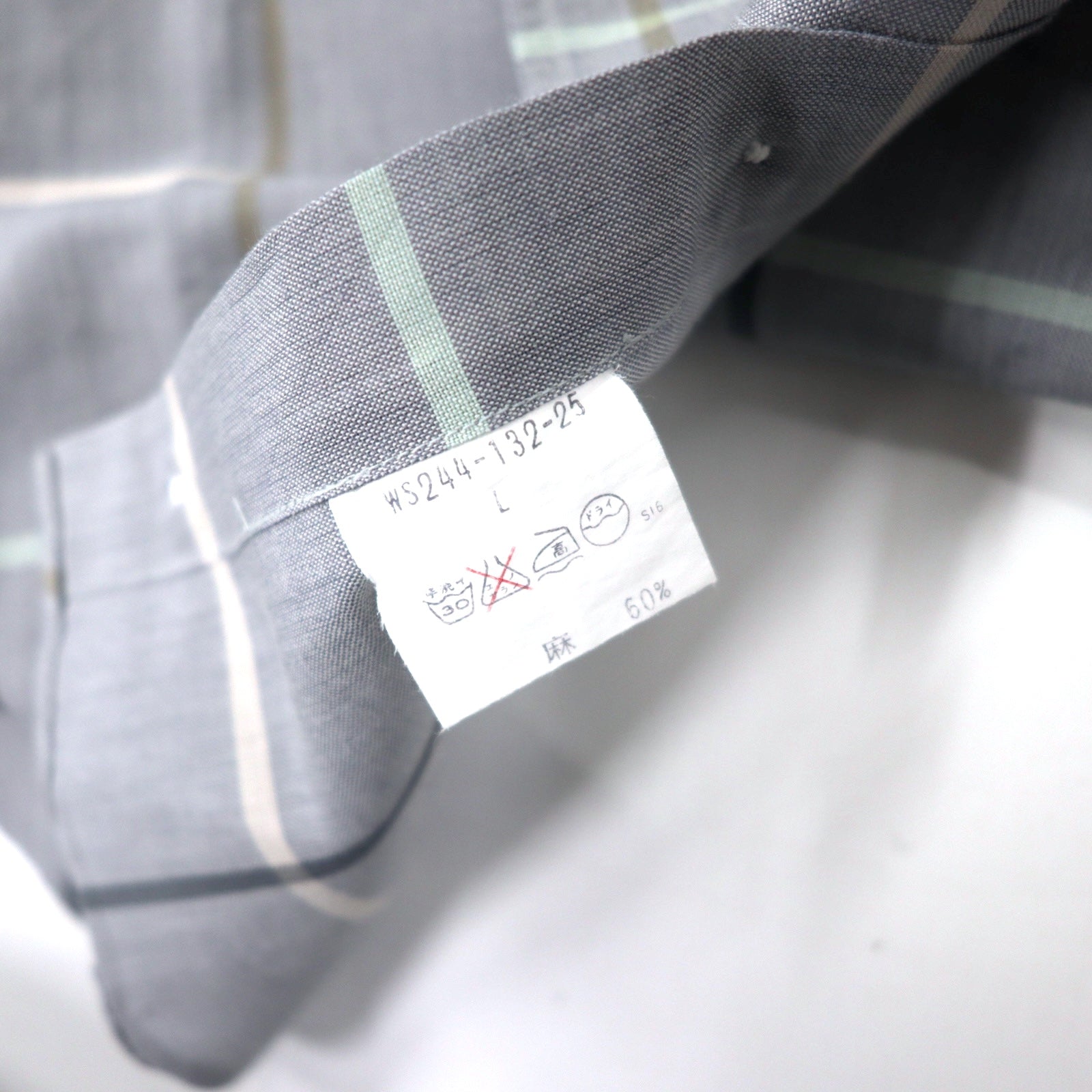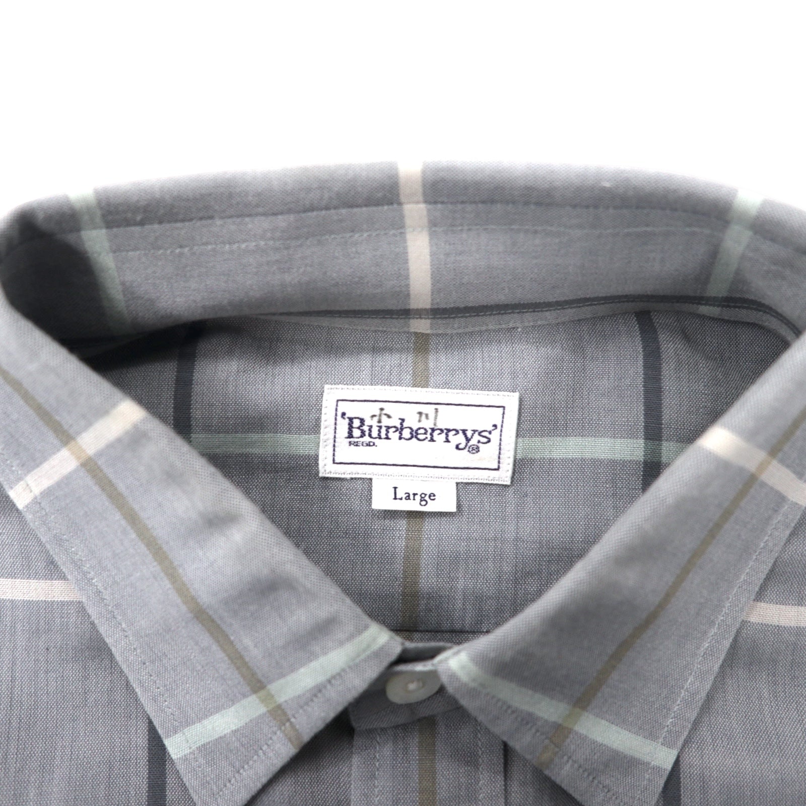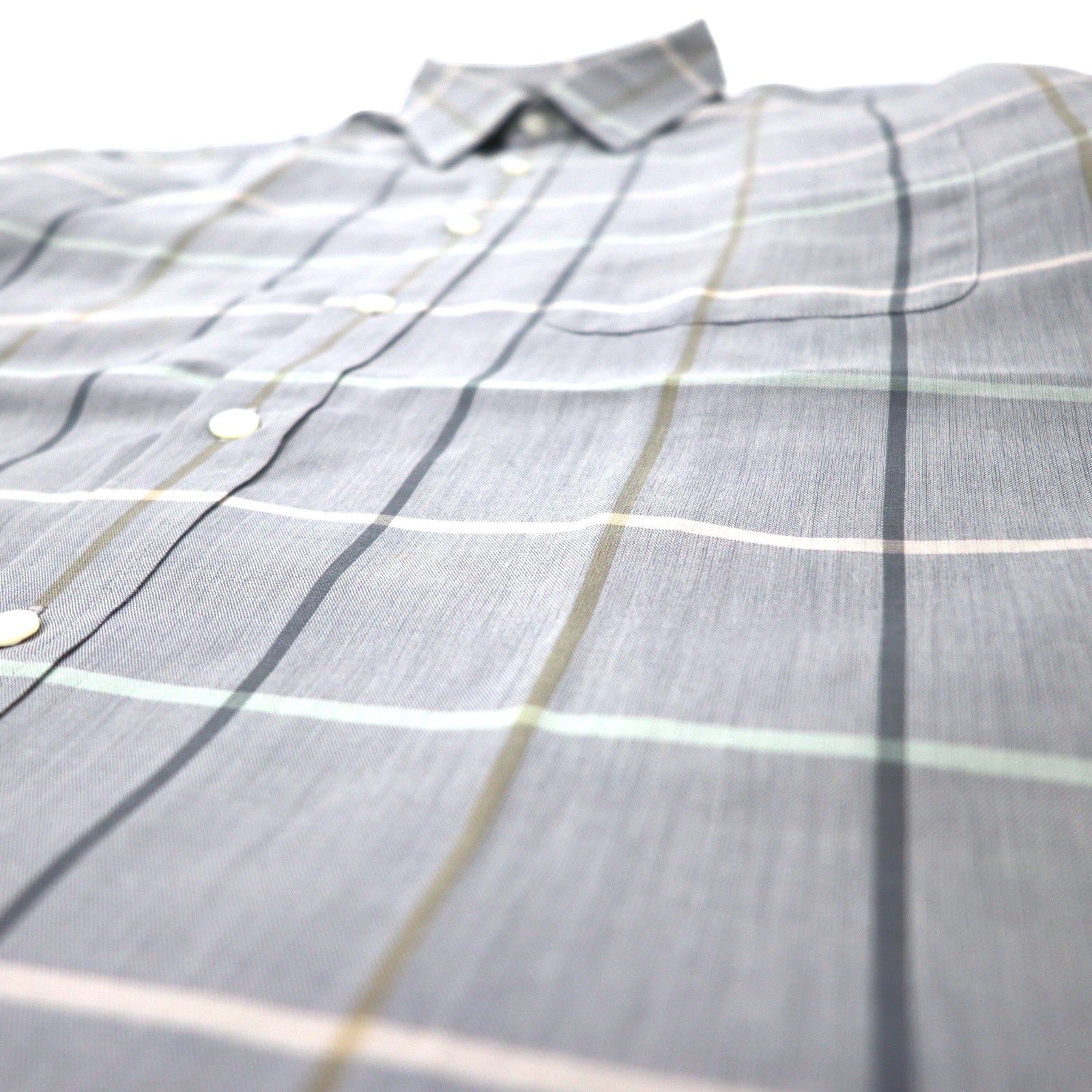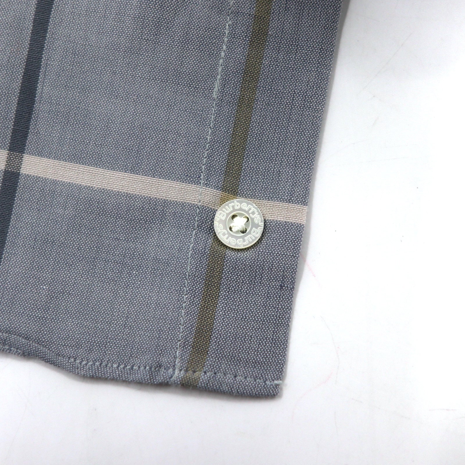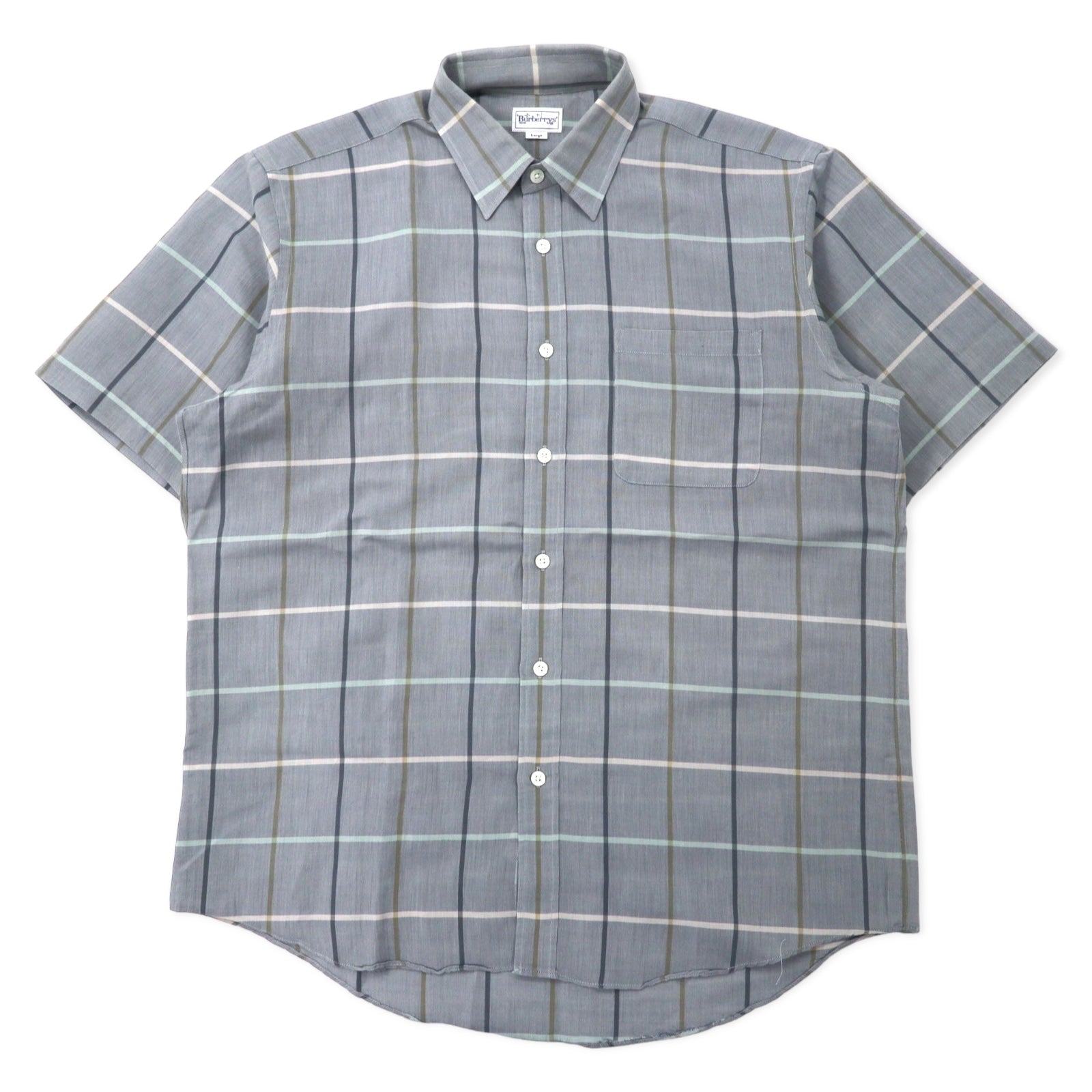 Burberrys ウィンドウペンチェック 半袖 ドレスシャツ L グレー リネン コットン 日本製
