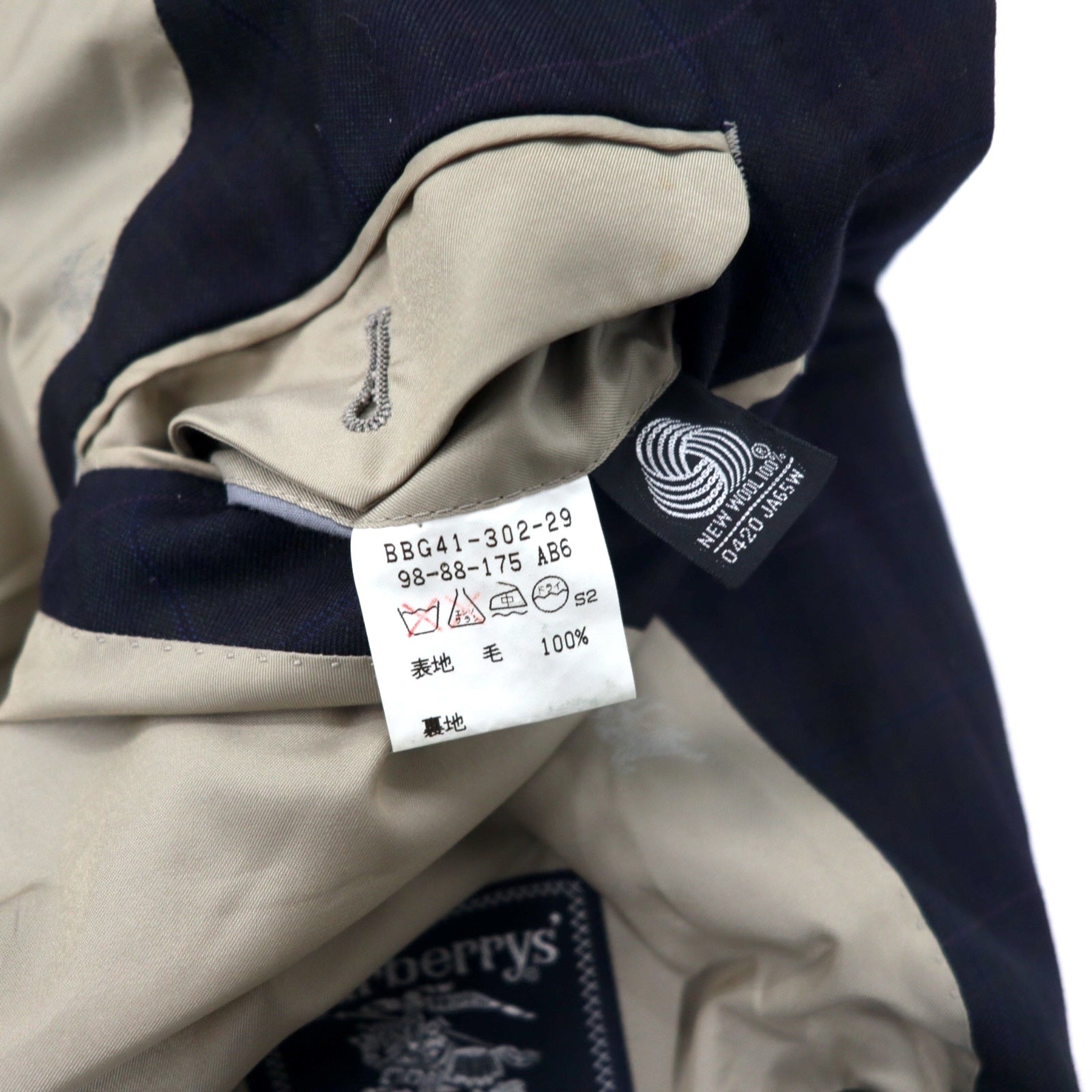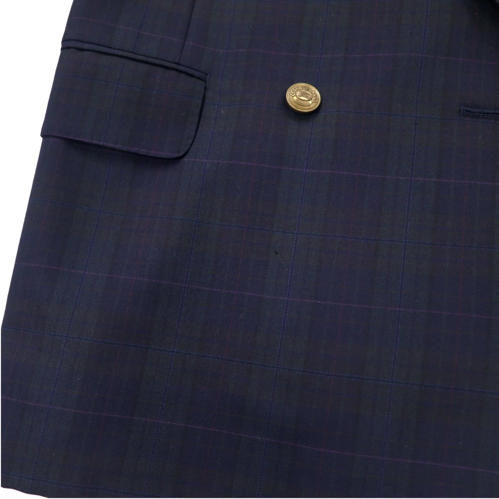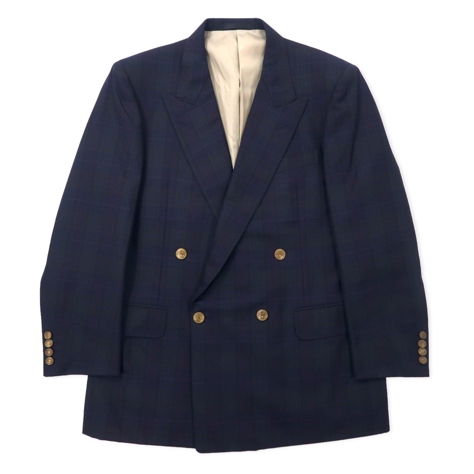 Burberrys オールド ダブル テーラードジャケット 98-88-175 AB6 ネイビー チェック ウール ギャバジン 金ボタン 飾りボタン ピークドラペル 日本製