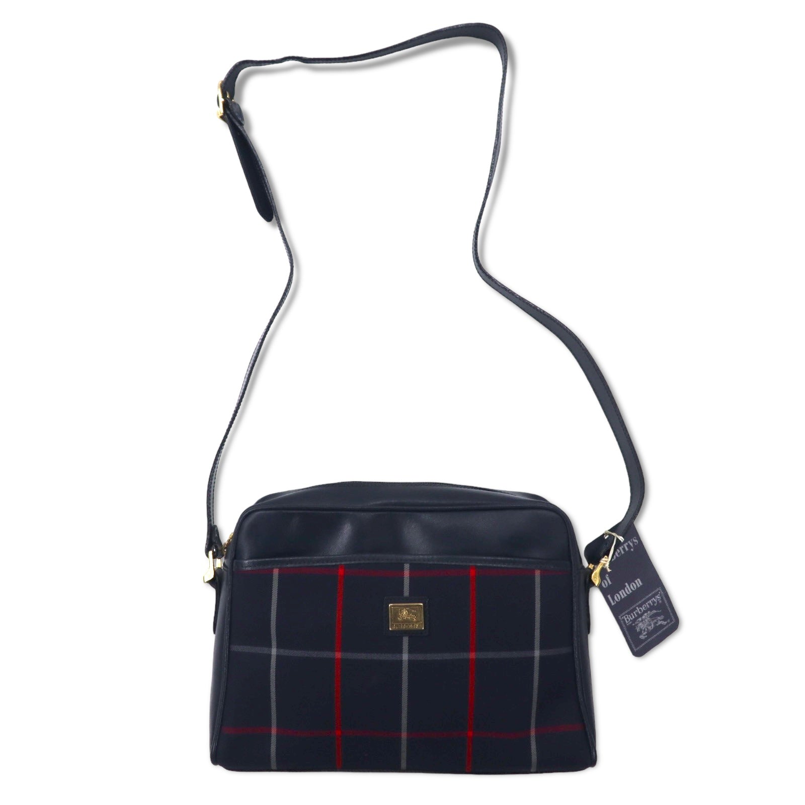 BURBERRYS オールド ノバチェック ショルダーバッグ ネイビー キャンバス レザー 未使用品