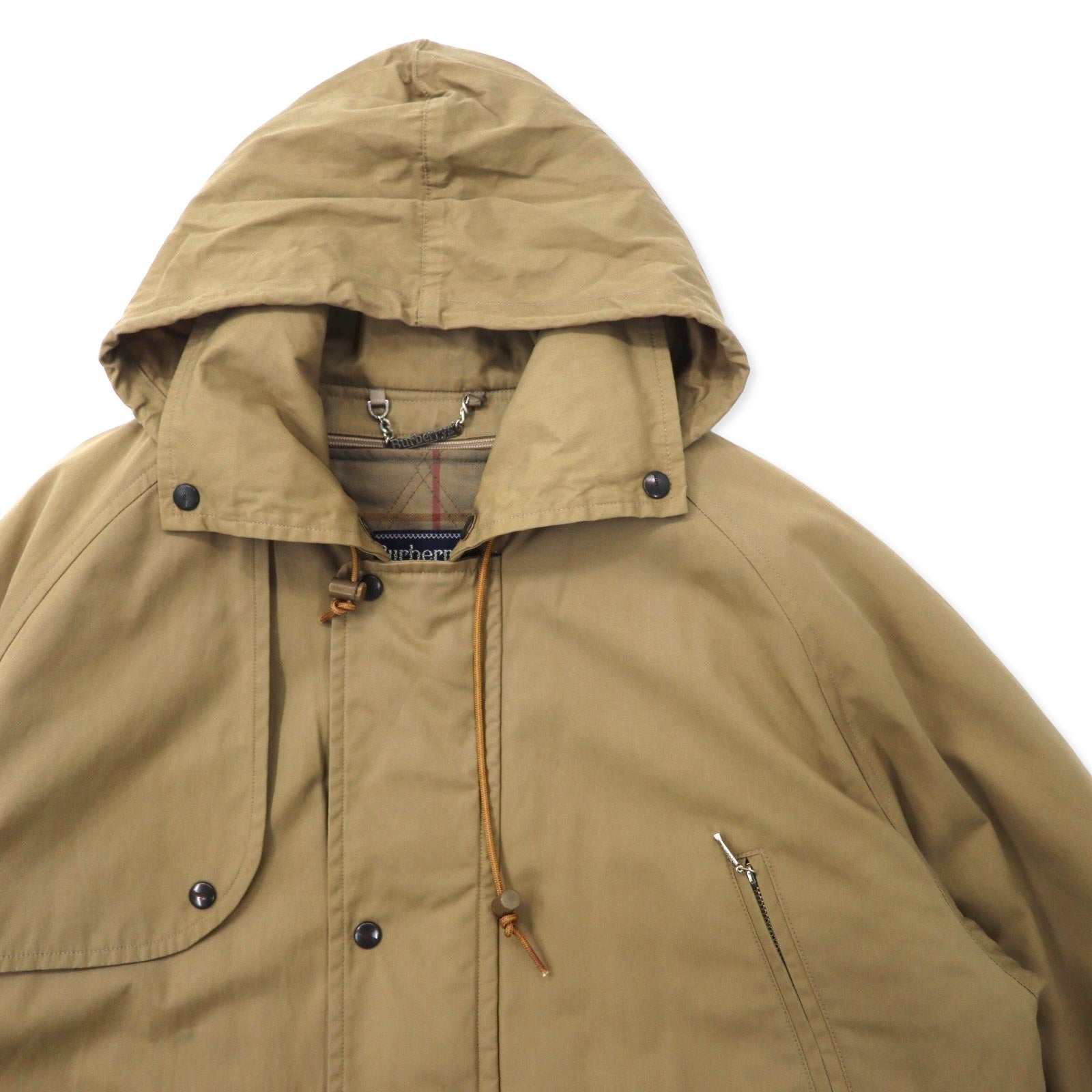 Burberrys オールド ハンティングジャケット M ベージュ コットン ドローコード チェックライナー着脱式 フード収納式