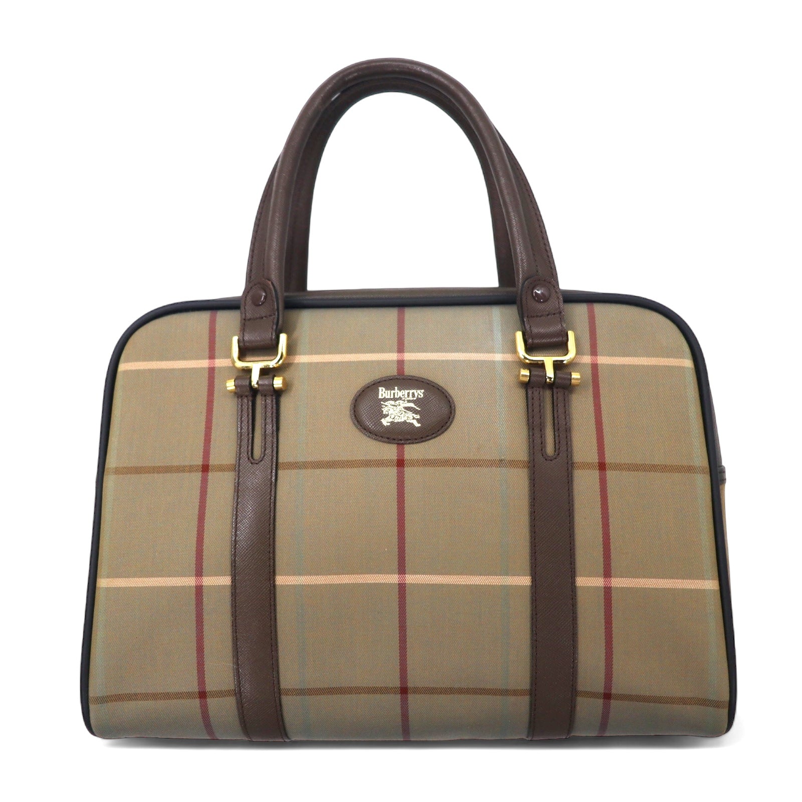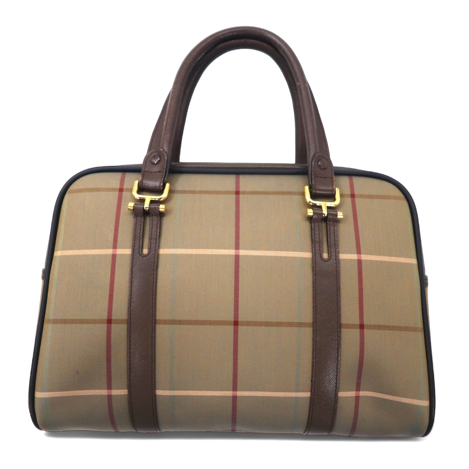Burberrys オールド ハンドバッグ ベージュ ウィンドウペン チェック 玉虫 ナイロン キャンバス レザー