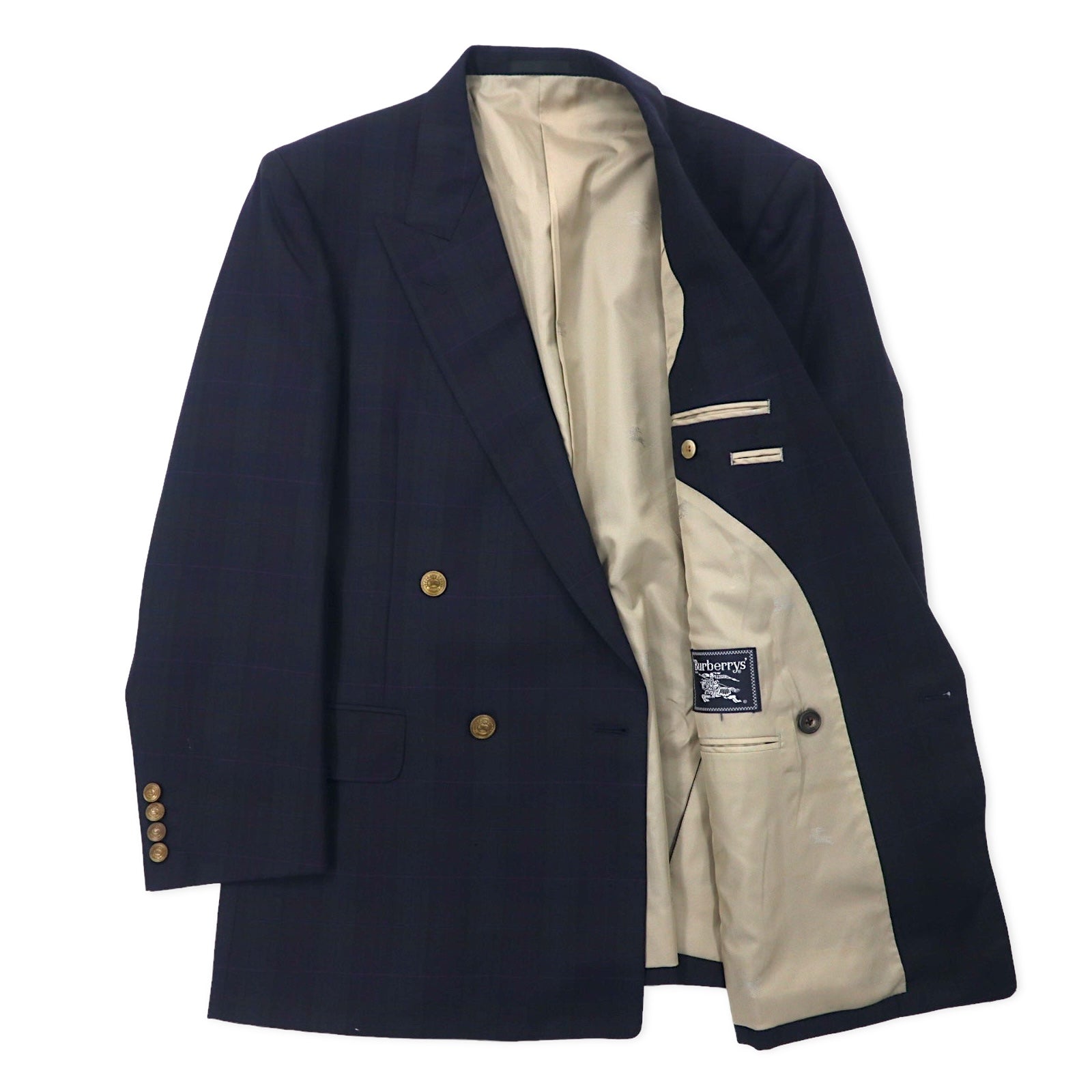 Burberrys オールド ダブル テーラードジャケット 98-88-175 AB6 ネイビー チェック ウール ギャバジン 金ボタン 飾りボタン ピークドラペル 日本製