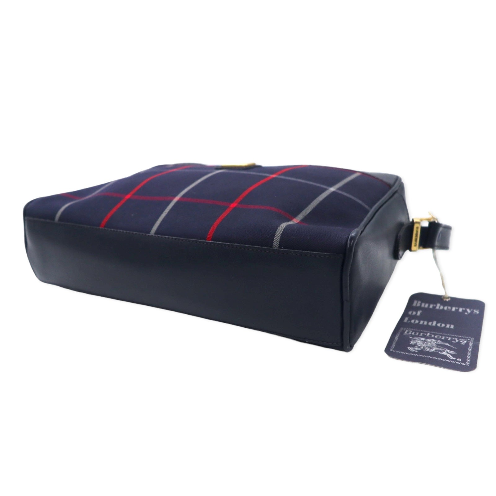 BURBERRYS オールド ノバチェック ショルダーバッグ ネイビー キャンバス レザー 未使用品