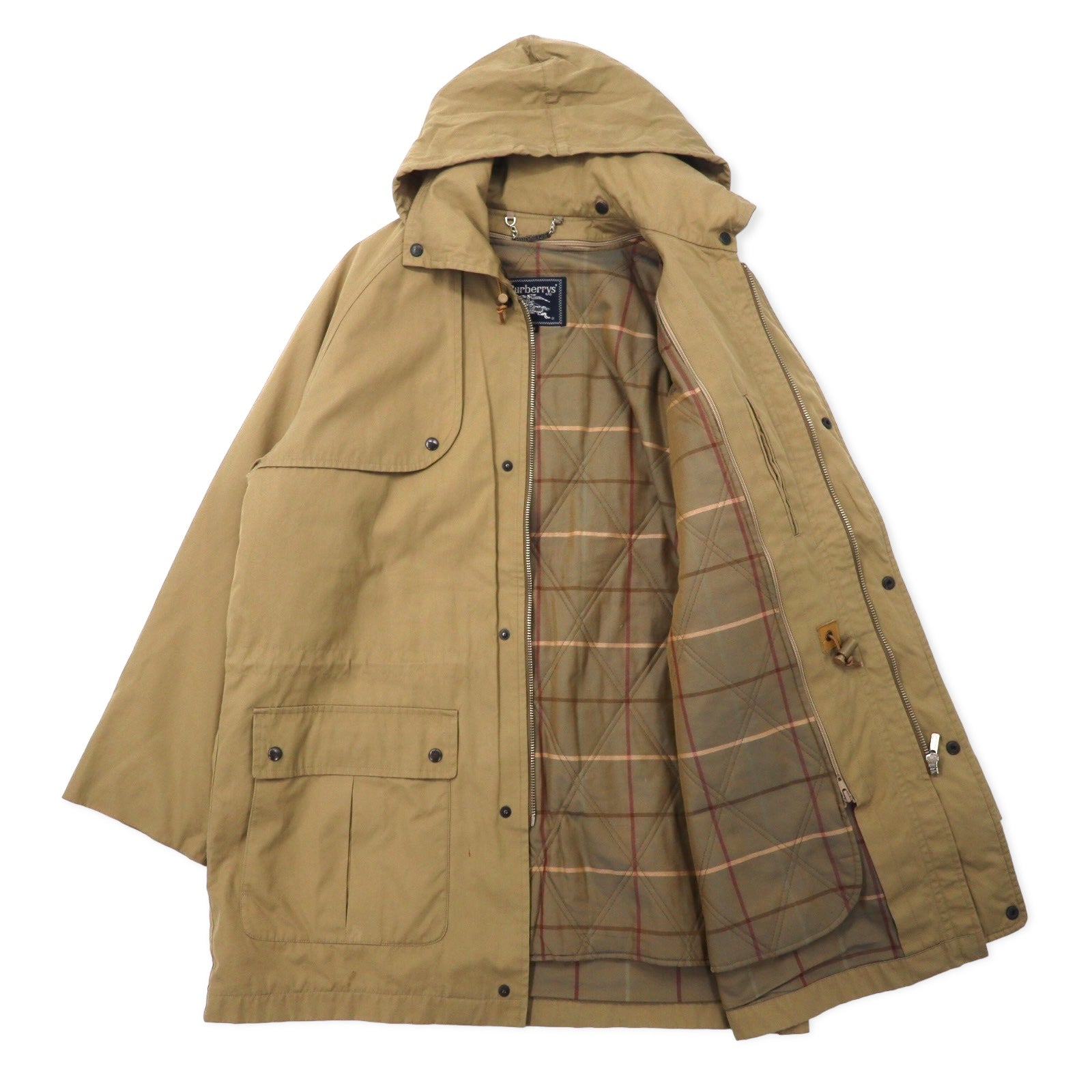 Burberrys オールド ハンティングジャケット M ベージュ コットン ドローコード チェックライナー着脱式 フード収納式