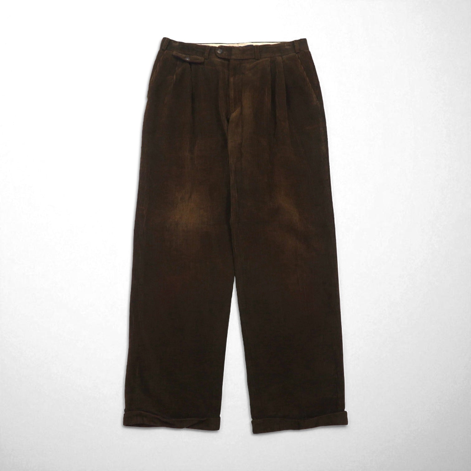 Burberrys 80年代 西ドイツ製 2タック ワイド コーデュロイパンツ L ブラウン コットン