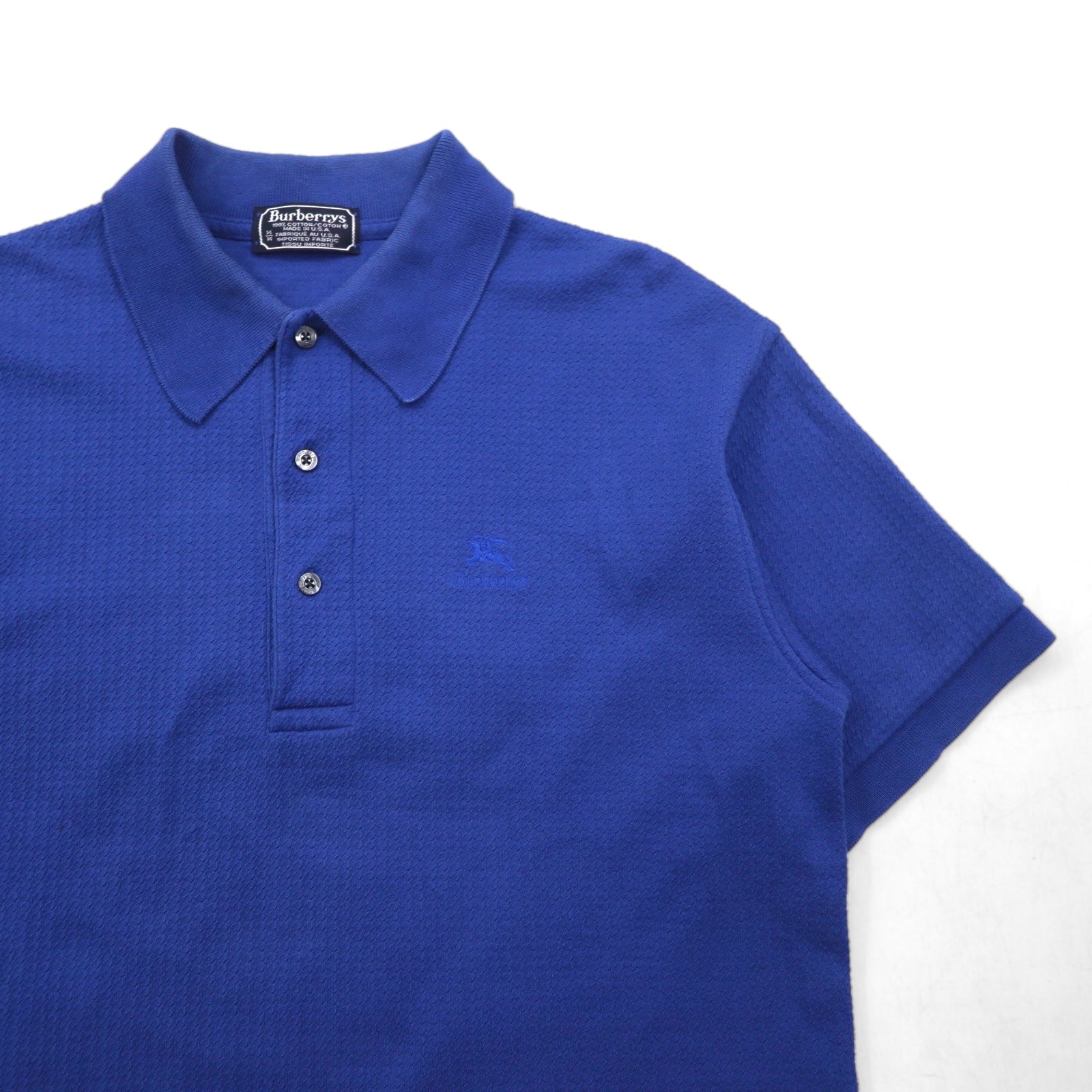 Burberrys USA製 ジャガード ポロシャツ M ブルー コットン ワンポイントロゴ刺繍