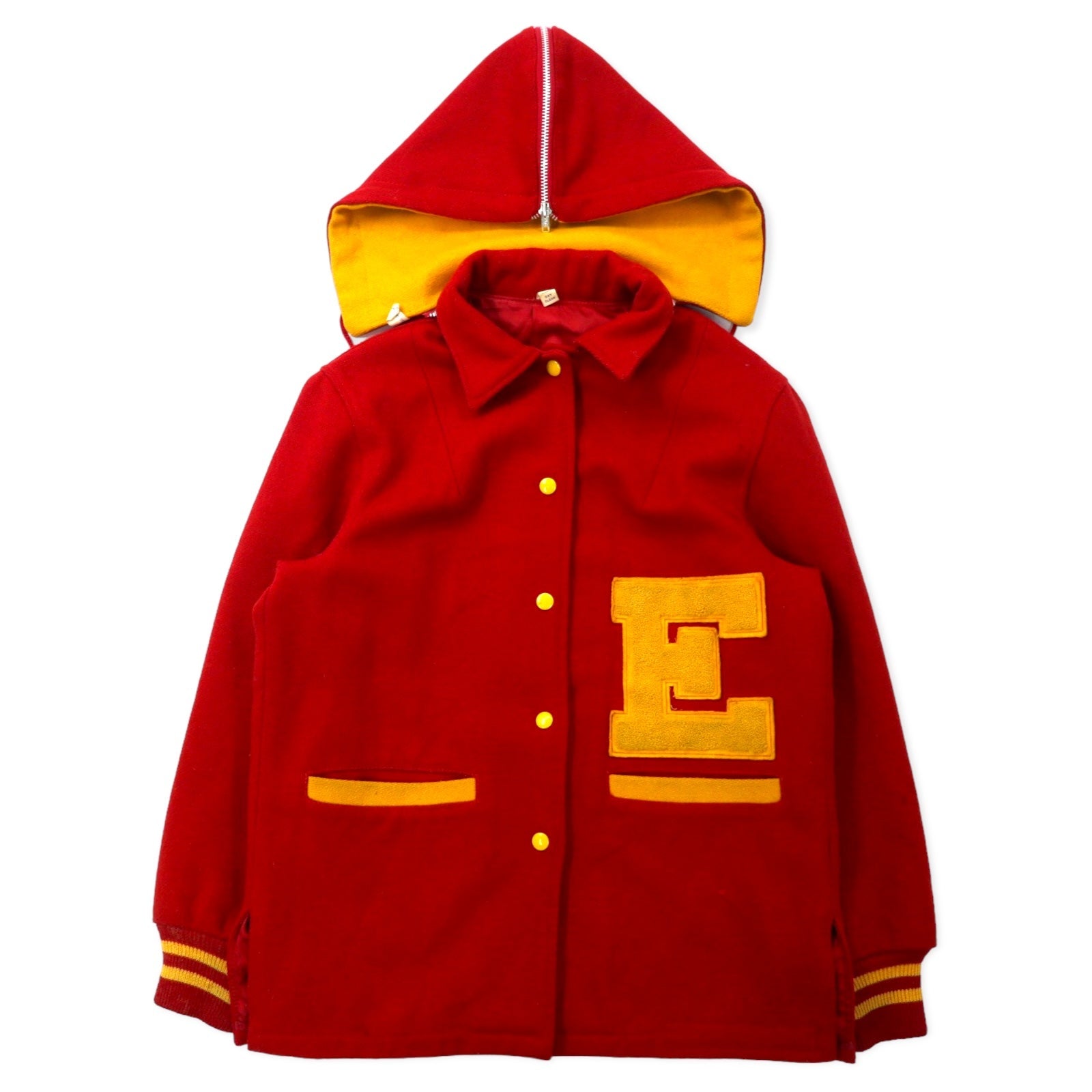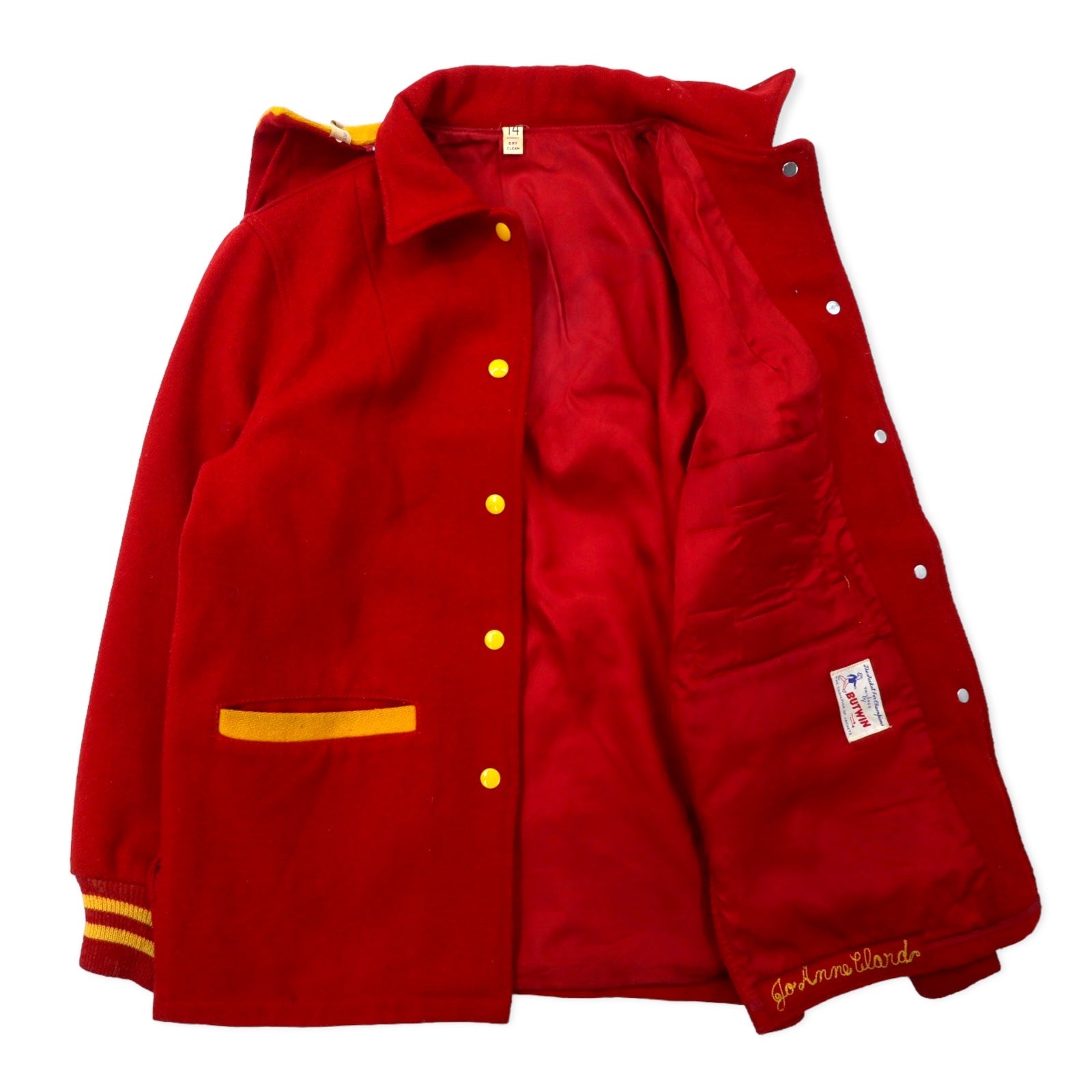 BUTWIN USA製 60年代 スタジャン アワードジャケット 14 レッド ウール 棒形TALONジップ ラビットフード着脱式