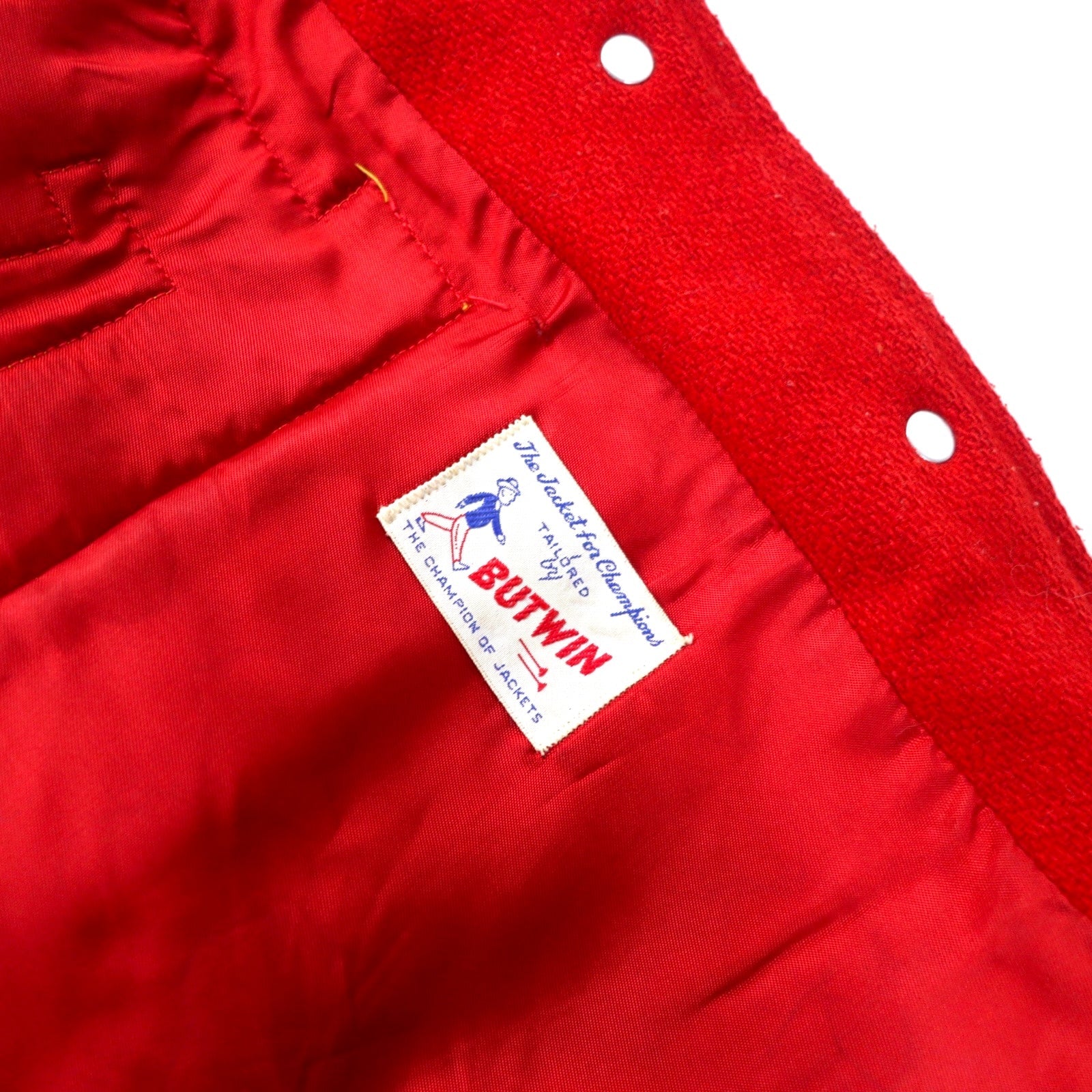 BUTWIN USA製 60年代 スタジャン アワードジャケット 14 レッド ウール 棒形TALONジップ ラビットフード着脱式