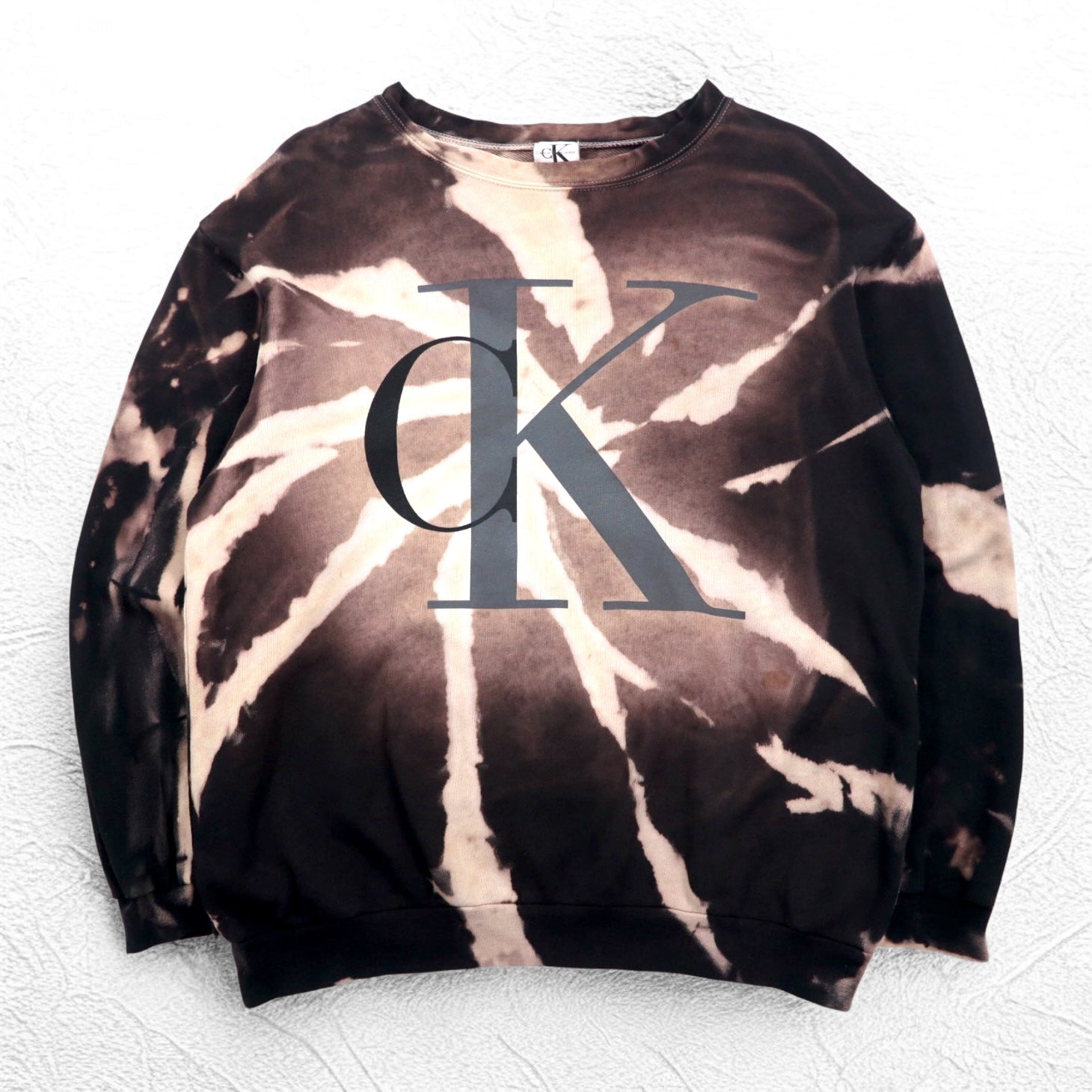 Calvin Klein 90年代 USA製 CKロゴ スウェット L ブラック コットン タイダイ ブリーチ