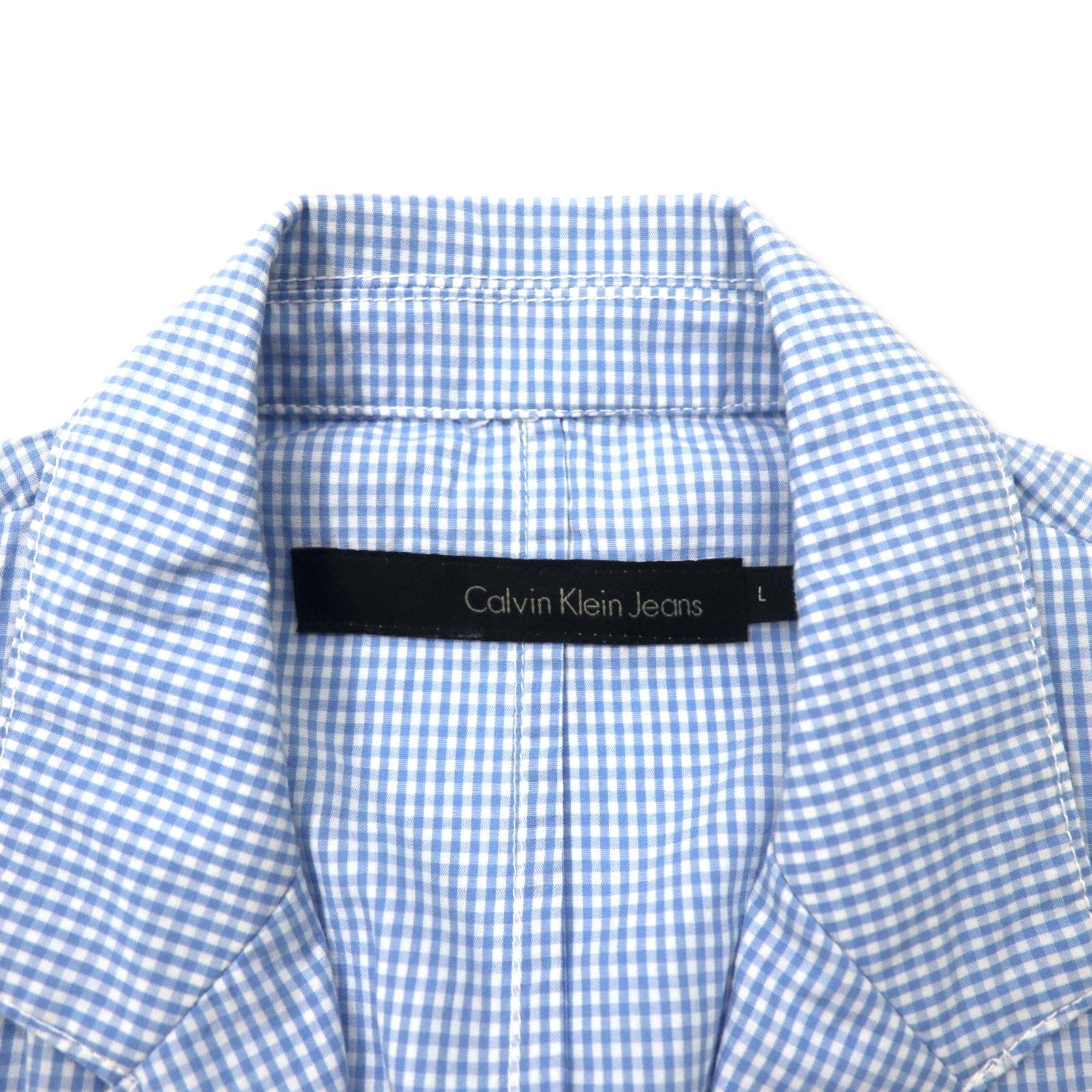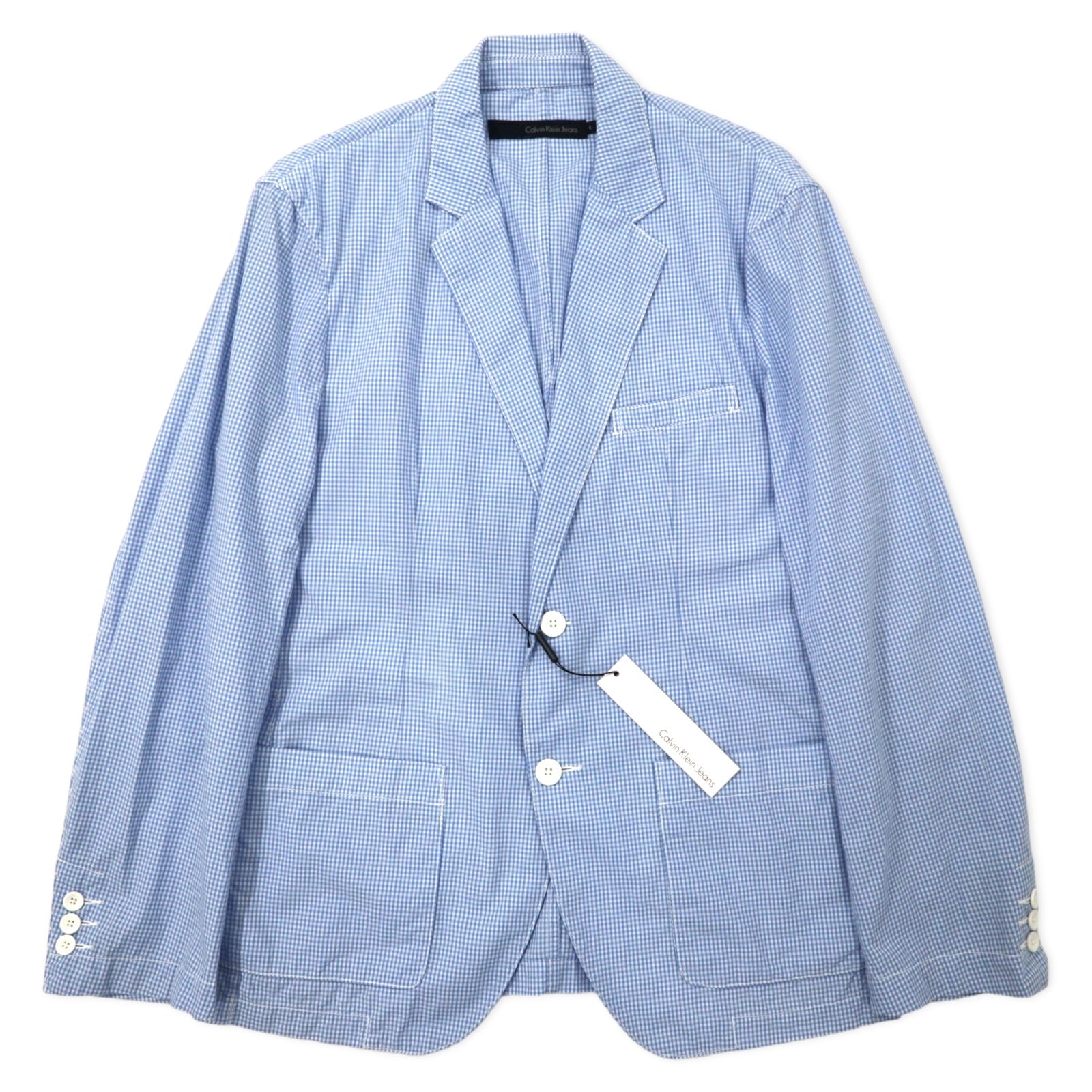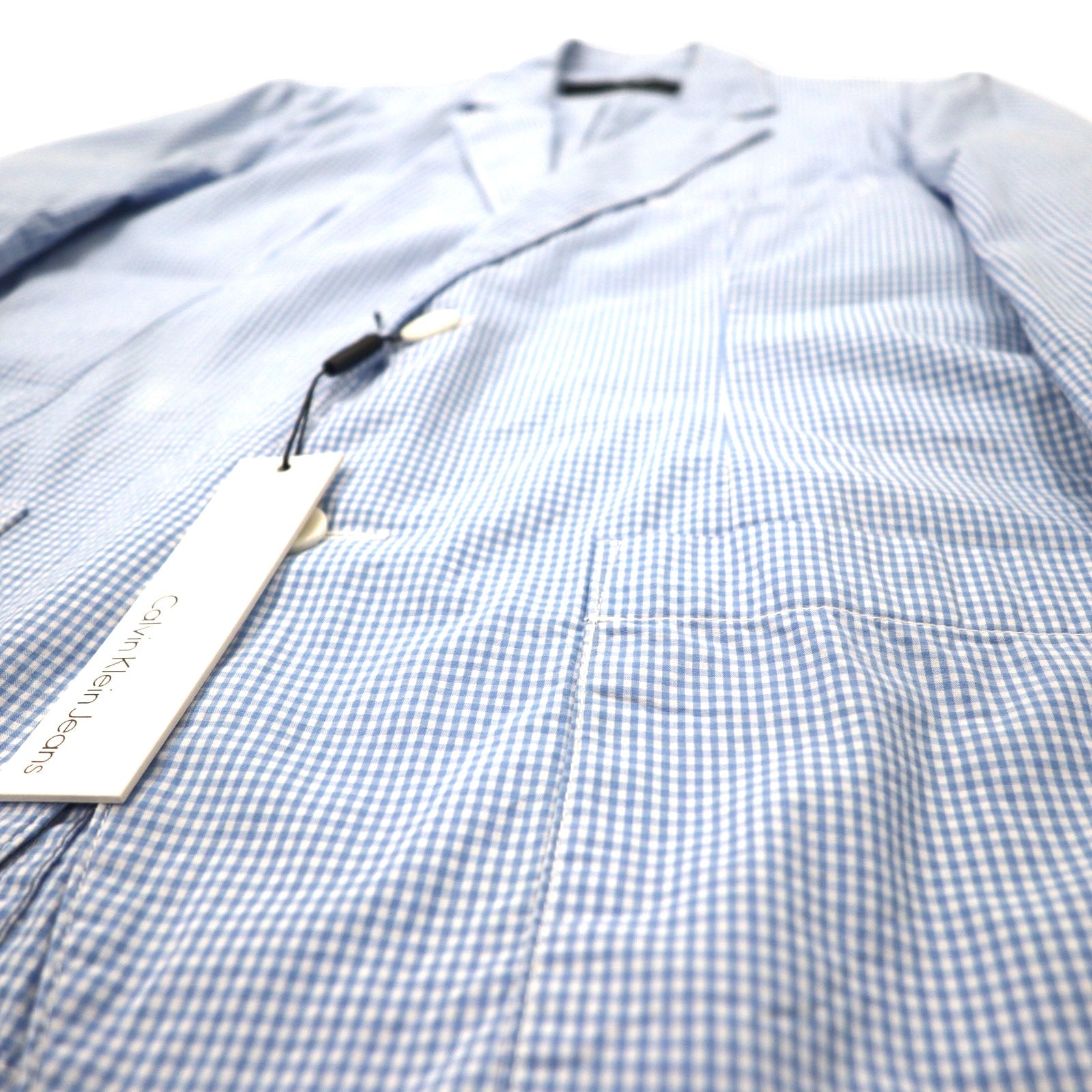 Calvin Klein Jeans ギンガムチェック 2B テーラードジャケット L ブルー コットン 未使用品