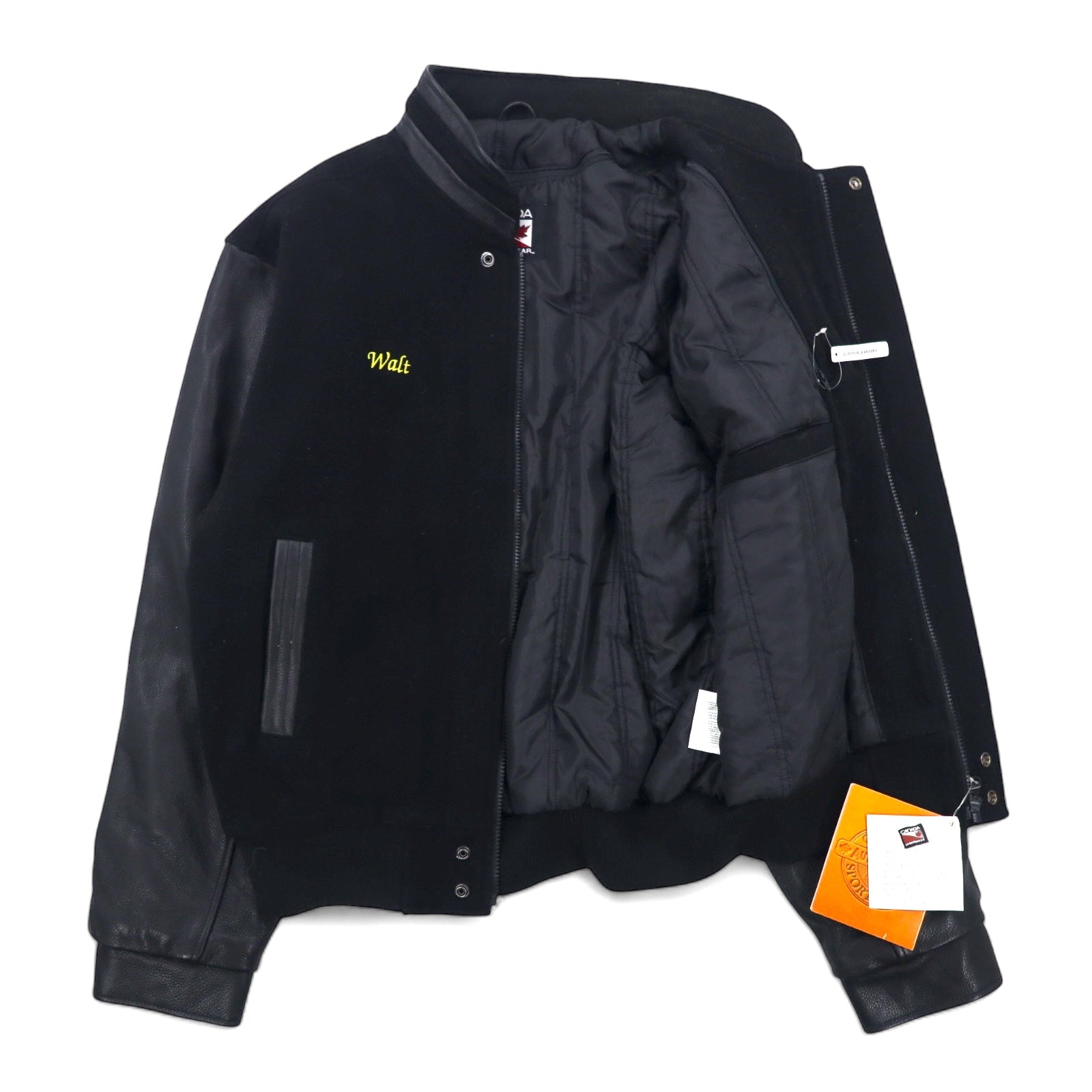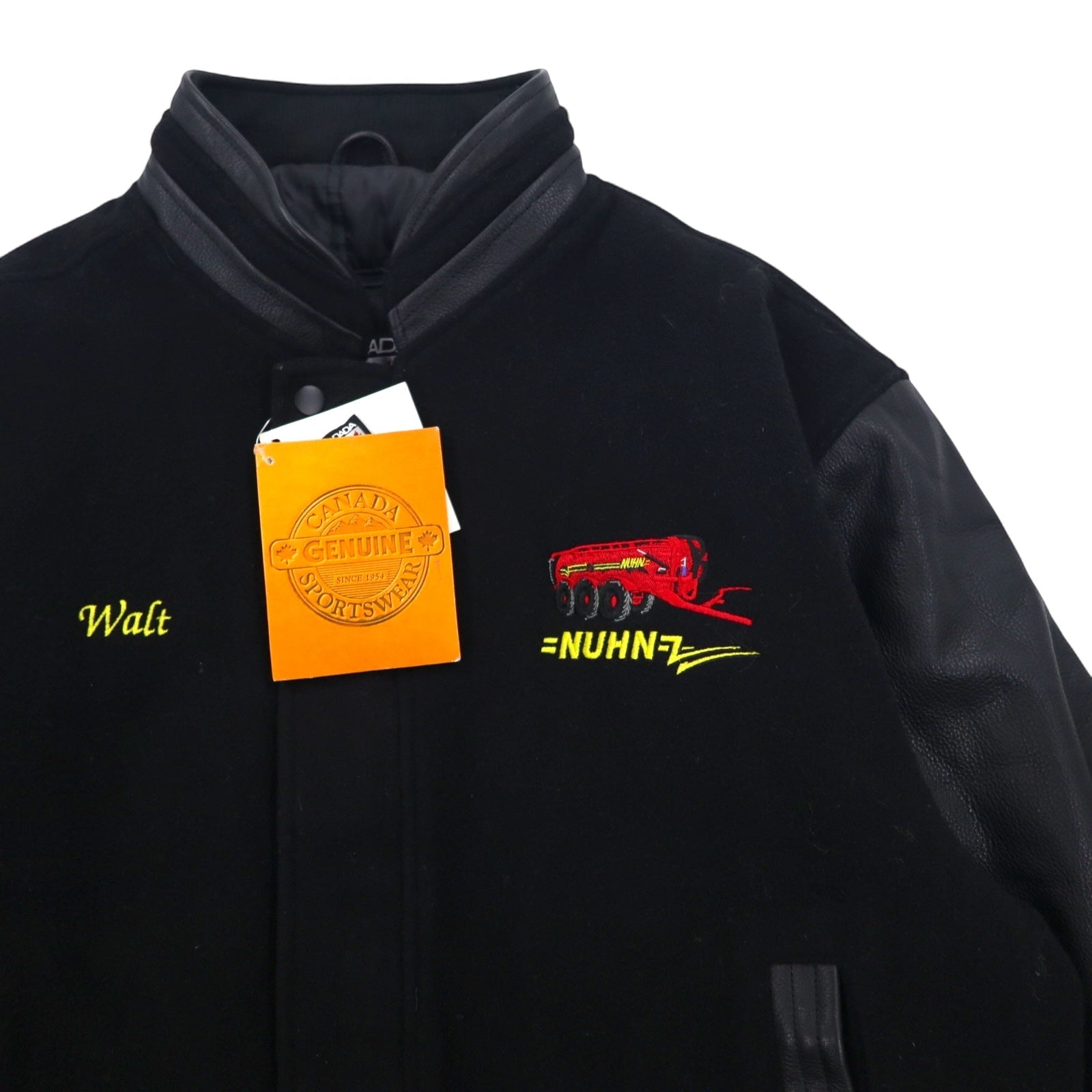 CANADA SPORTSWEAR 袖レザー スタジャン L ブラック ウール 牛革 NUHN 刺繍 未使用品