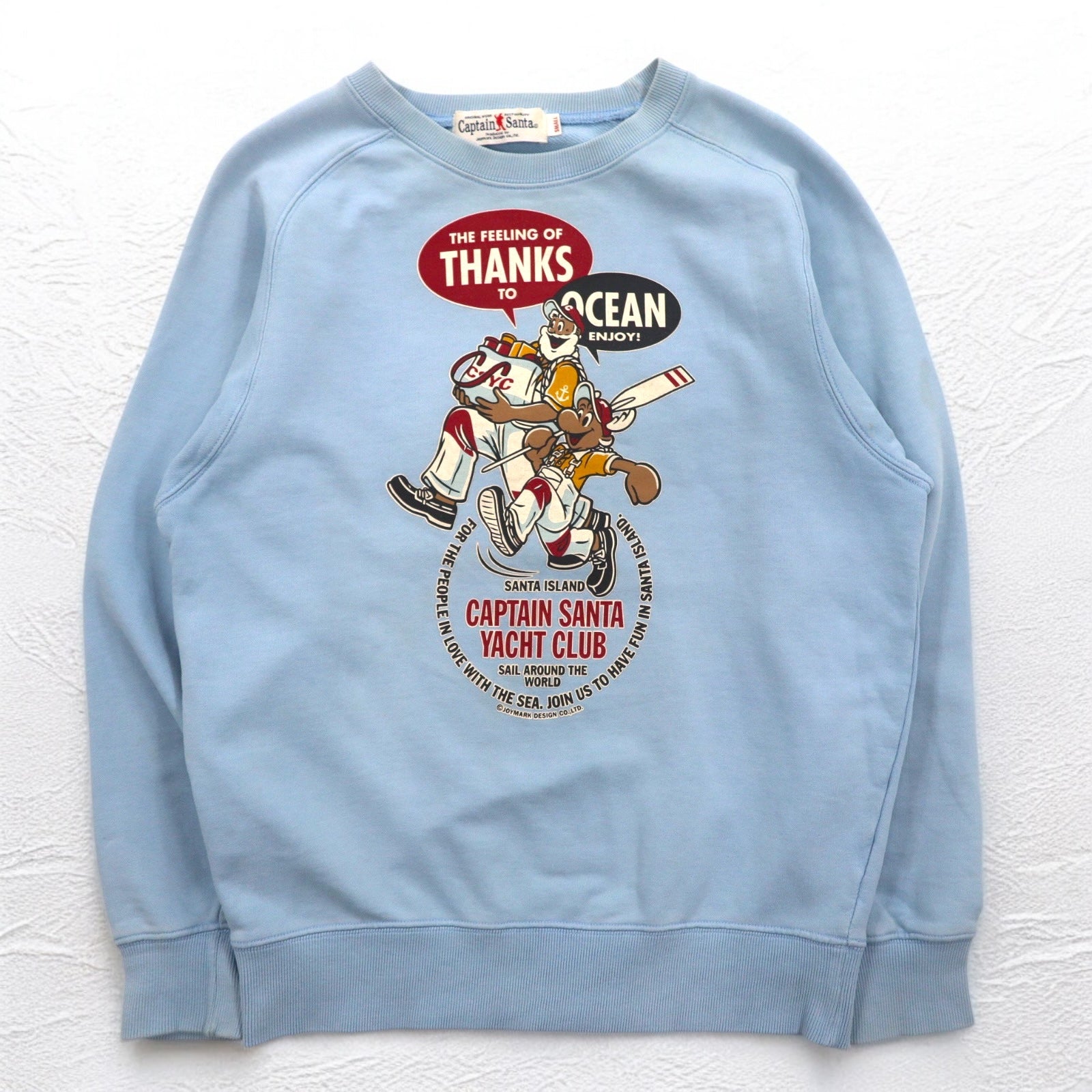 Captain Santa 90年代 キャラクタープリント スウェット S ブルー コットン 両面プリント