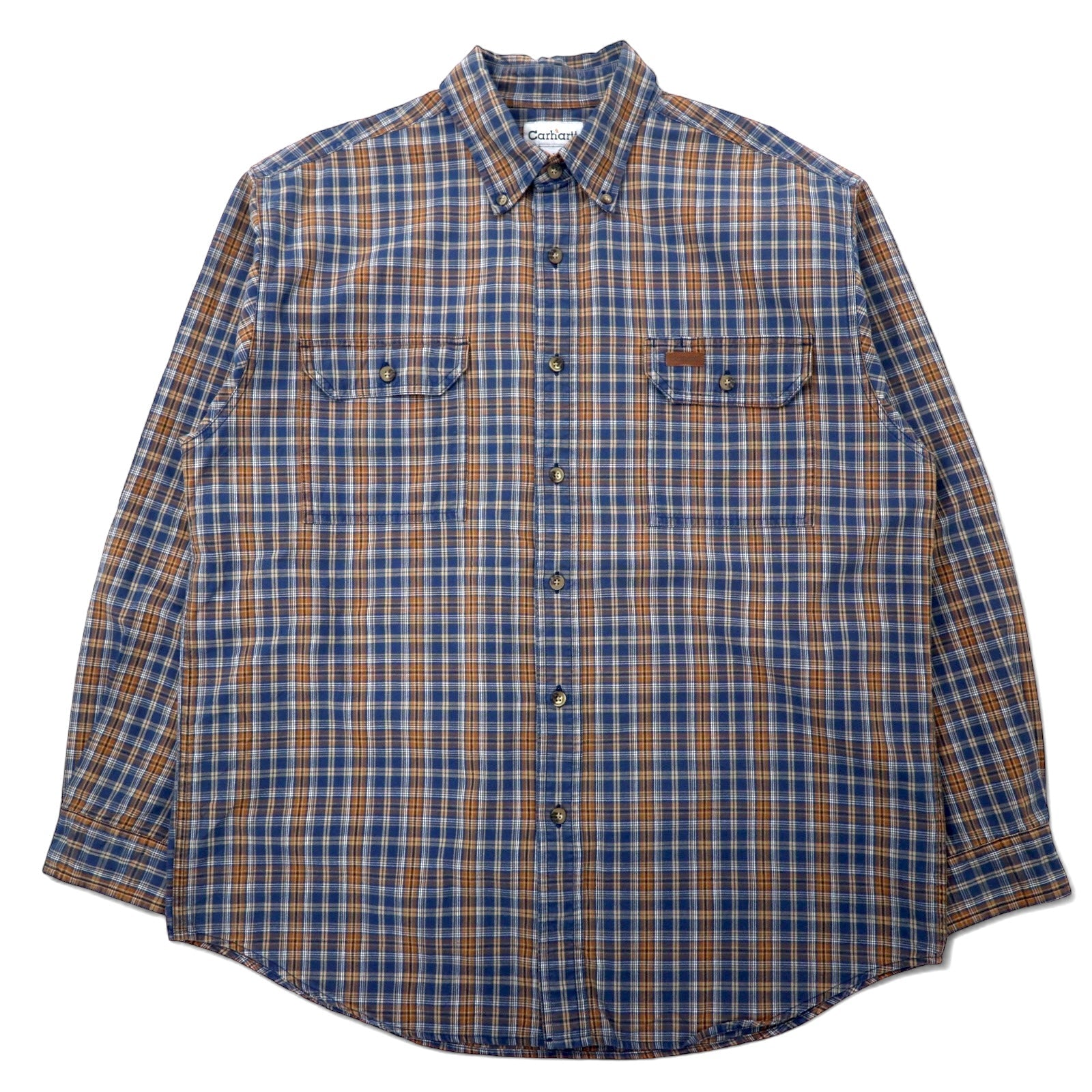 Carhartt フランネル ワークシャツ L ネイビー ブラウン コットン ビッグサイズ