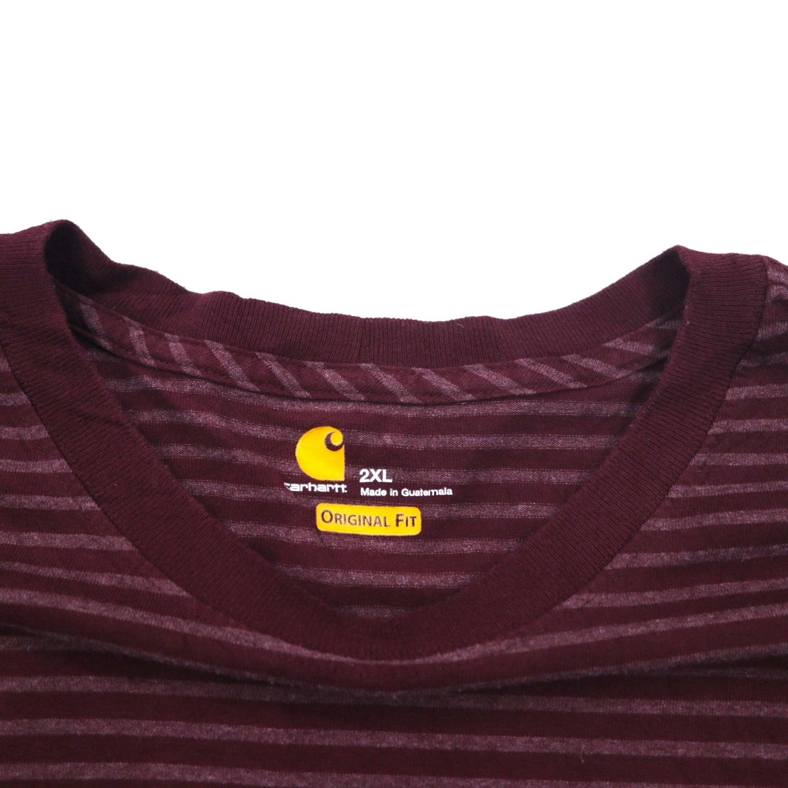 carhartt ポケット付き ボーダー Tシャツ ポケTee 2XL ボルドー グレー ORIGINAL FIT コットン