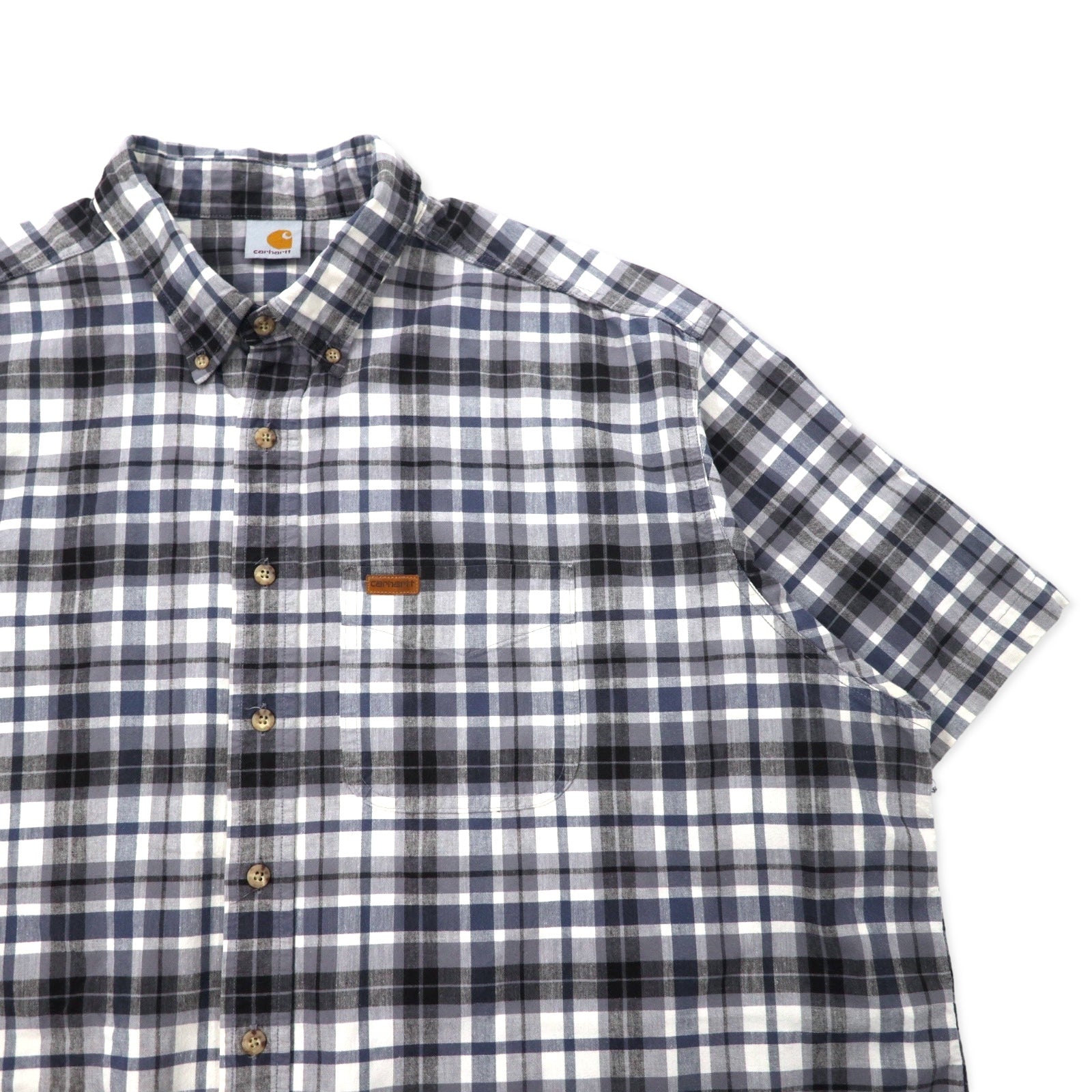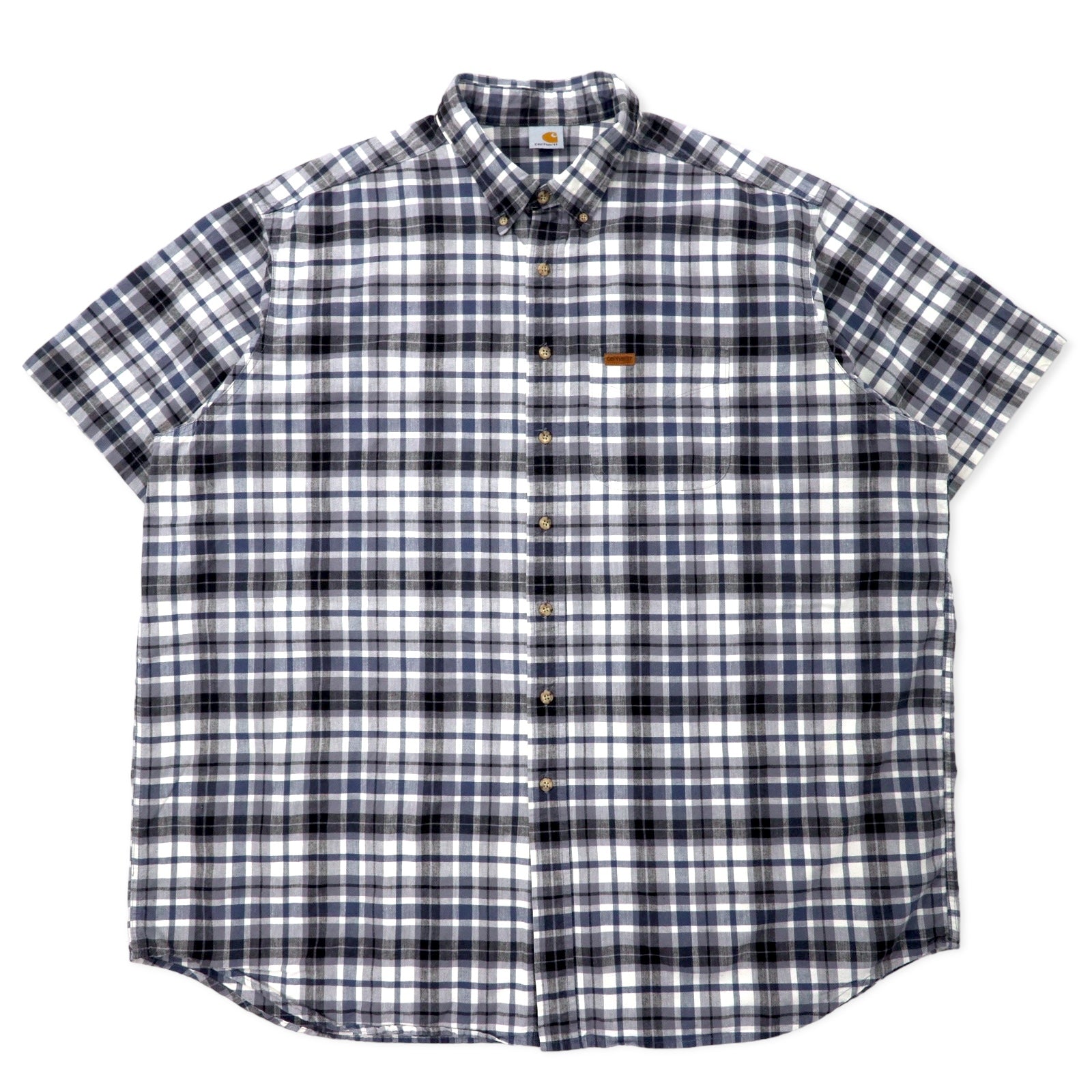 carhartt 半袖ボタンダウンシャツ XXL グレーチェック コットン ビッグサイズ