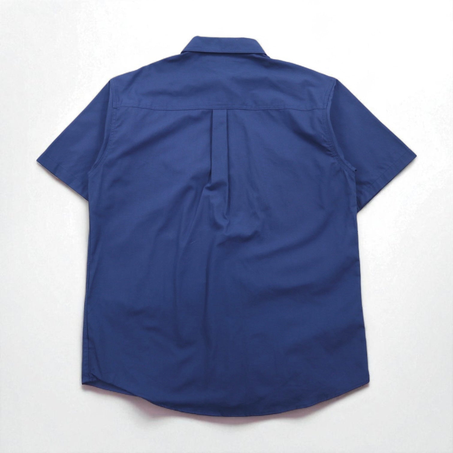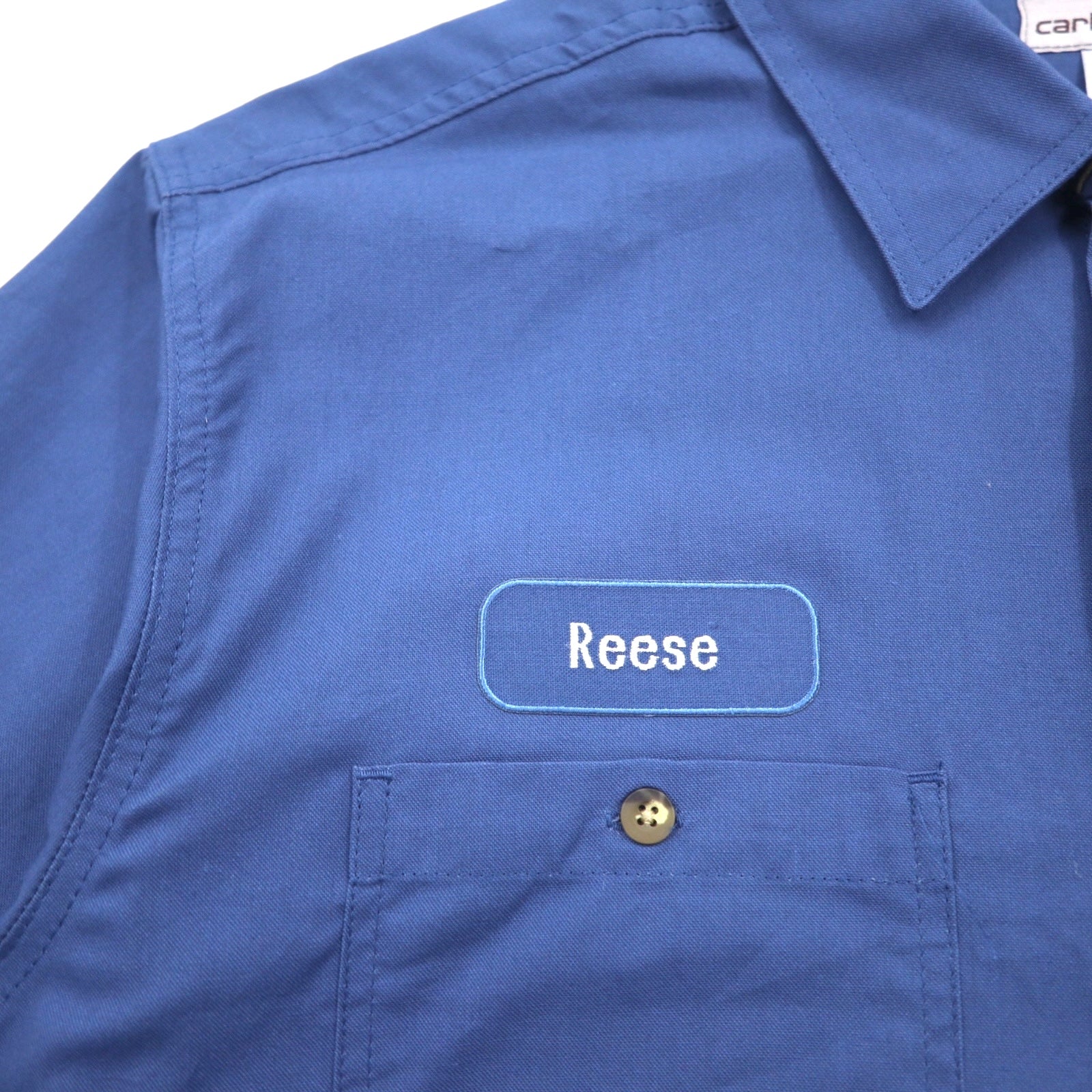 carhartt 半袖 ワークシャツ L ネイビー コットン 胸ポケット アメリカ企業 刺繍 TIMBER 384-19 メキシコ製