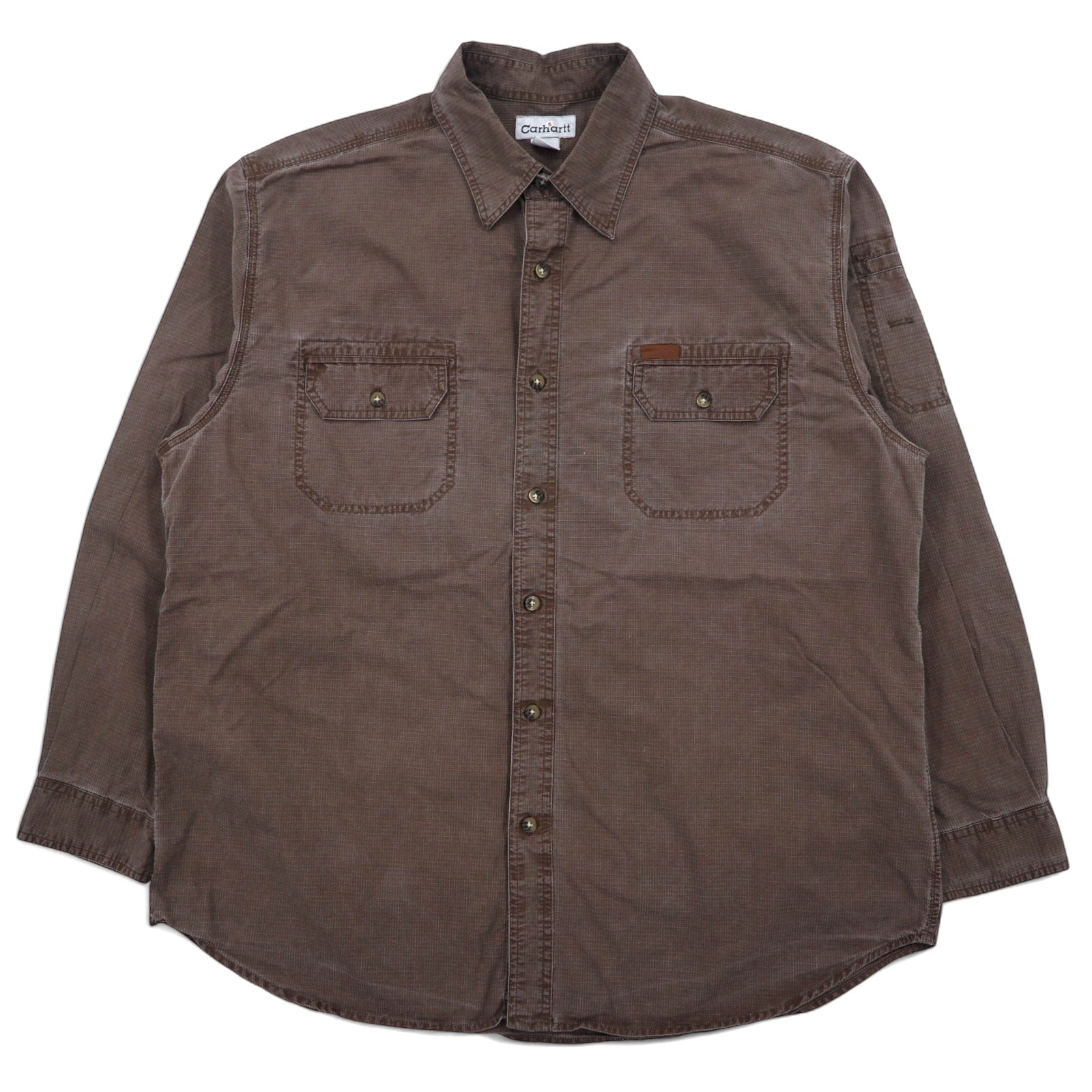Carhartt 00年代 リップストップ ワークシャツ XL ブラウン コットン S143MCH
