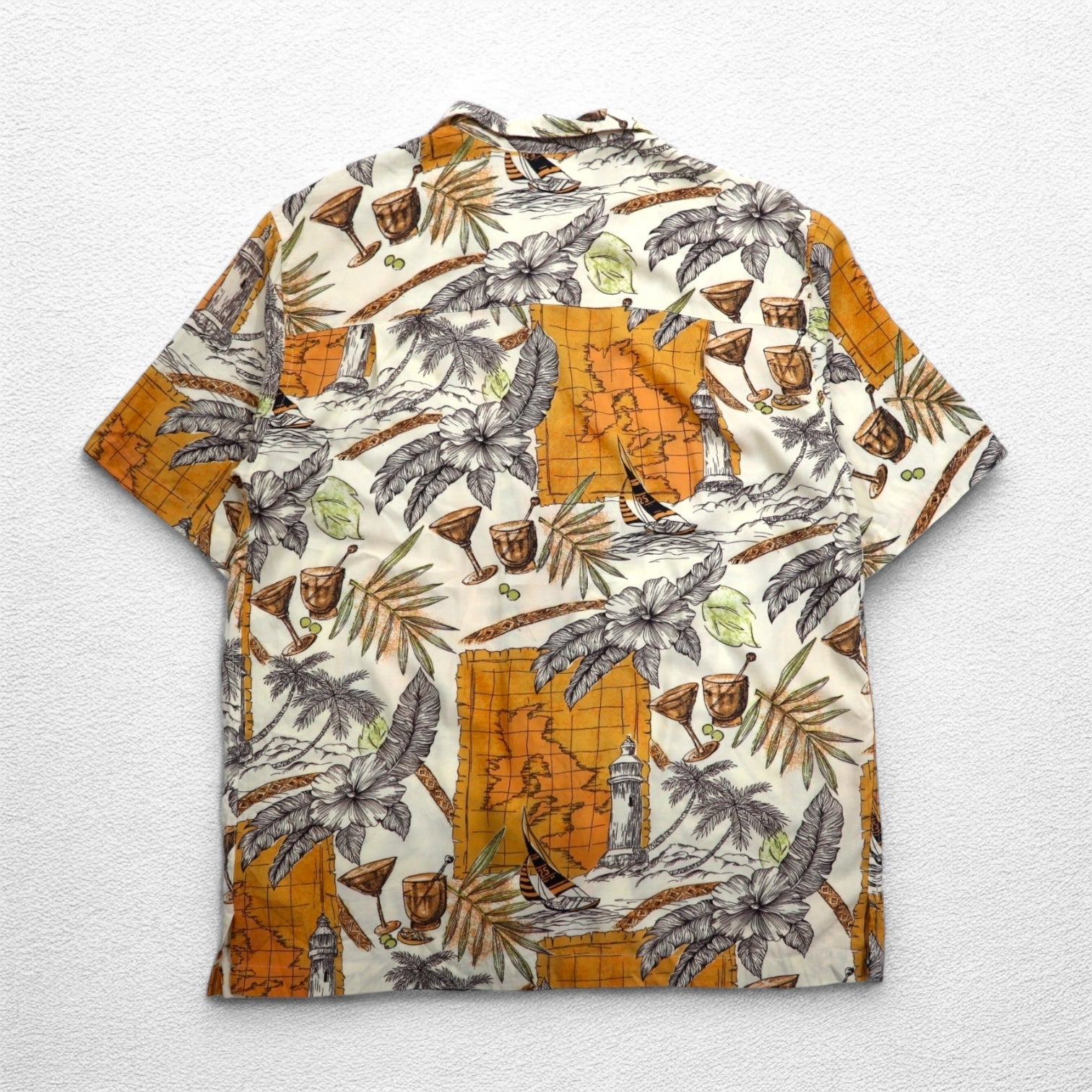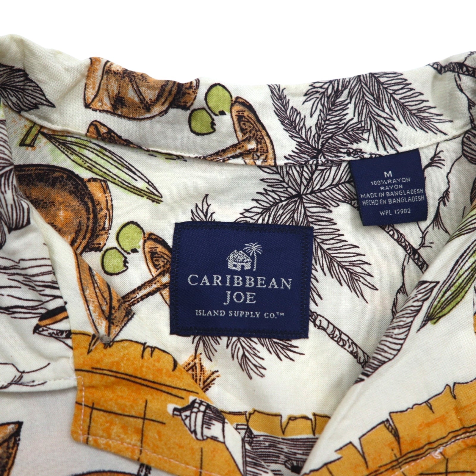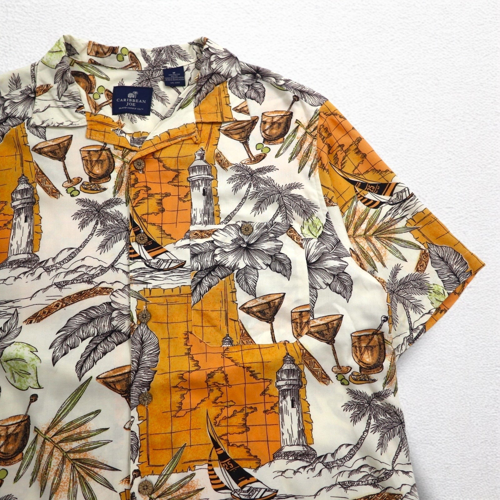 CARIBBEAN JOE 90年代 オープンカラー 開襟 アロハシャツ M オレンジ レーヨン 総柄 ヤシの木 カクテル ハイビスカス