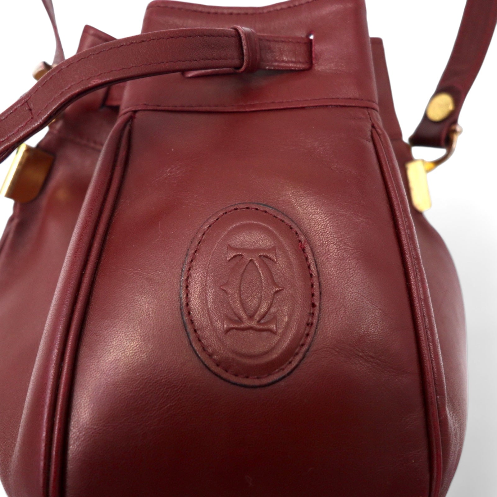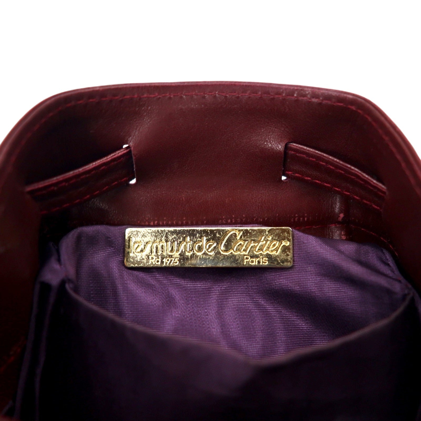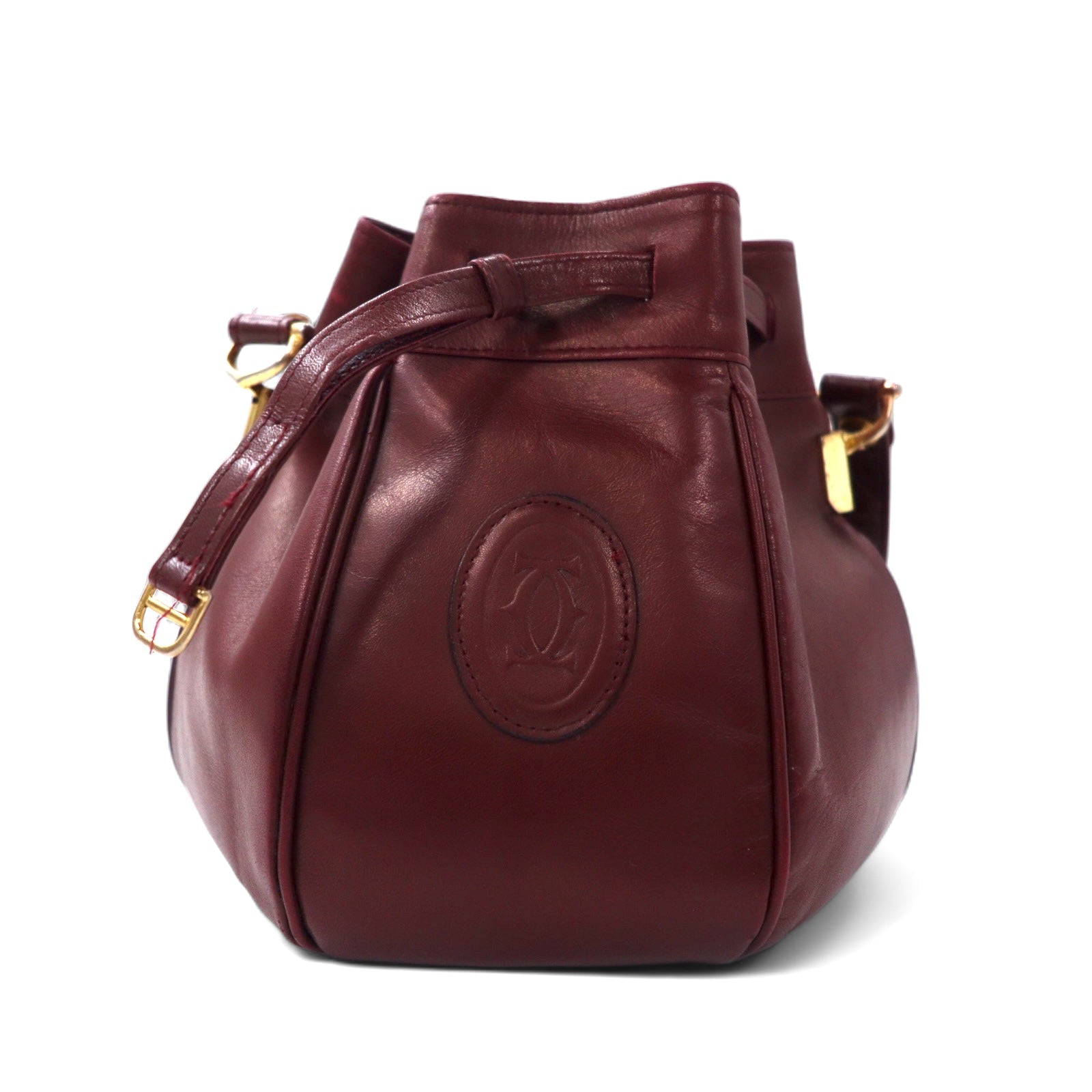 カルティエ オールドマストライン 巾着ショルダーバッグ ボルドーレザー ヴィンテージ