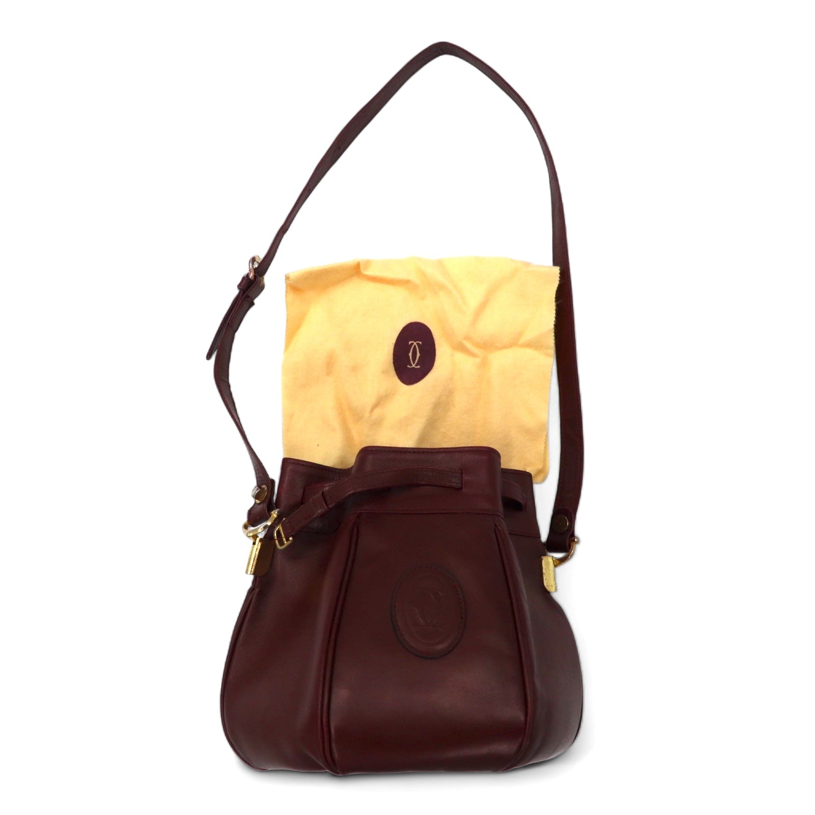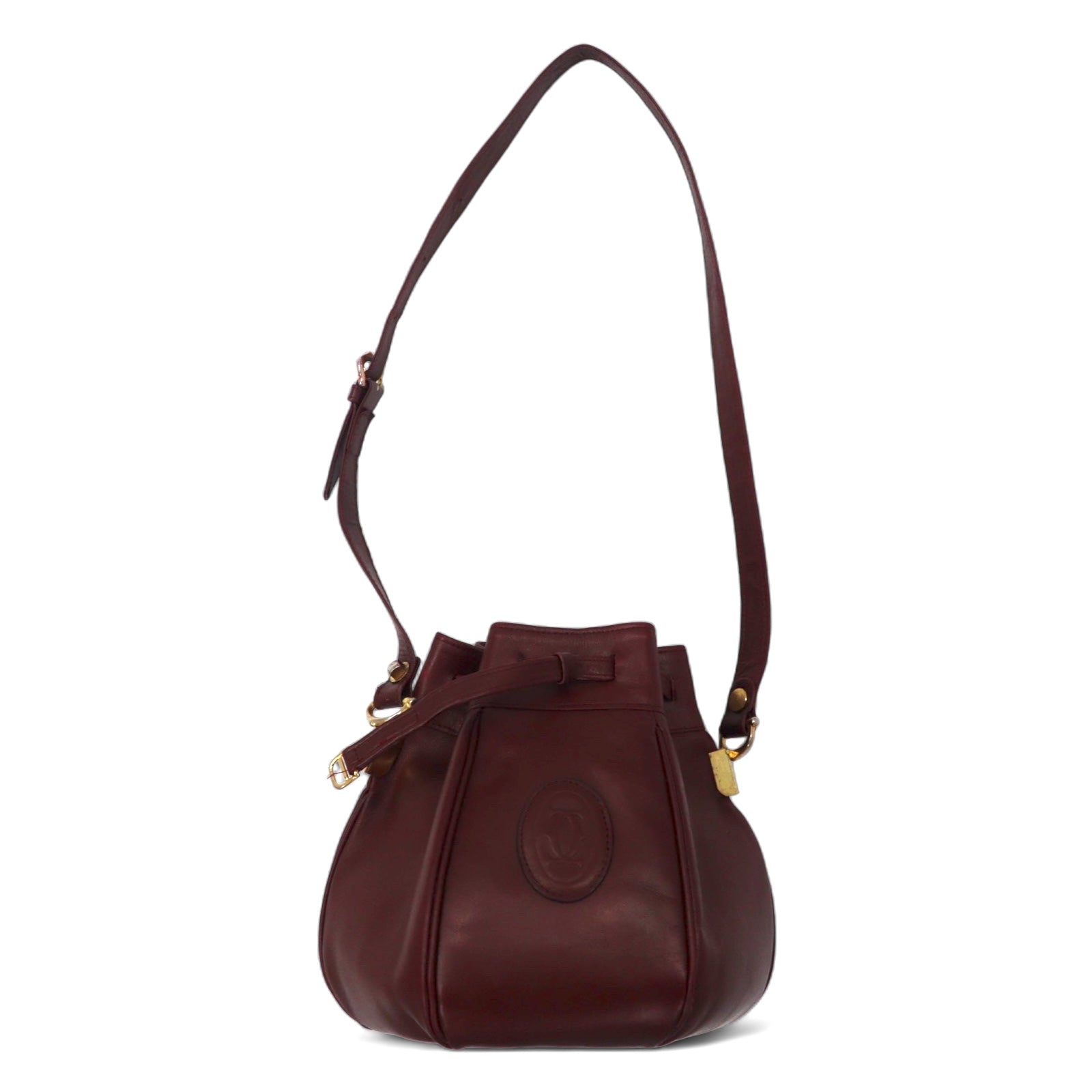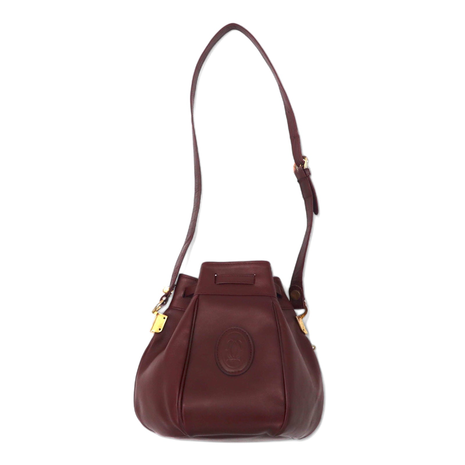 カルティエ オールドマストライン 巾着ショルダーバッグ ボルドーレザー ヴィンテージ