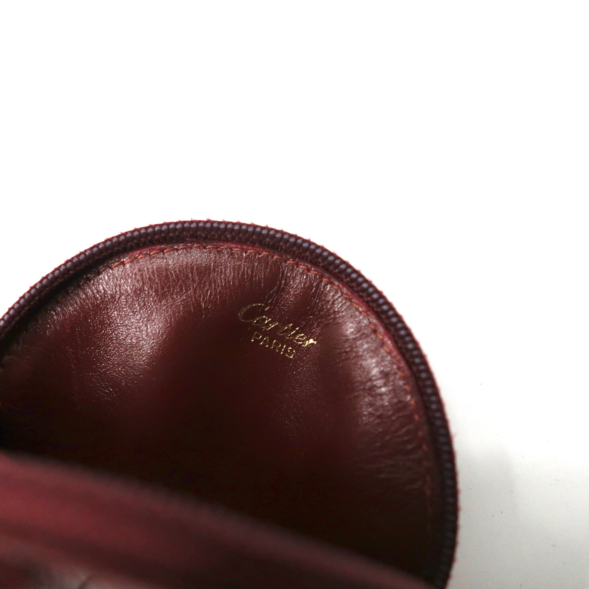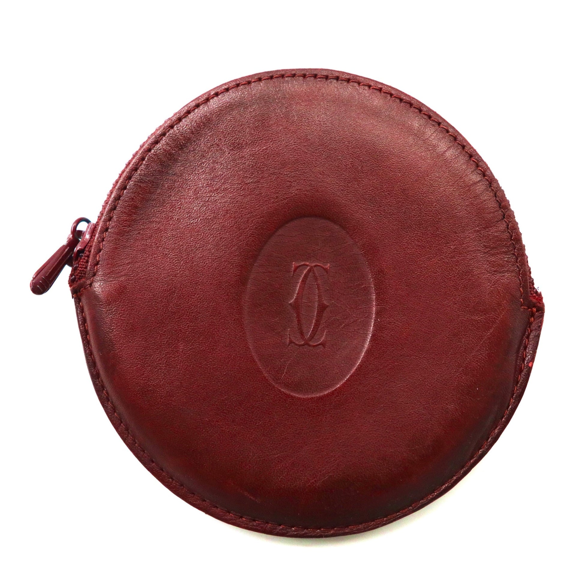cartier コインケース 小銭入れ ボルドー レザー マストライン ラウンド 丸型 オールド