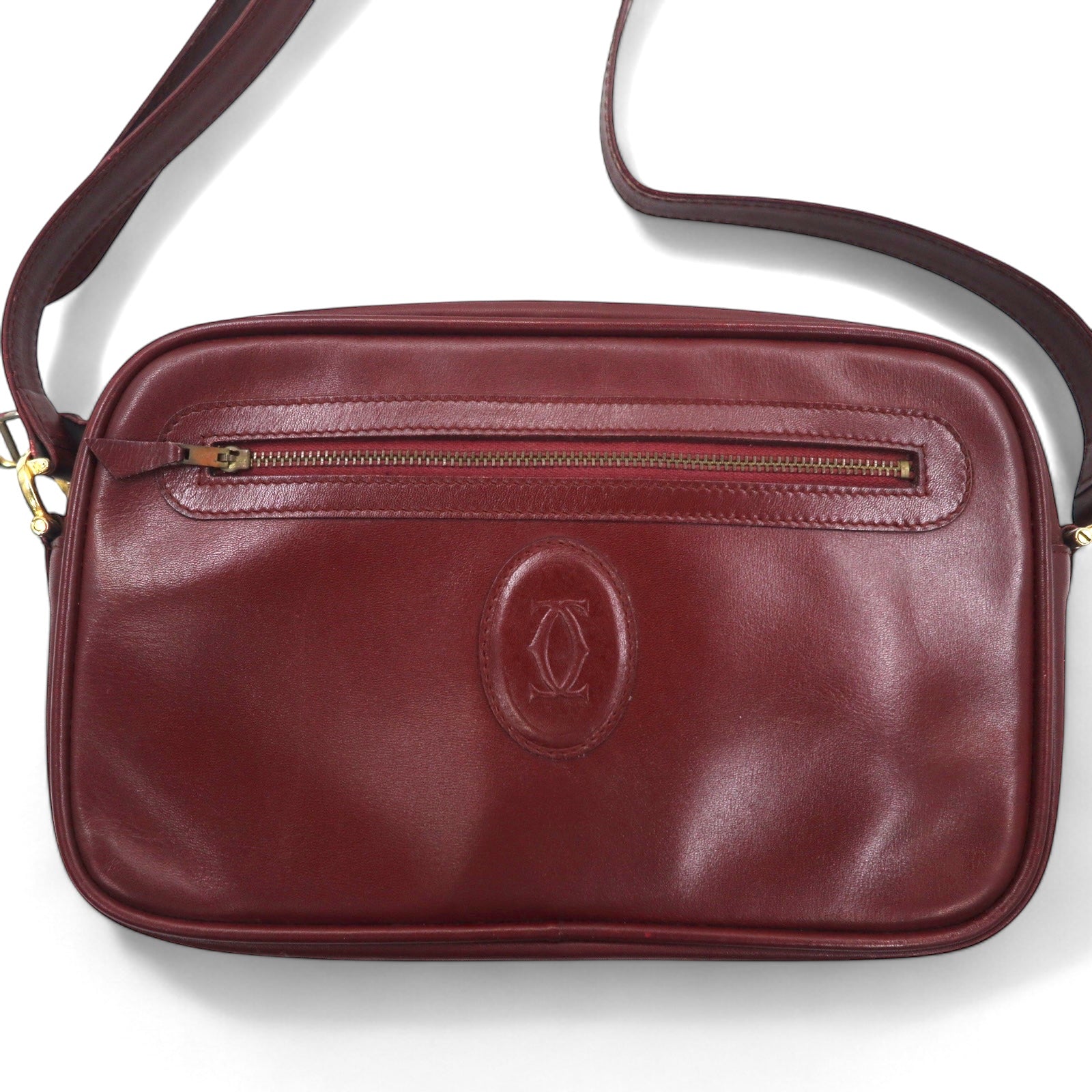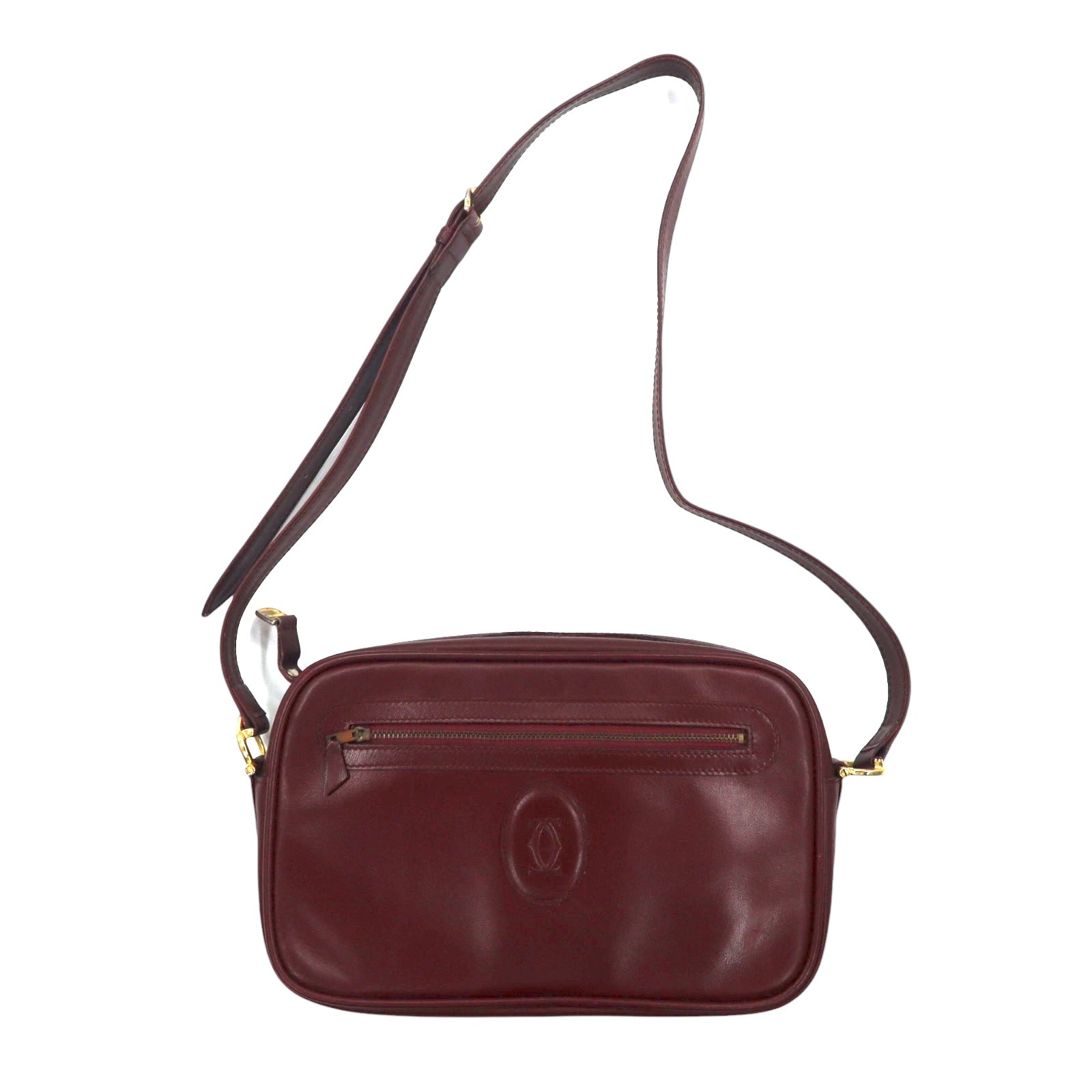 カルティエ マストラインショルダーバッグ ボルドー ロゴマーク オールドレザー