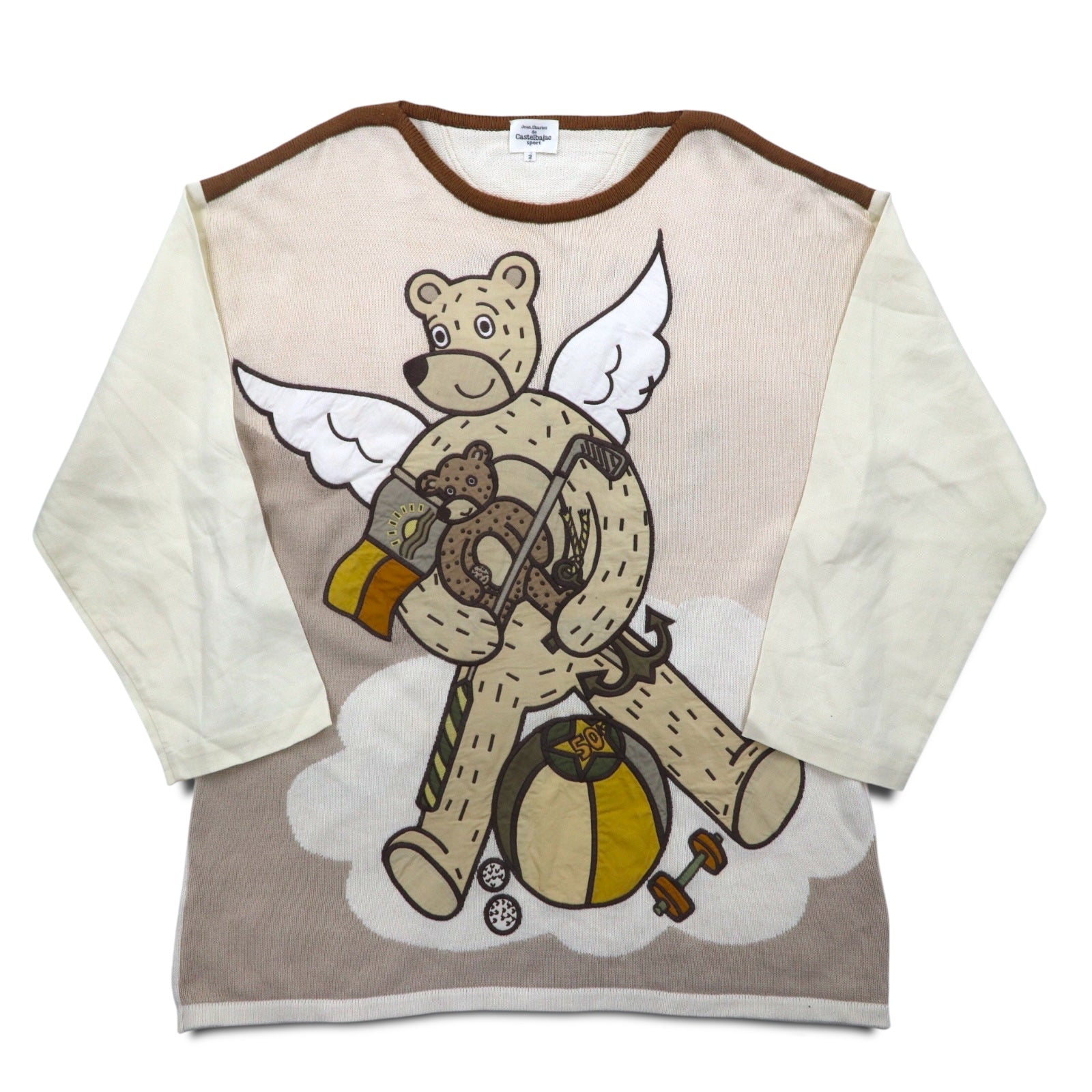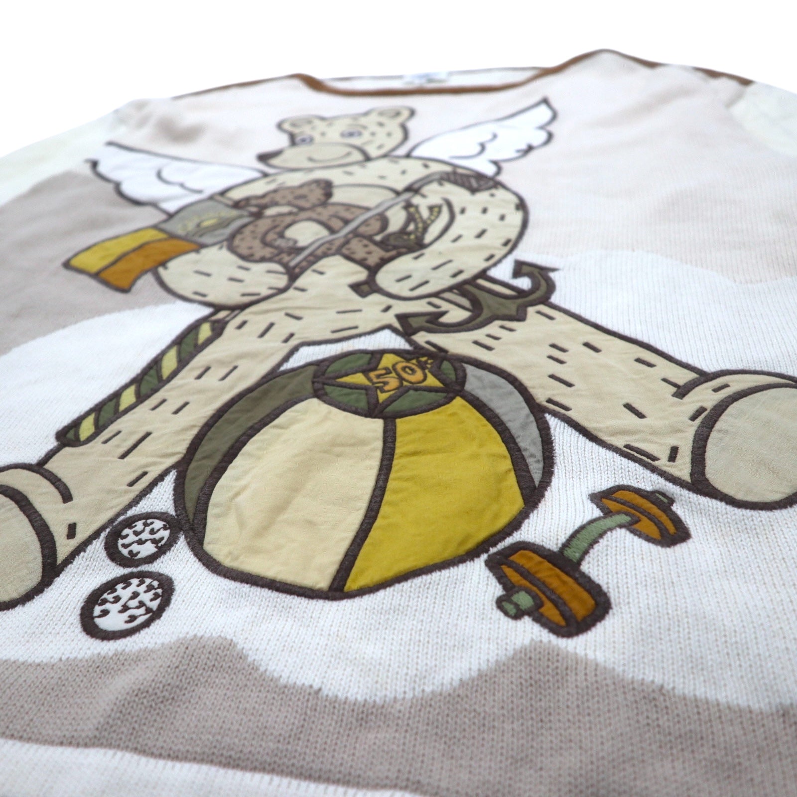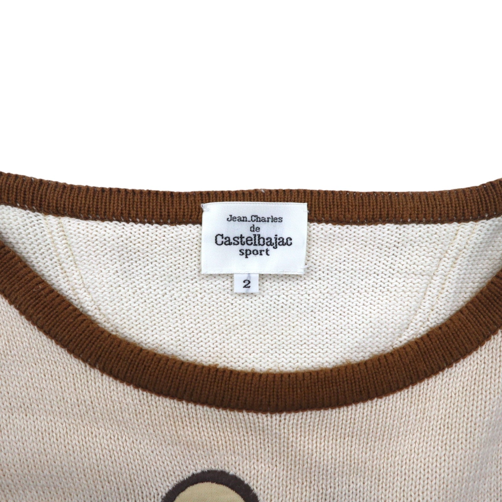 カステルバジャック スポーツ 90年代 切替えニットセーター M ベージュ リネンキャラクタースニーカー