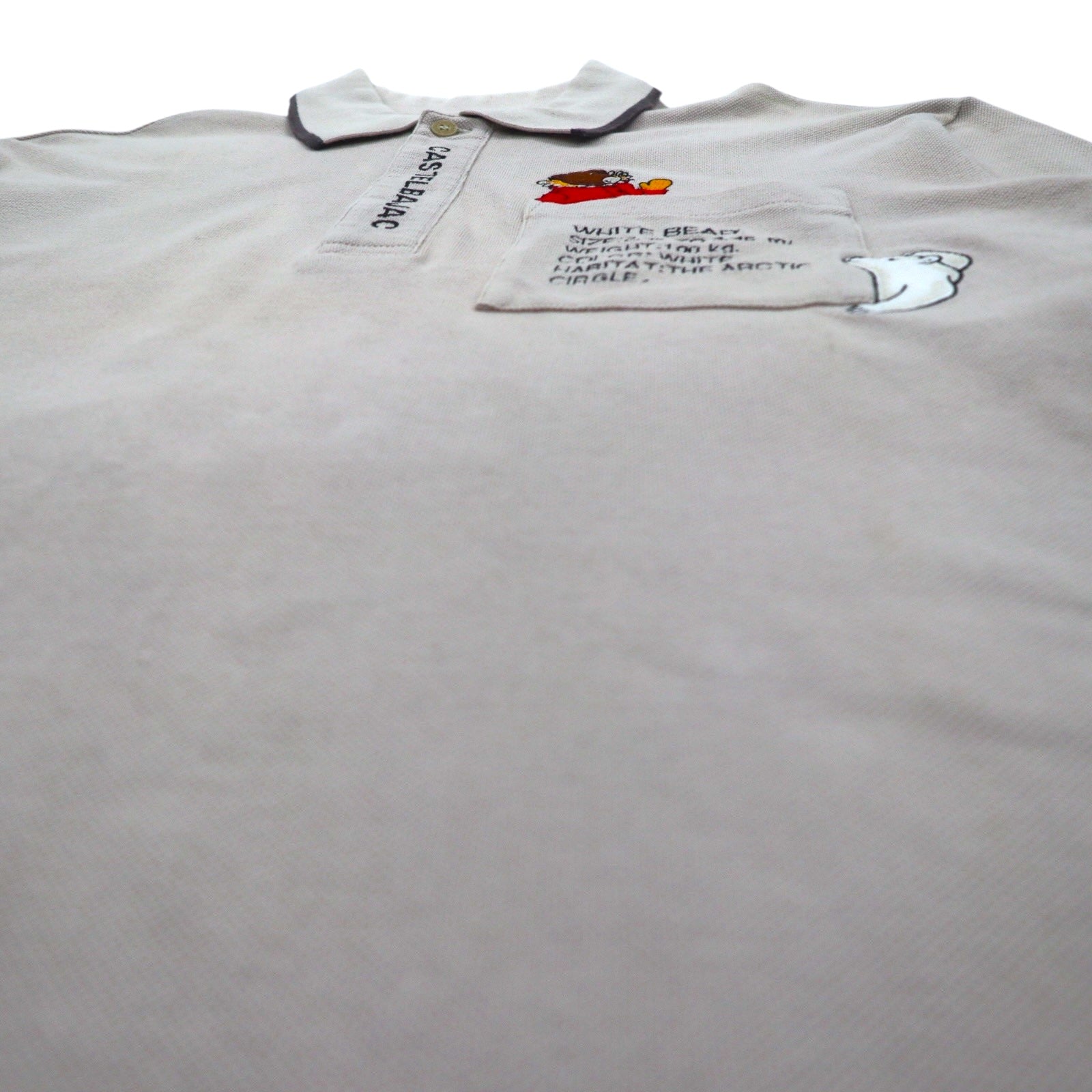 CASTELBAJAC SPORT 90年代長袖ポロシャツ XL ベージュ コットン キャラクター刺繍