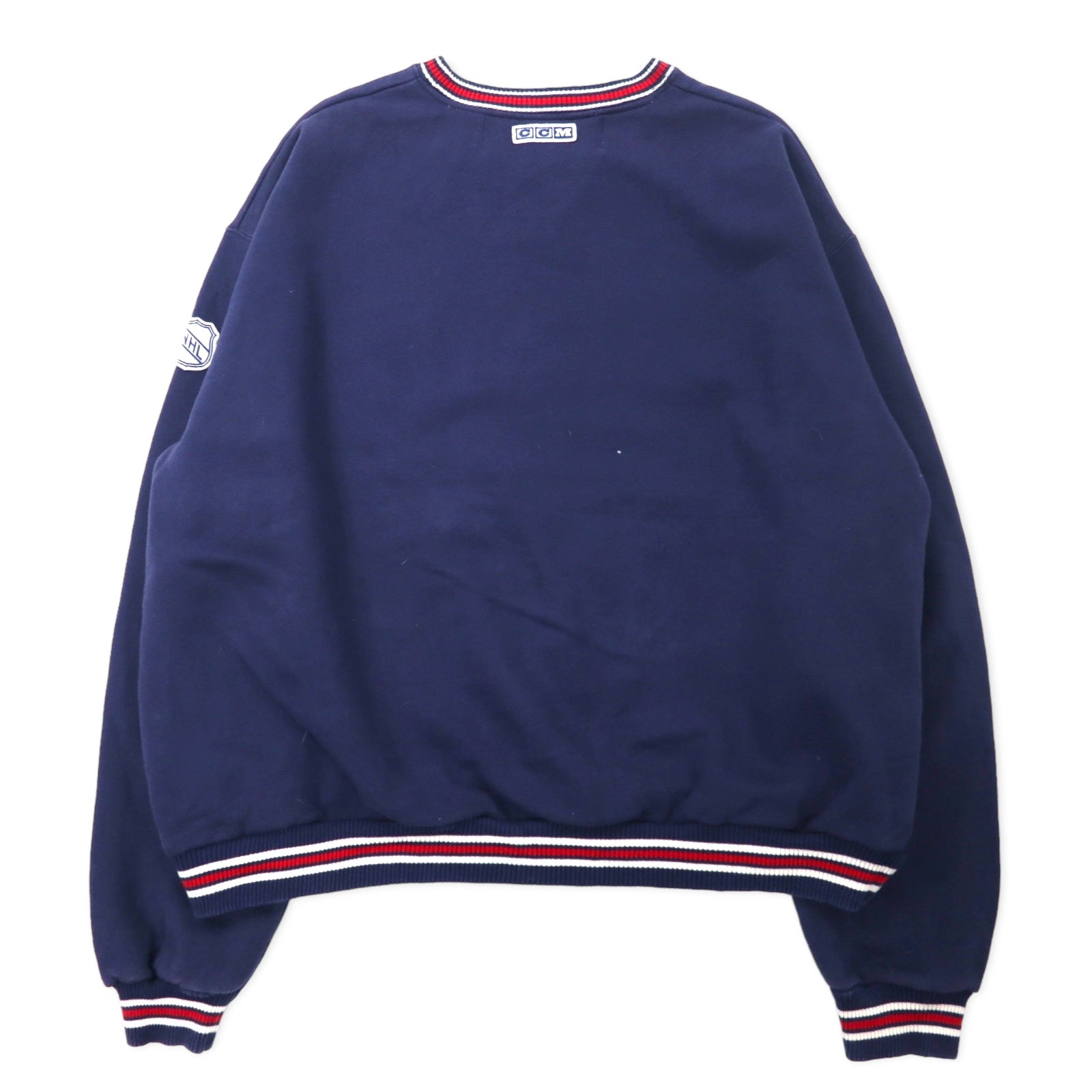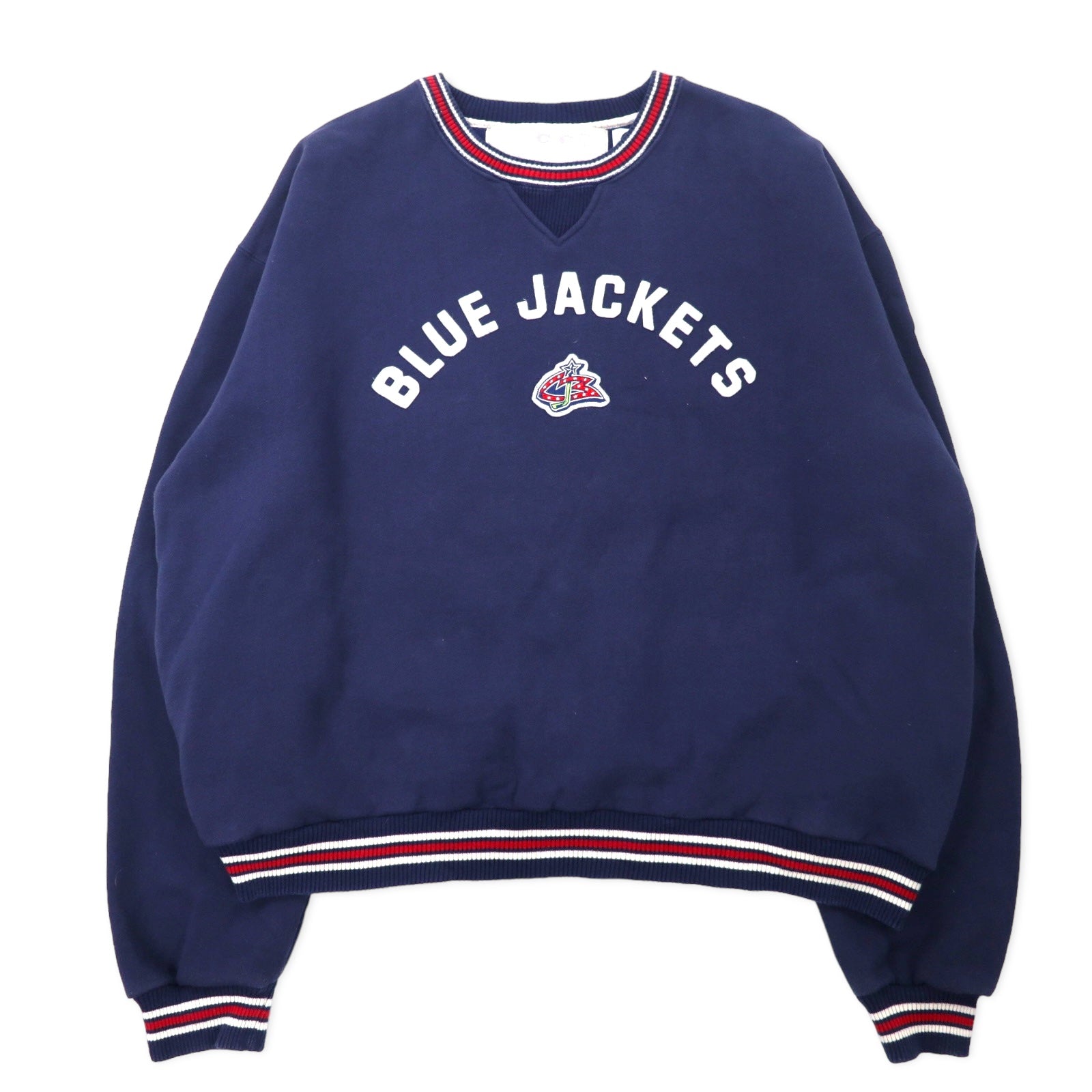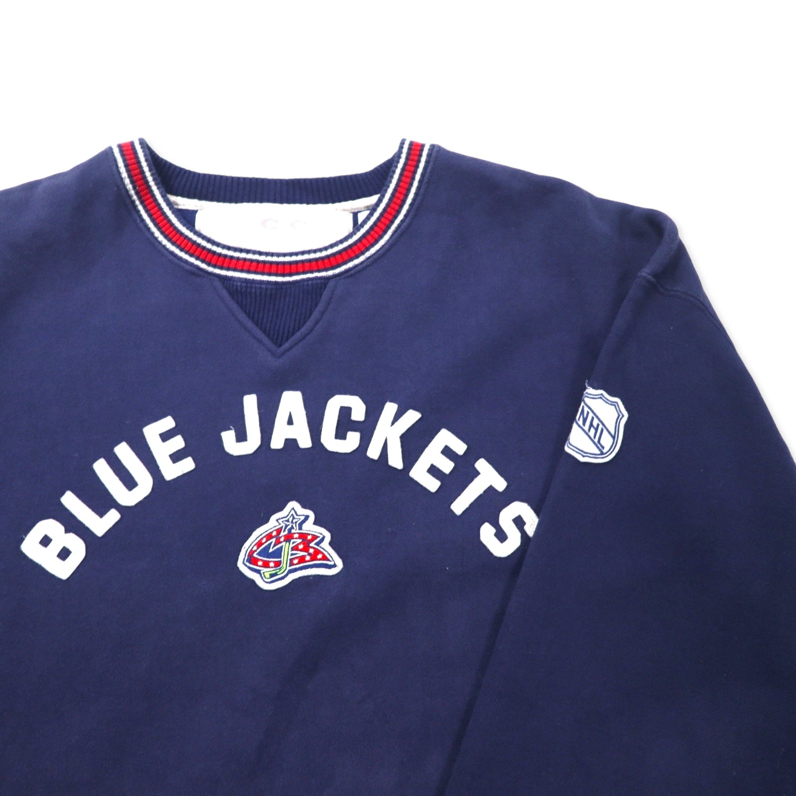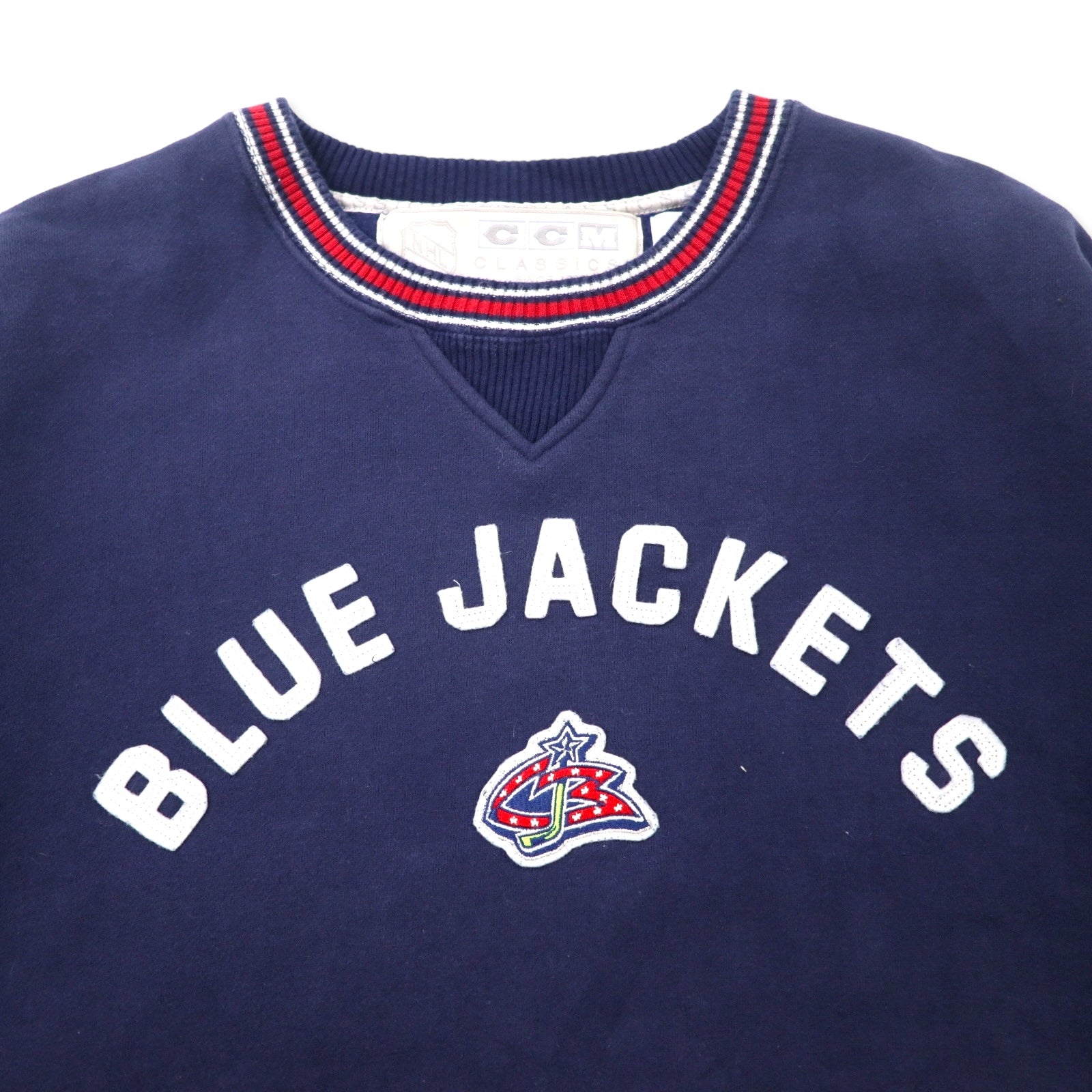 CCM CLASSICS リブライン スウェット XXL ネイビー コットン 裏起毛 NHL BLUE JACKETS ビッグサイズ