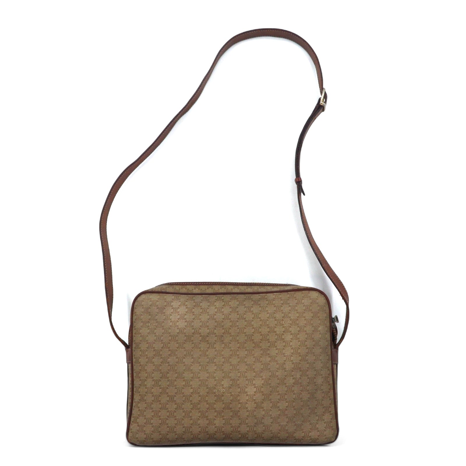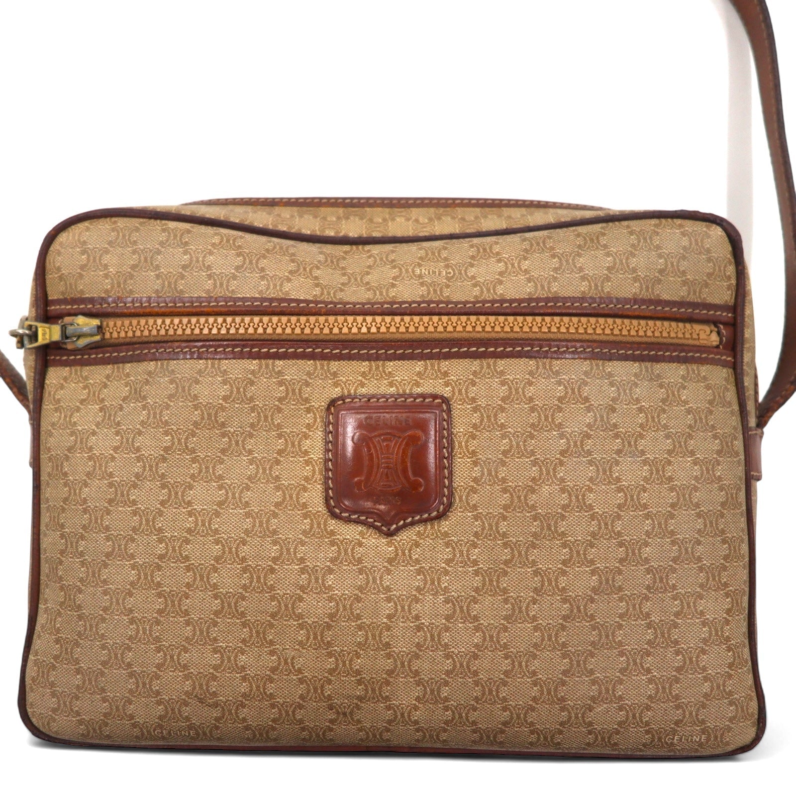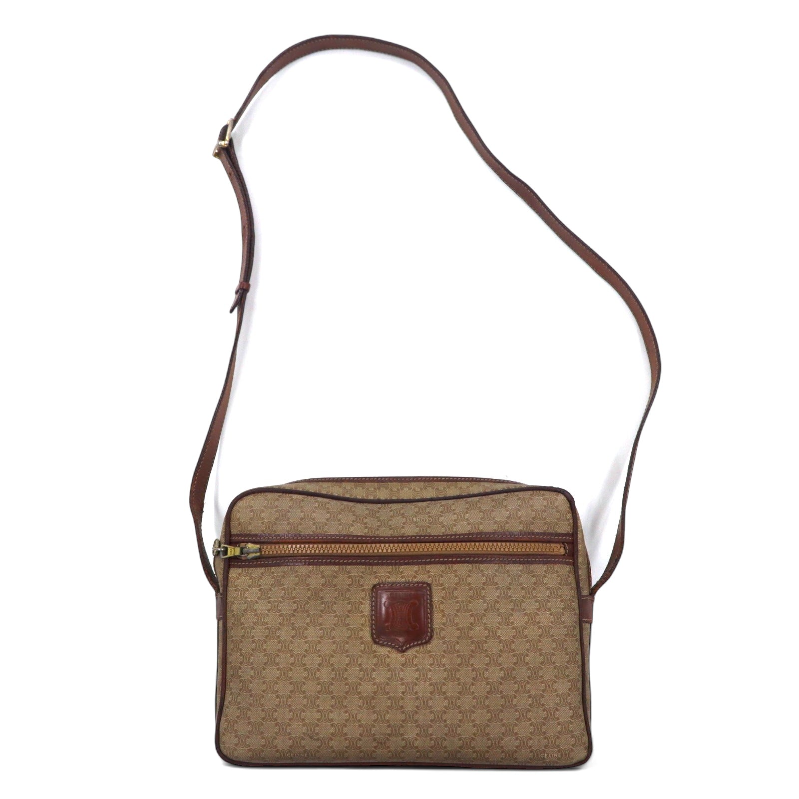 CELINE イタリア製 オールド マカダム柄 ショルダーバッグ ベージュ レザー 総柄 ロゴ ririジップ M07