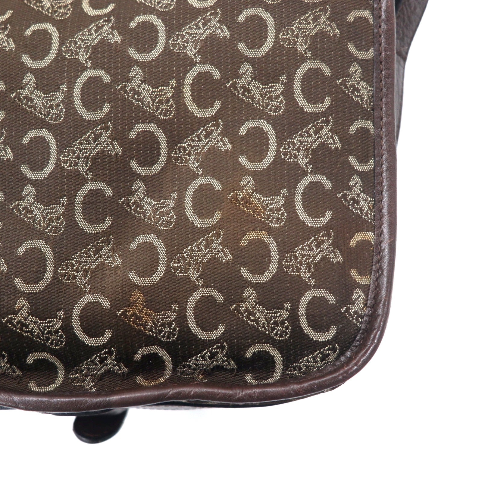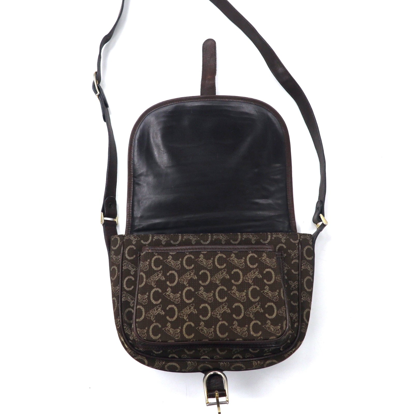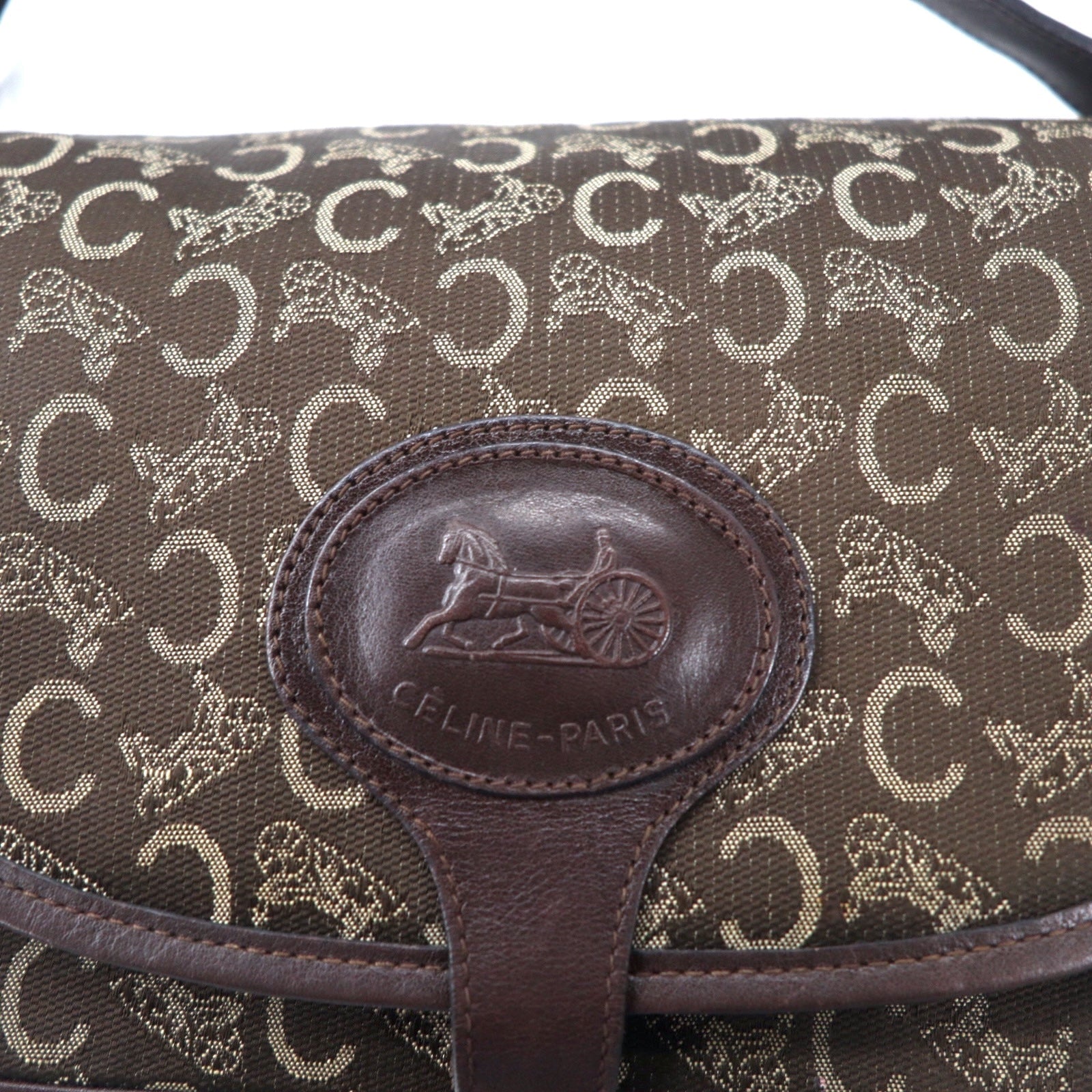 CELINE イタリア製 オールド Cマカダム ショルダーバッグ ブラウン キャンバス レザー サルキー 馬車
