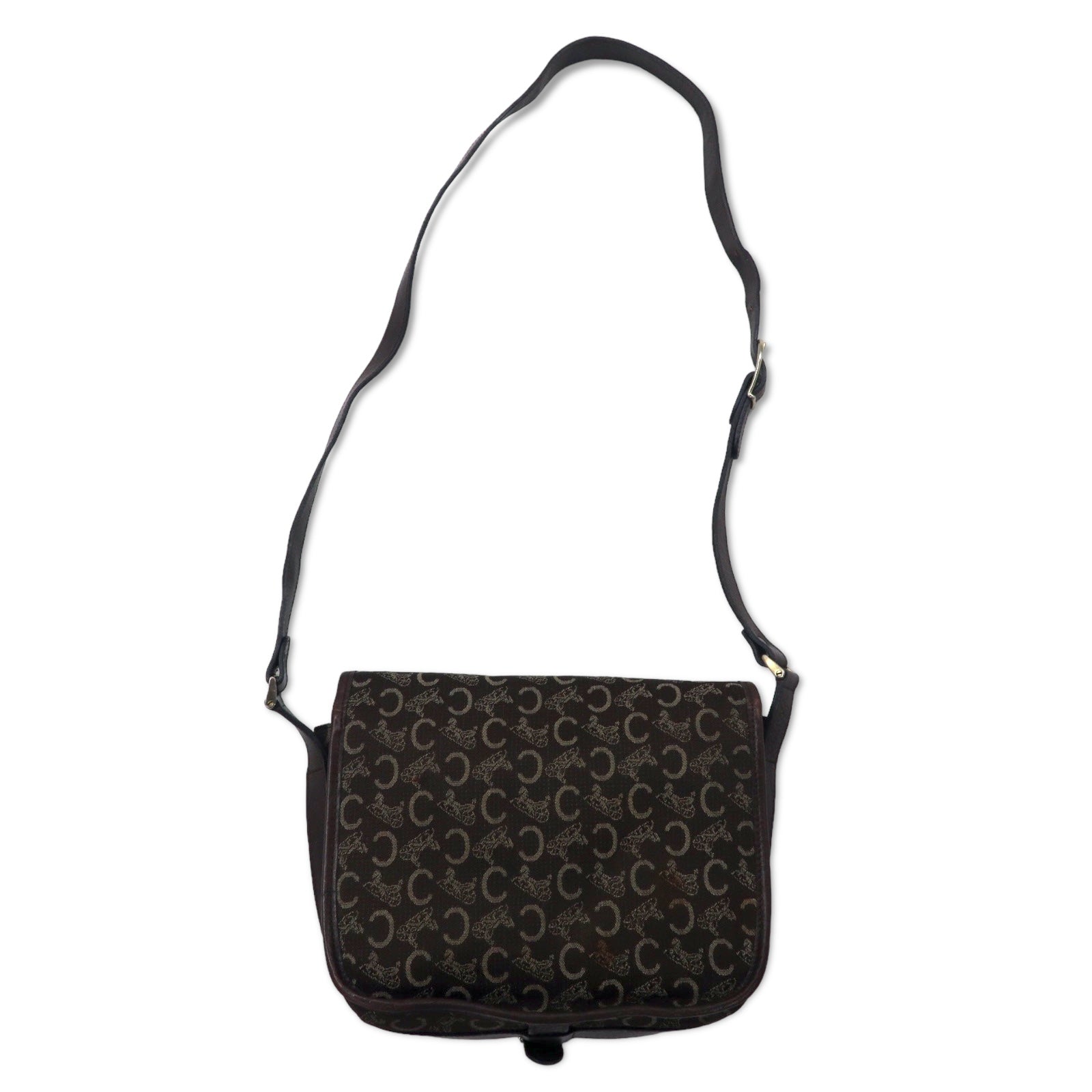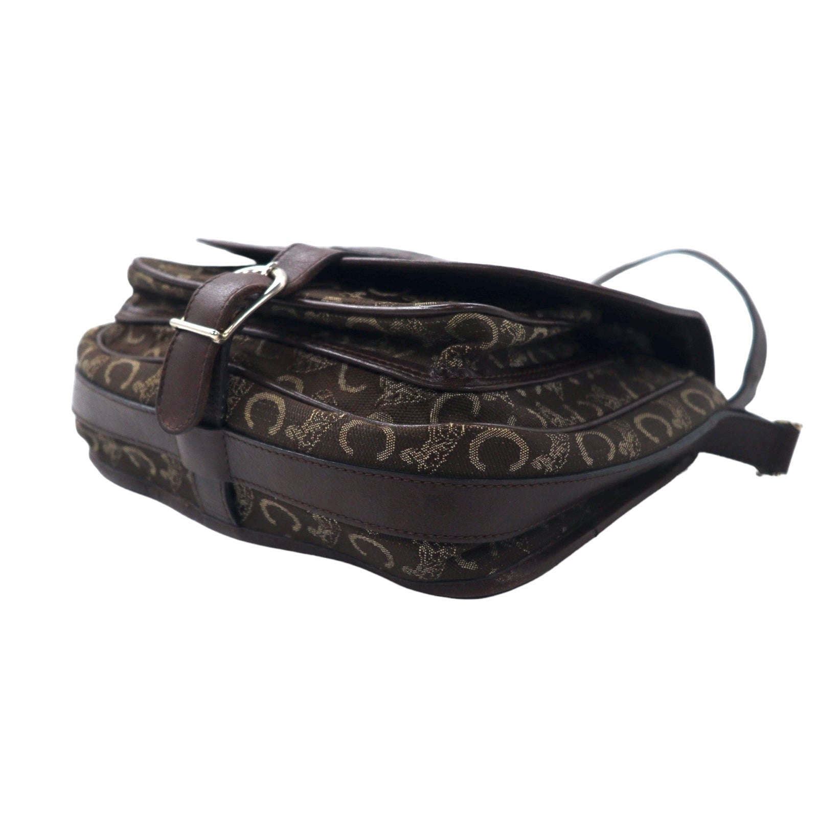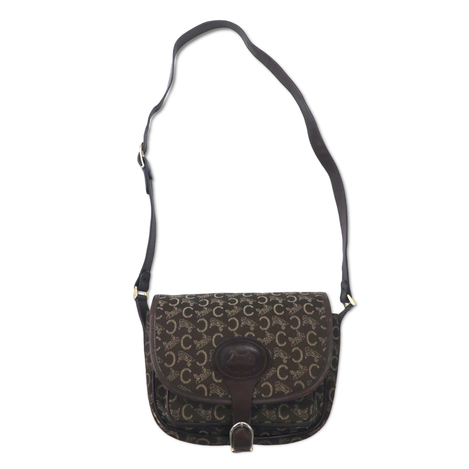 CELINE イタリア製 オールド Cマカダム ショルダーバッグ ブラウン キャンバス レザー サルキー 馬車