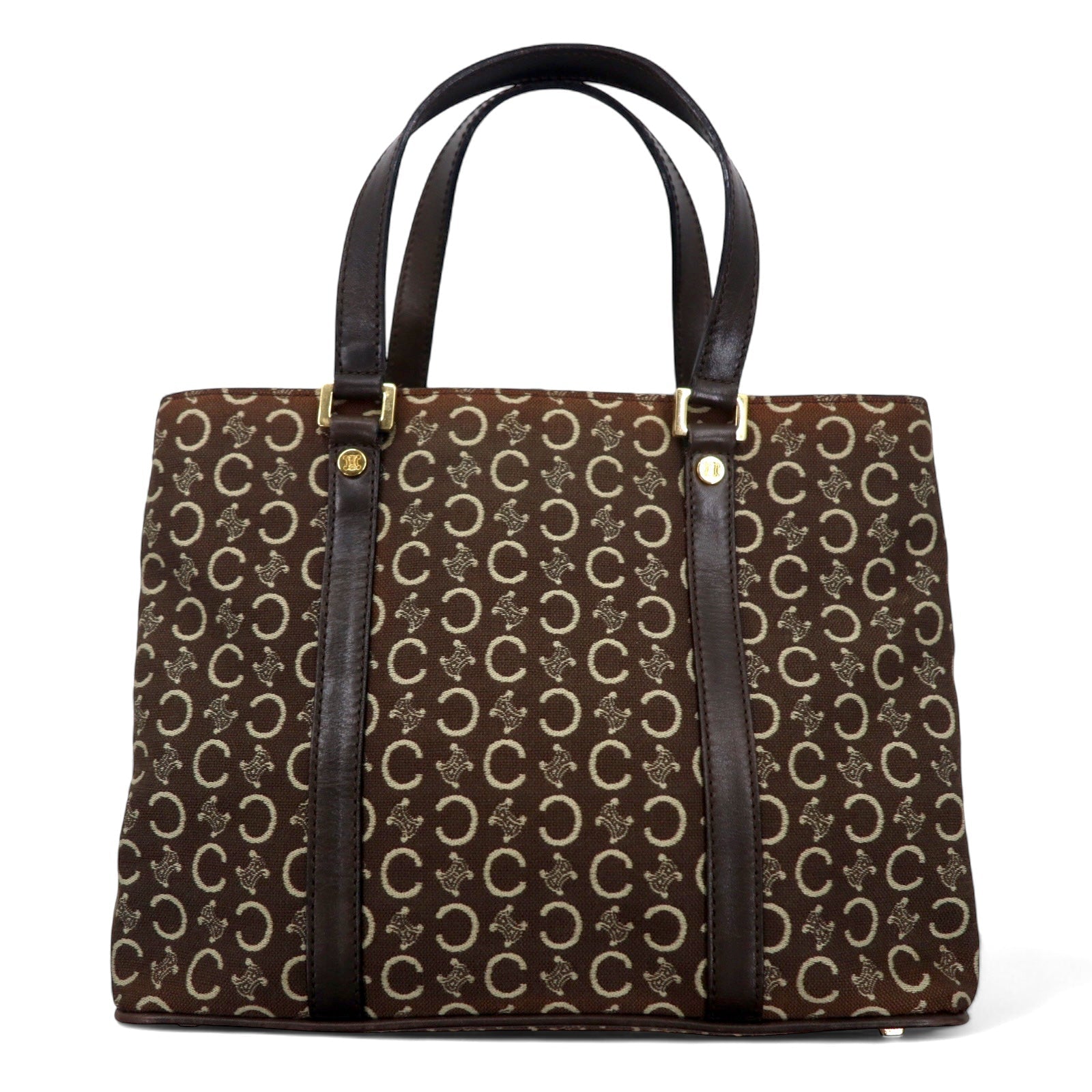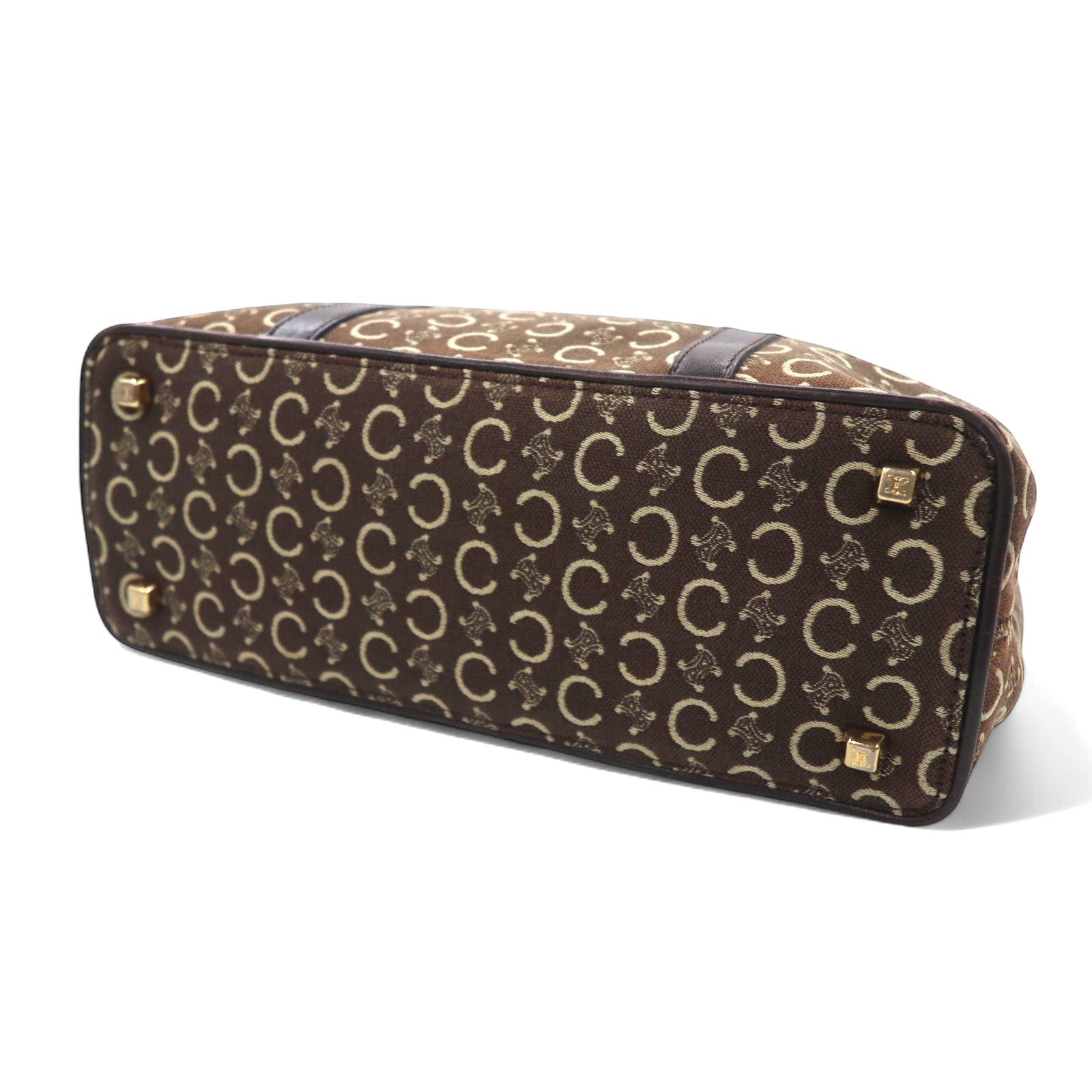 CELINE イタリア製 オールド Cマカダム ハンドバッグ トートバッグ ブラウン キャンバス 総柄 CE00